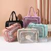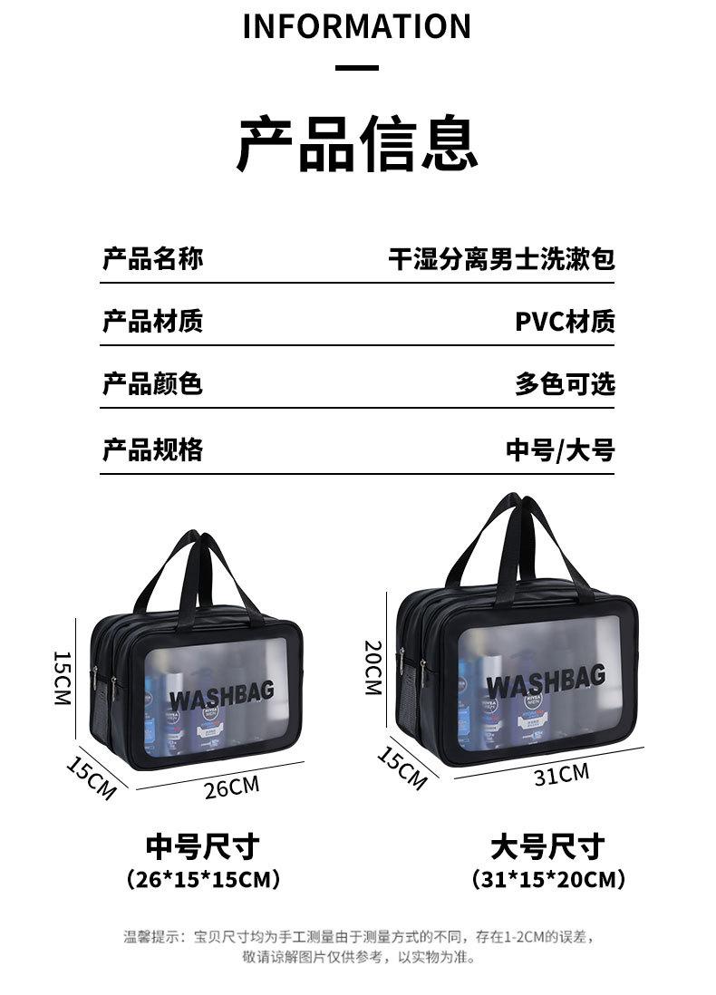 Bolsa de lavado con separación de humedad y sequedad para mujer, de doble capa, portátil, de viaje, transparente, de PVC, impermeable, para fitness, natación, bolsa de cosméticos, bolsa de almacenamiento