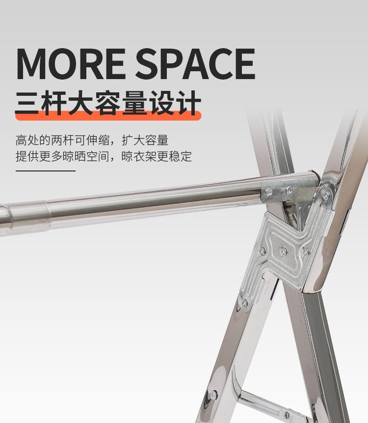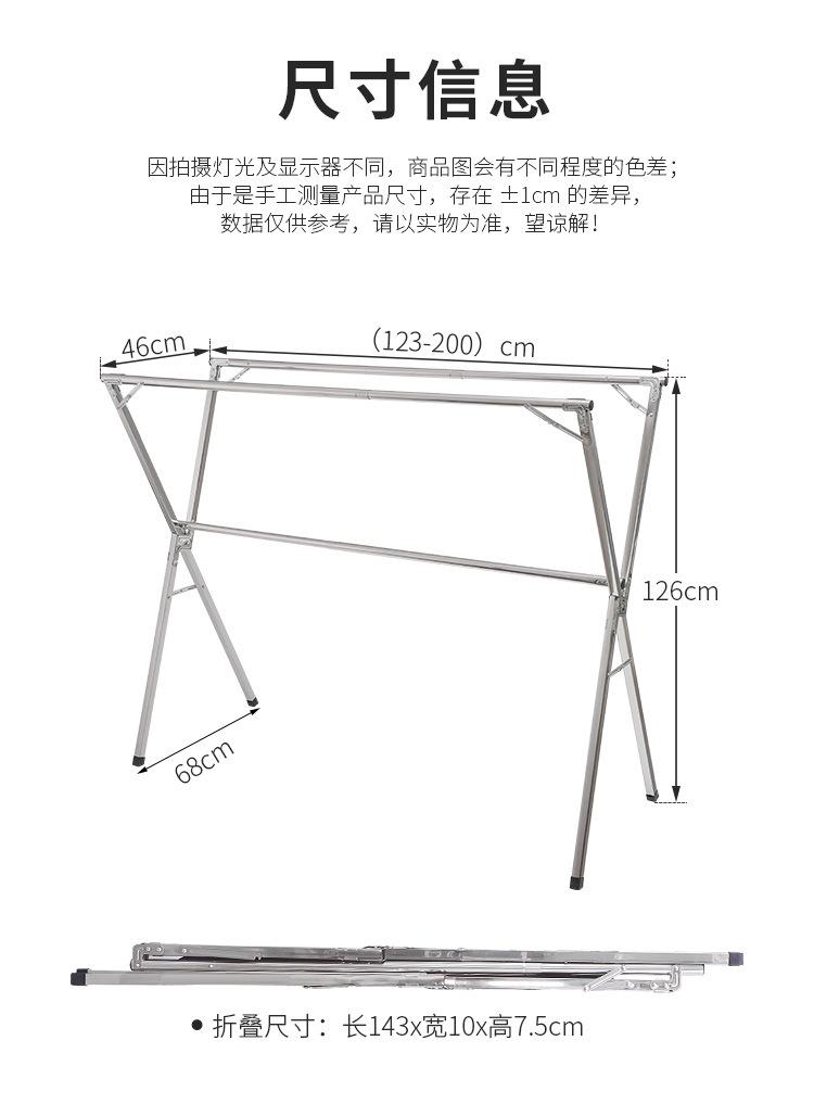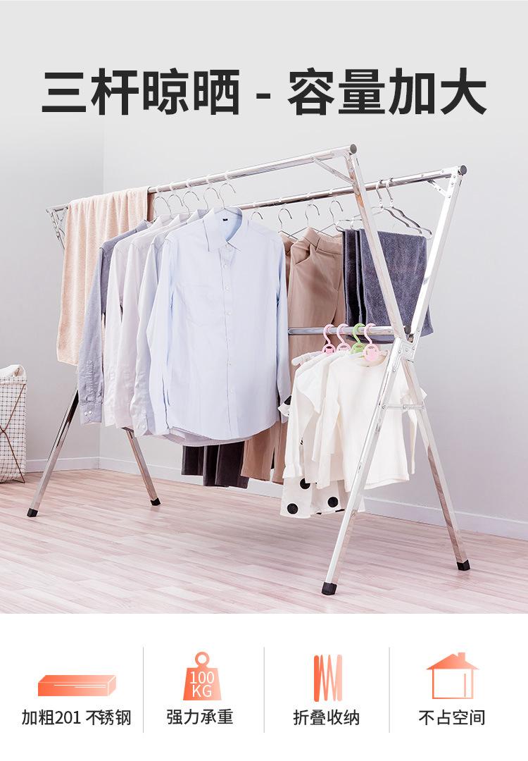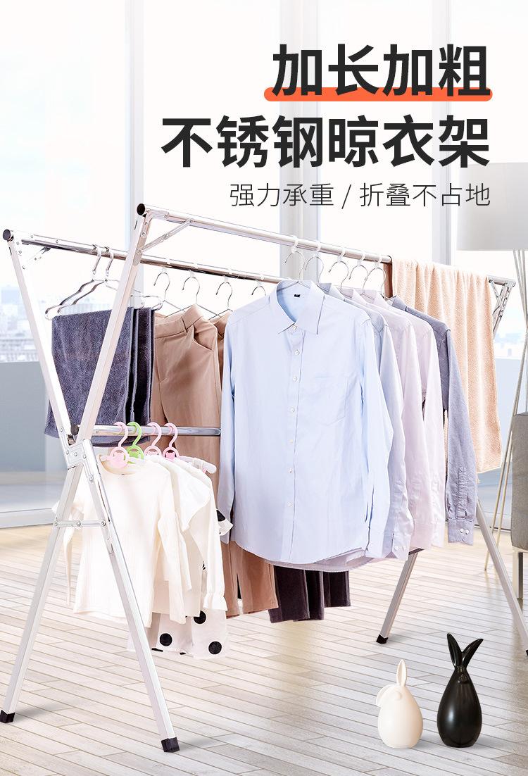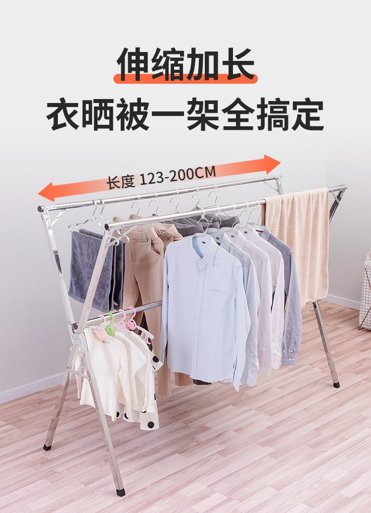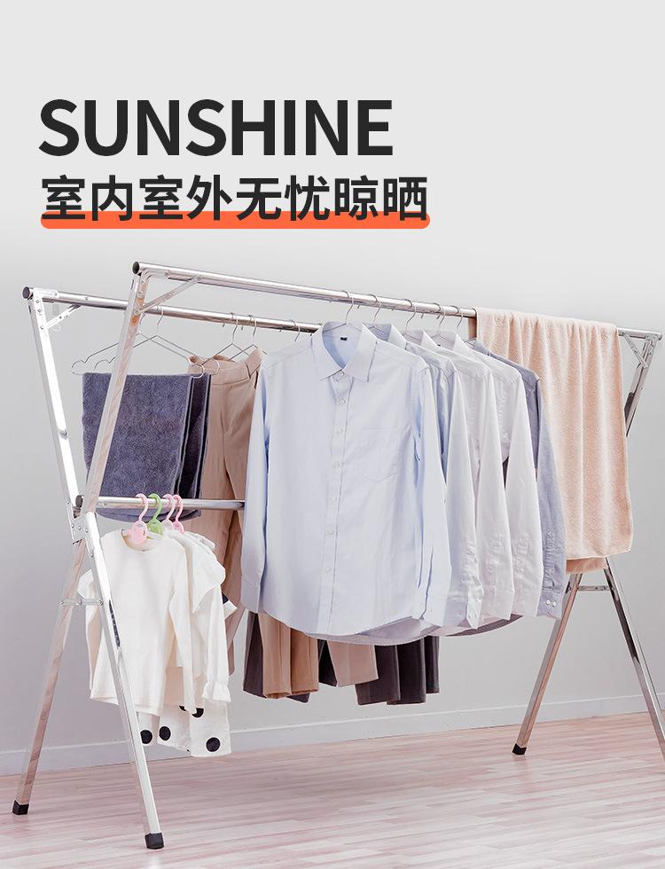 Tendedero de acero inoxidable plegable para suelo, para interiores y exteriores, con doble varilla, para balcón, telescópico tipo X.