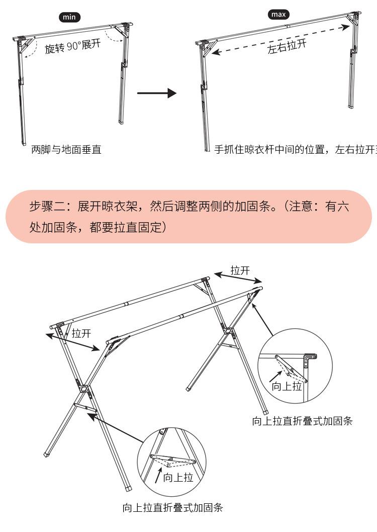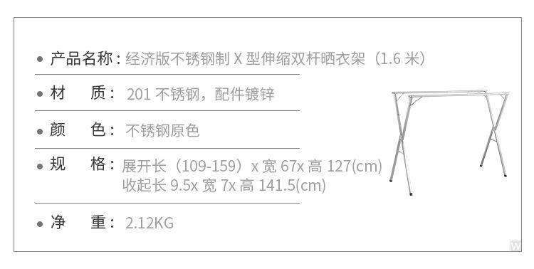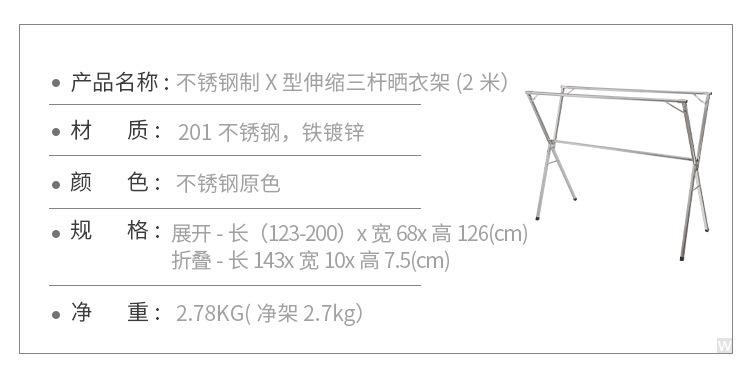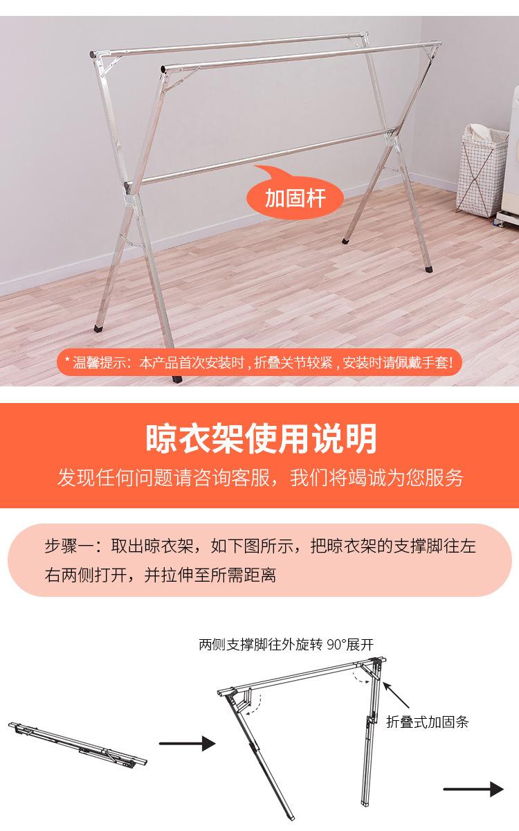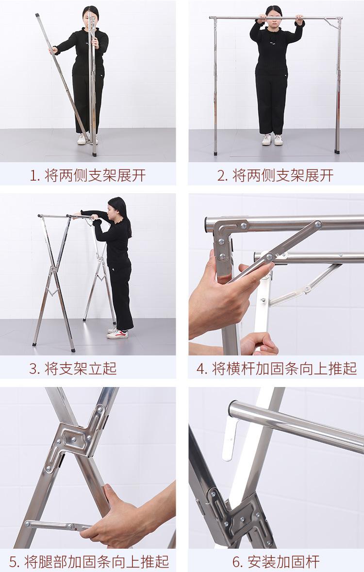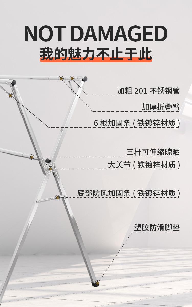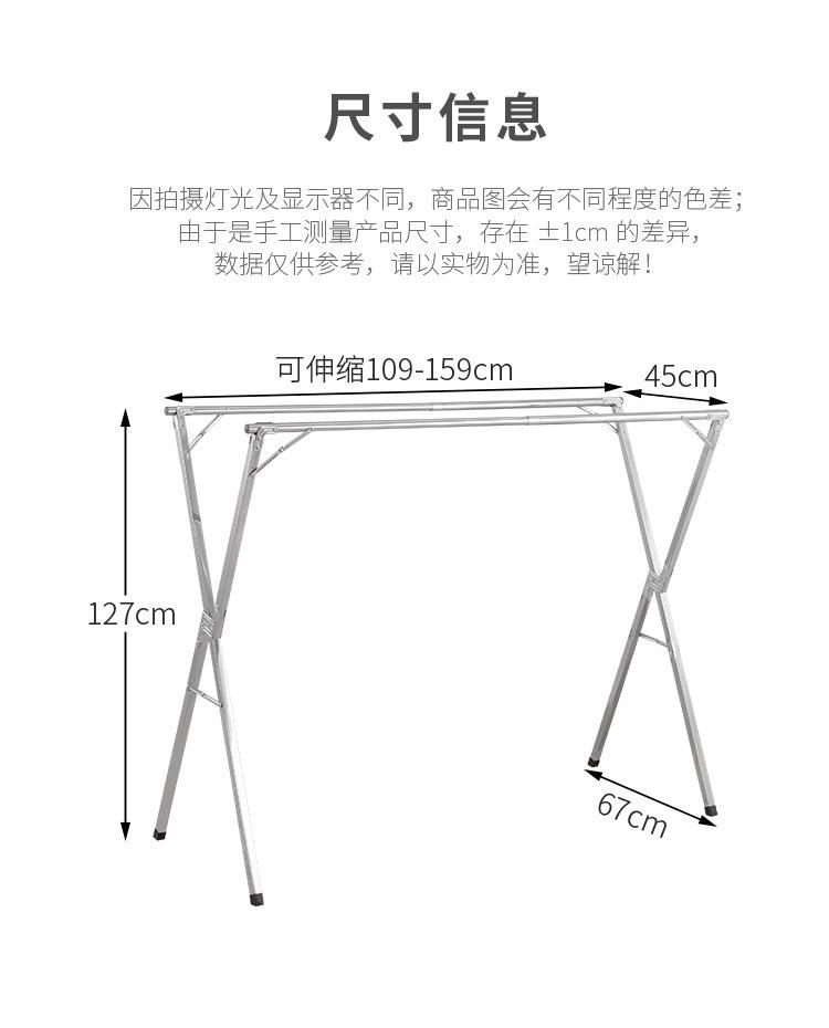 Tendedero de acero inoxidable plegable para suelo, para interiores y exteriores, con doble varilla, para balcón, telescópico tipo X.