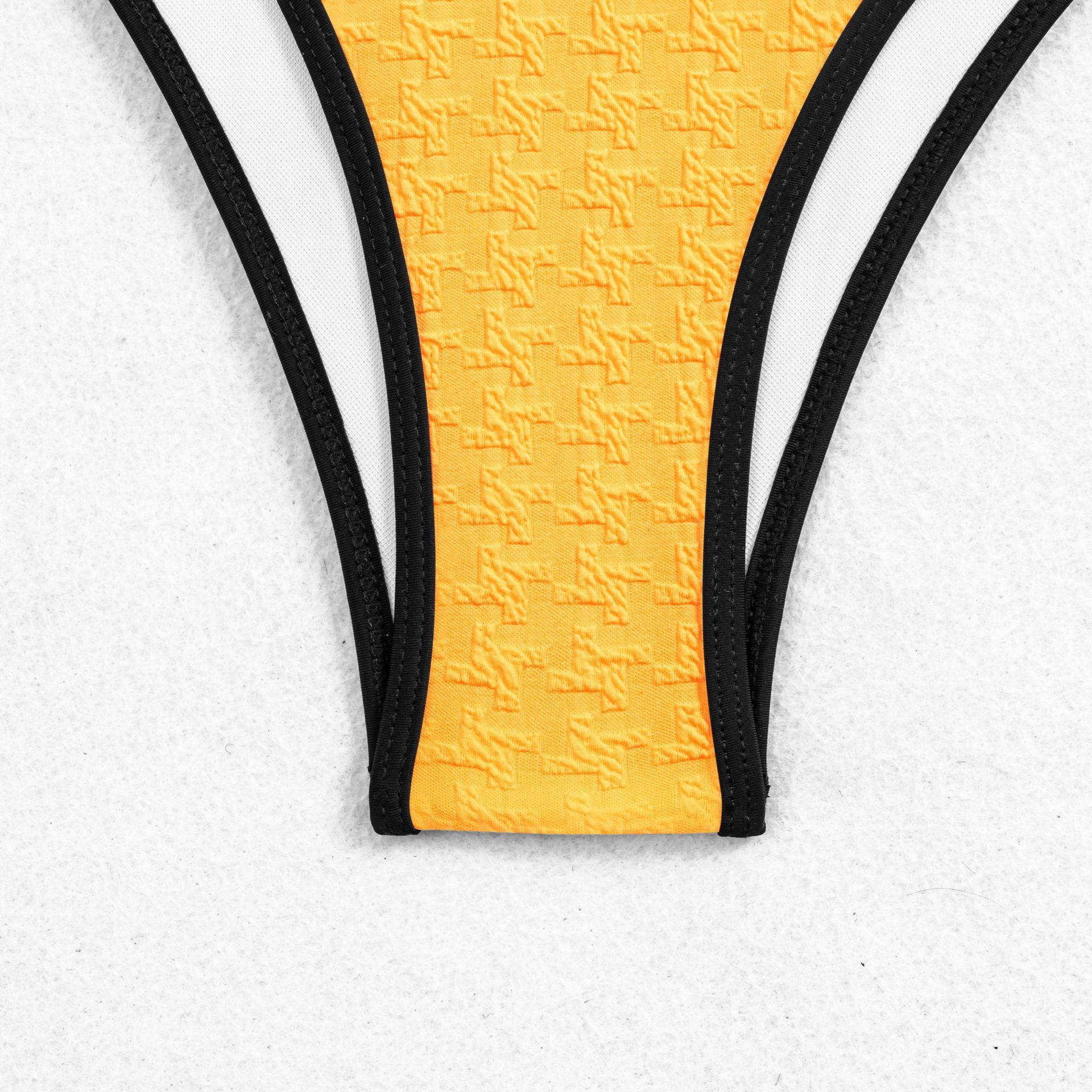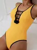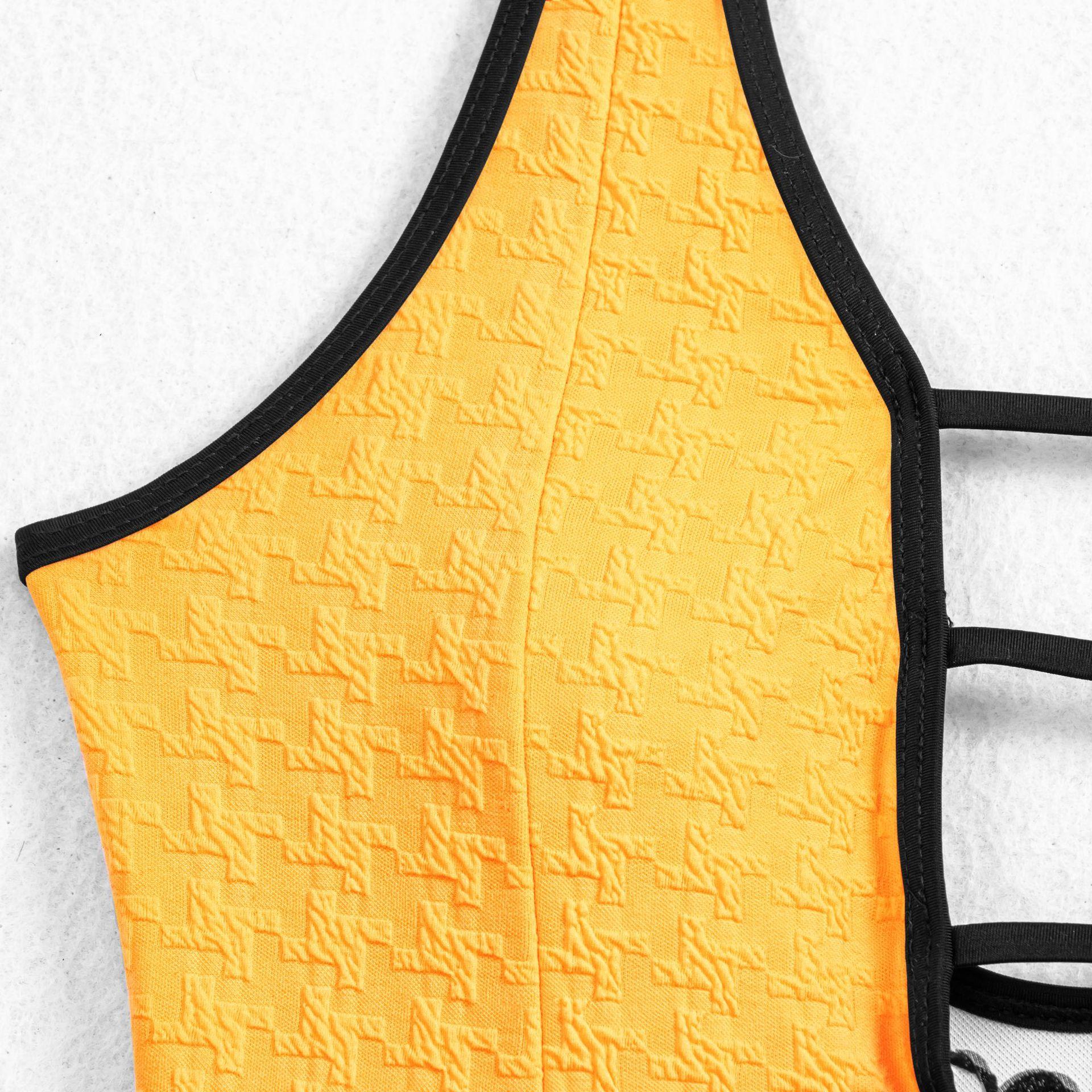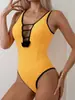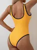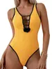 Traje de Baño Entero Sexy Amarillo con Diseño de Flores y Espalda Descubierta Bikini Europeo y Americano