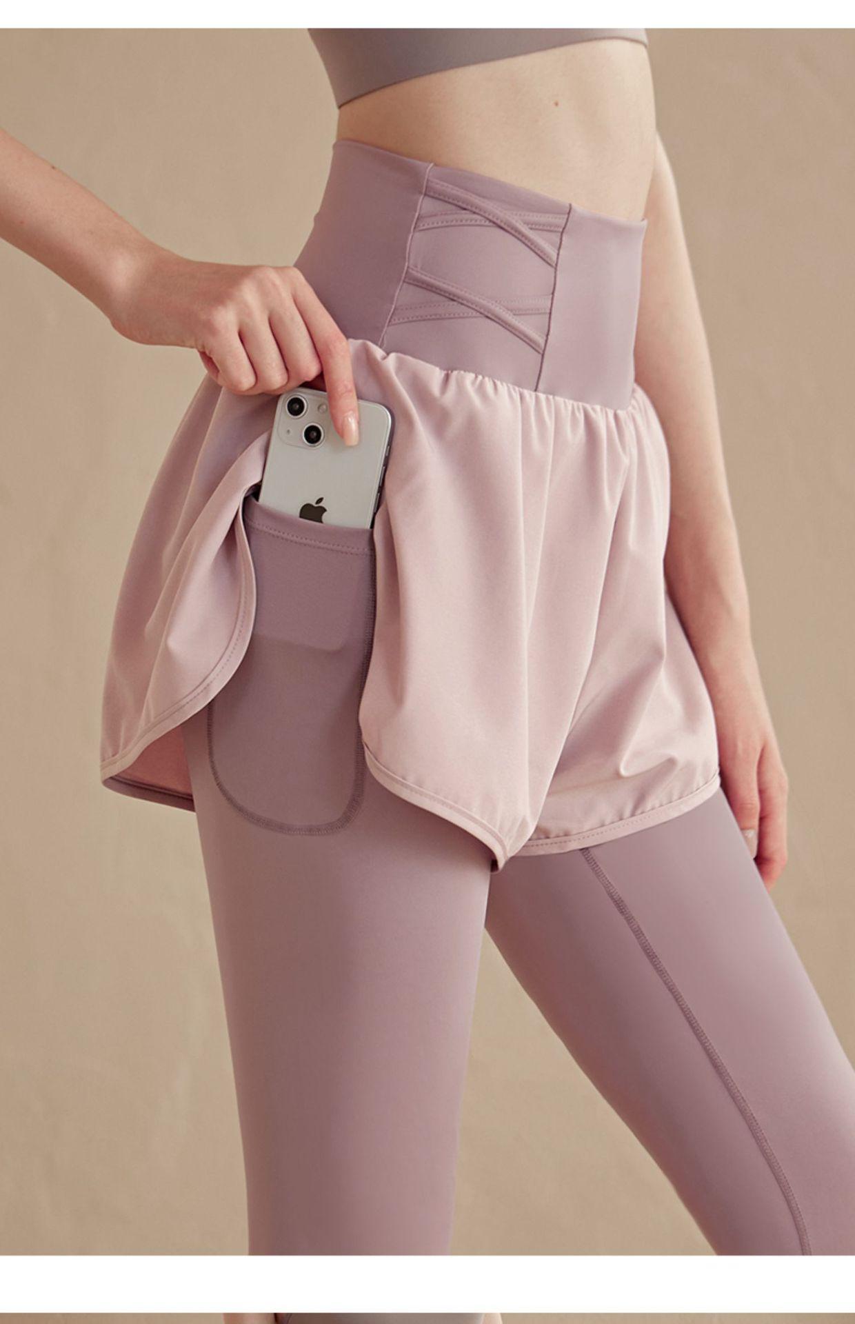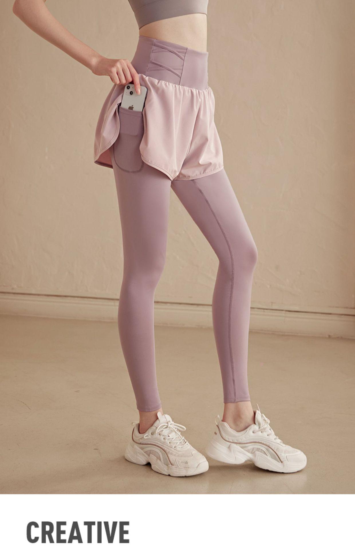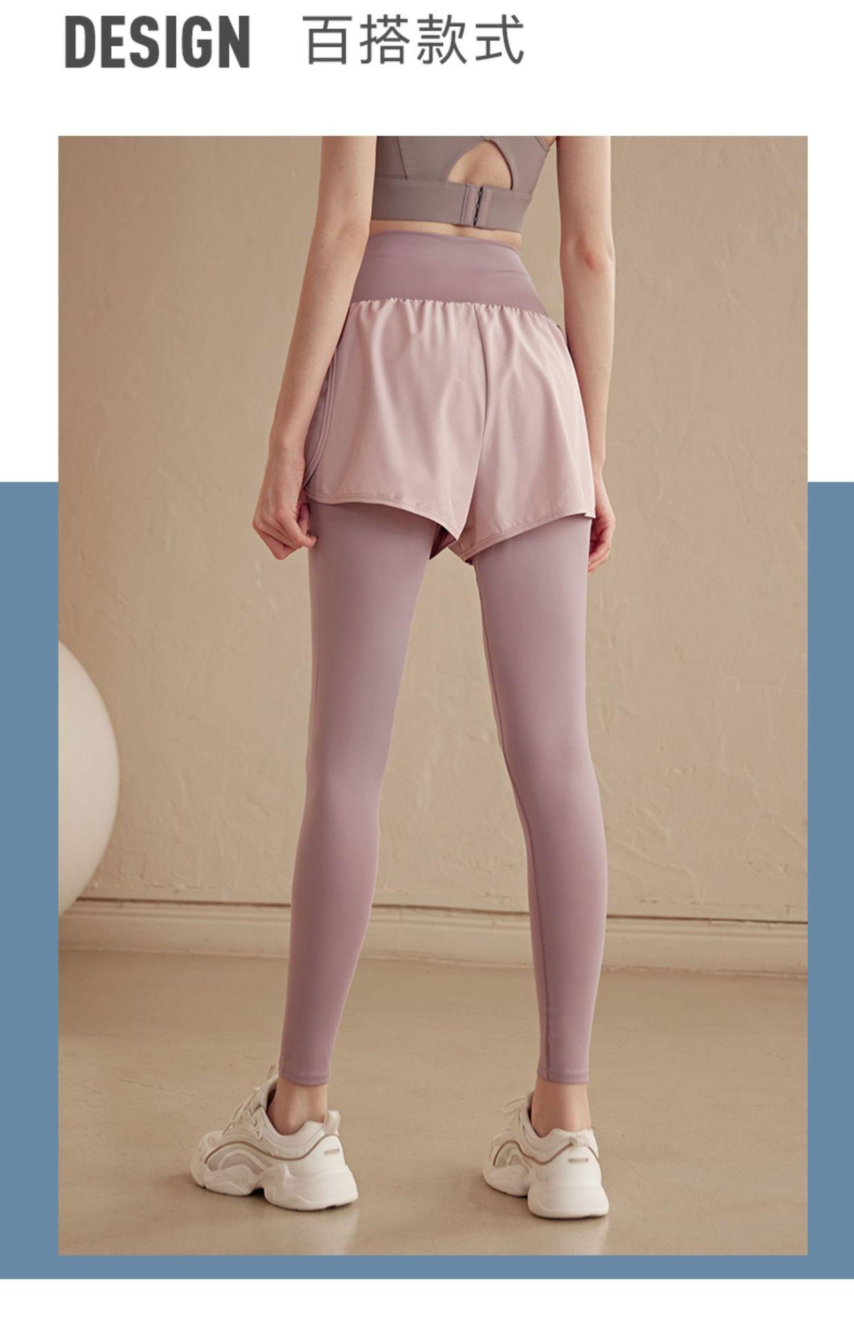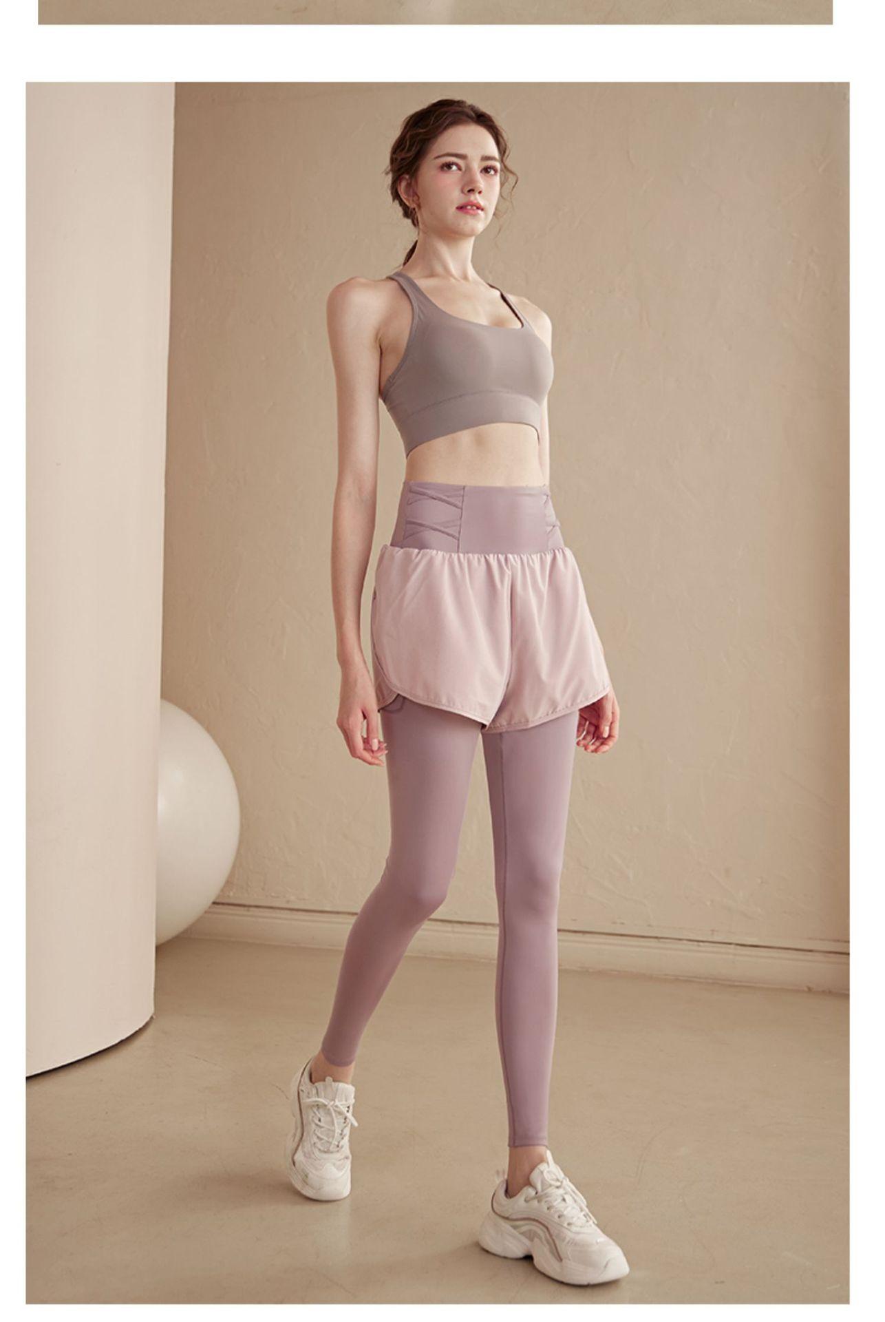 Pantalones de yoga falsos de dos piezas para mujer, de cintura alta, con levantamiento de cadera, pantalones de fitness que contraen el abdomen, pantalones para correr, pantalones deportivos ajustados y de secado rápido para otoño