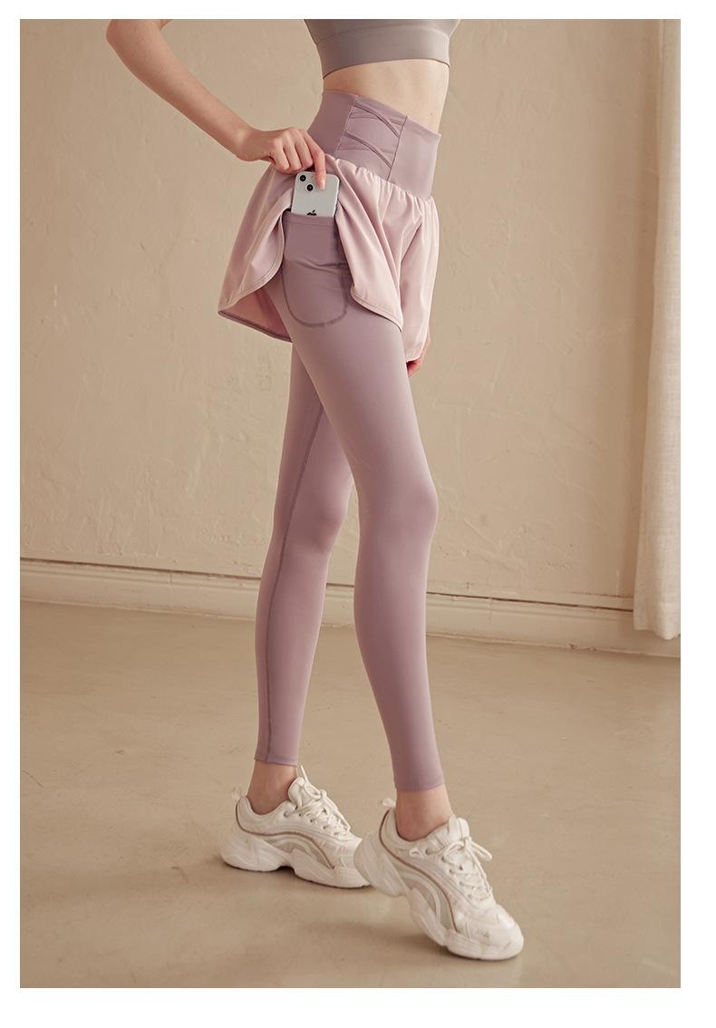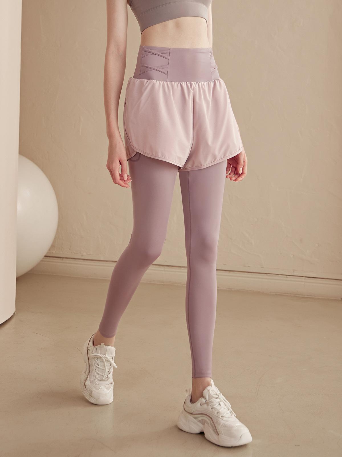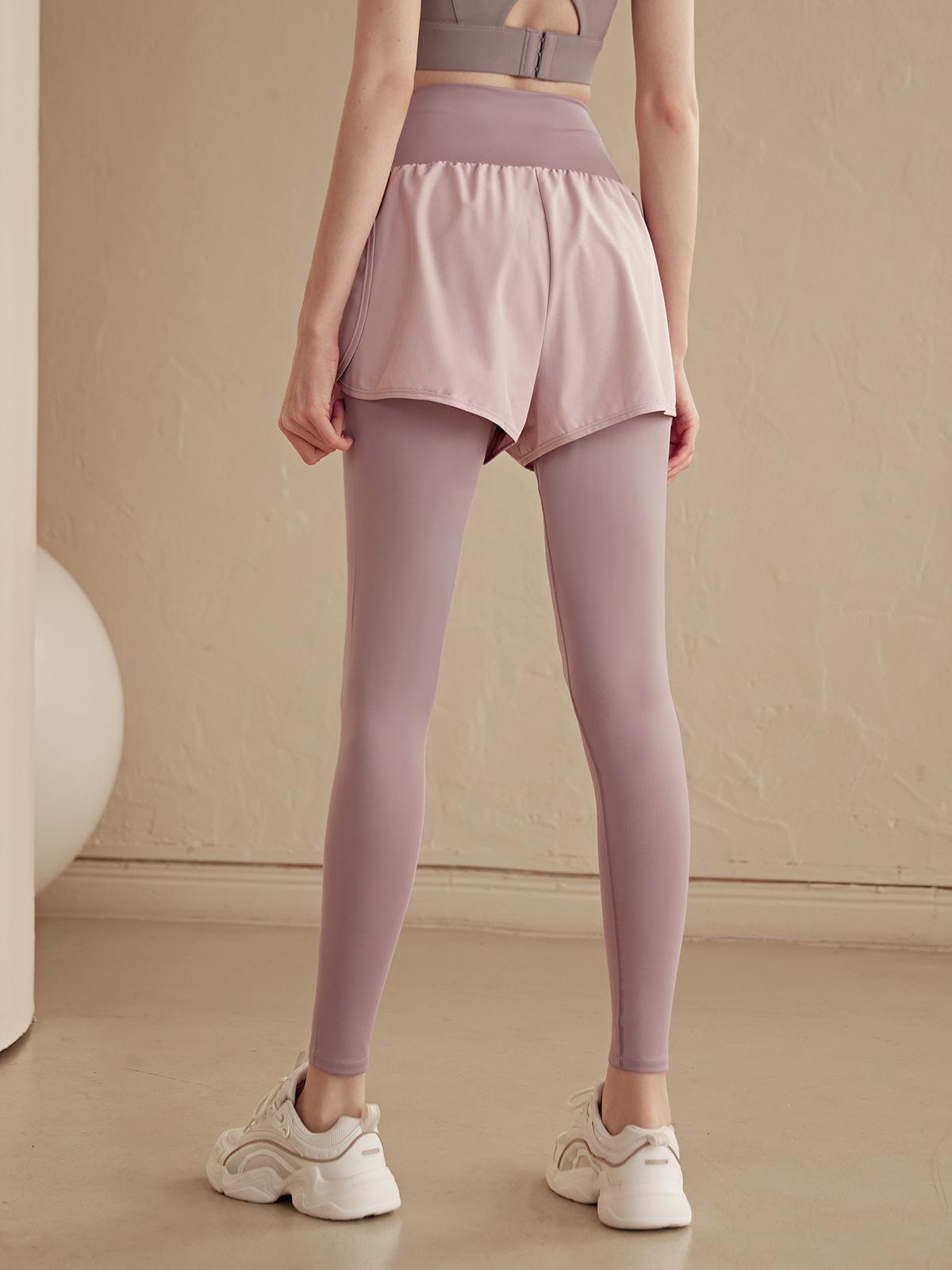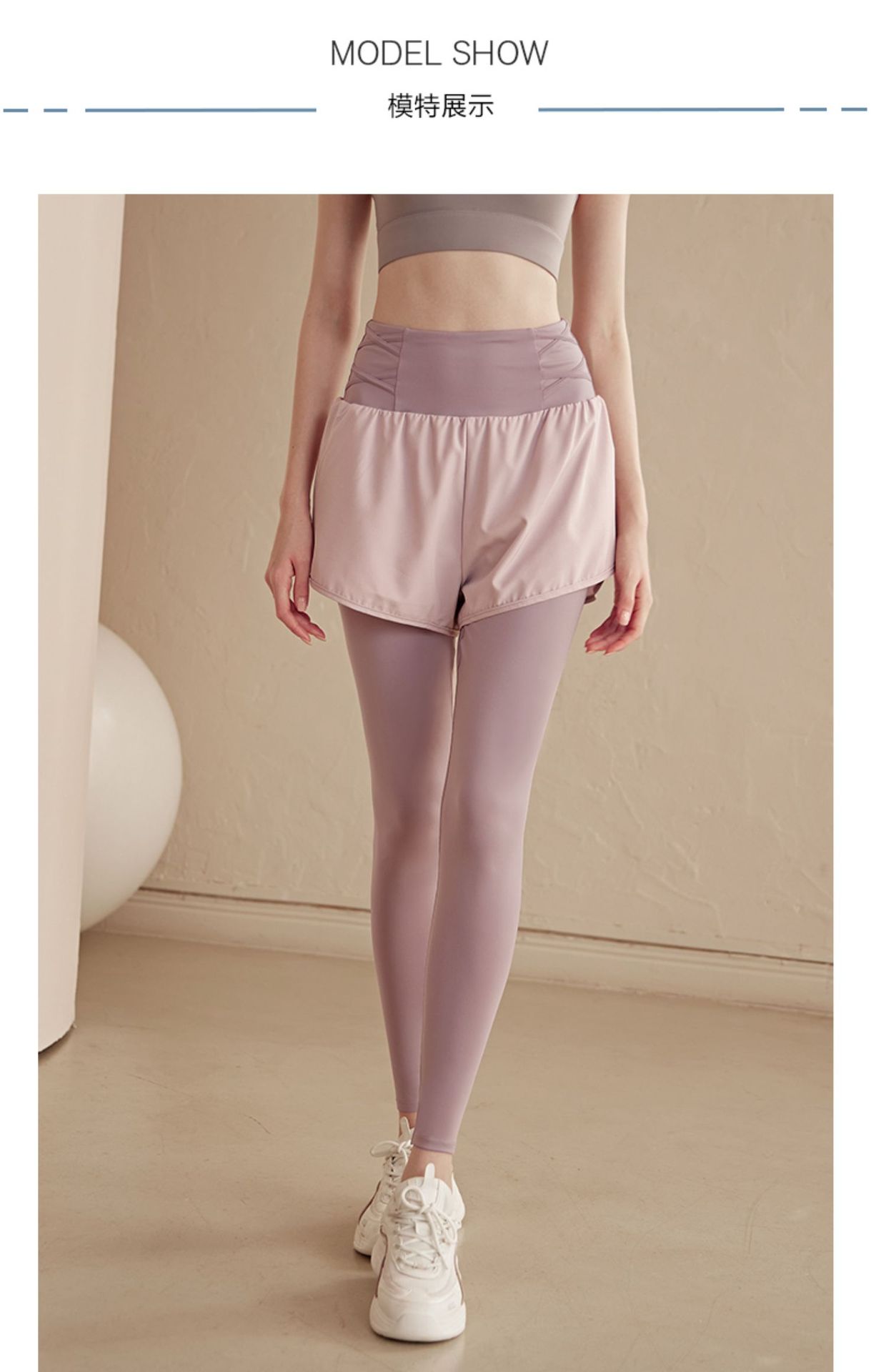 Pantalones de yoga falsos de dos piezas para mujer, de cintura alta, con levantamiento de cadera, pantalones de fitness que contraen el abdomen, pantalones para correr, pantalones deportivos ajustados y de secado rápido para otoño
