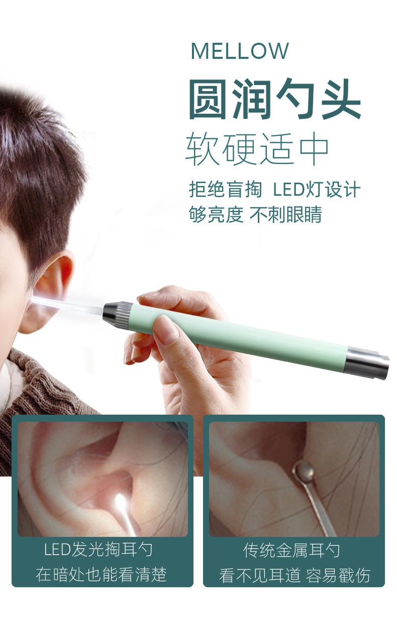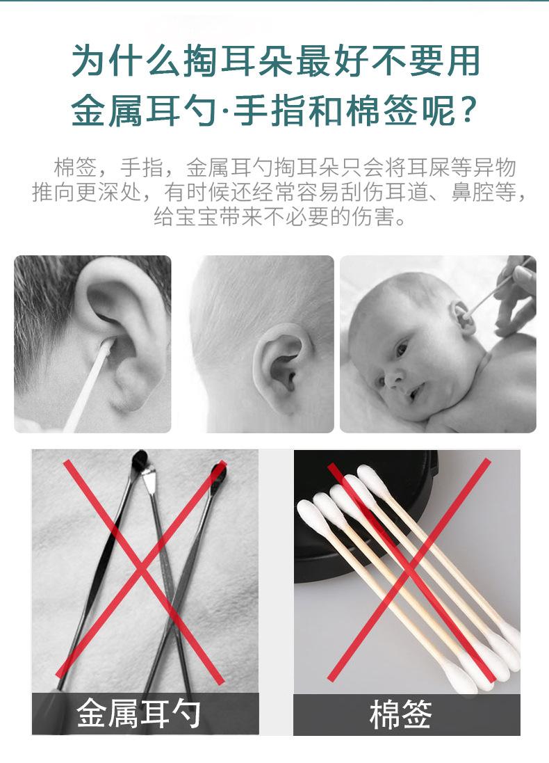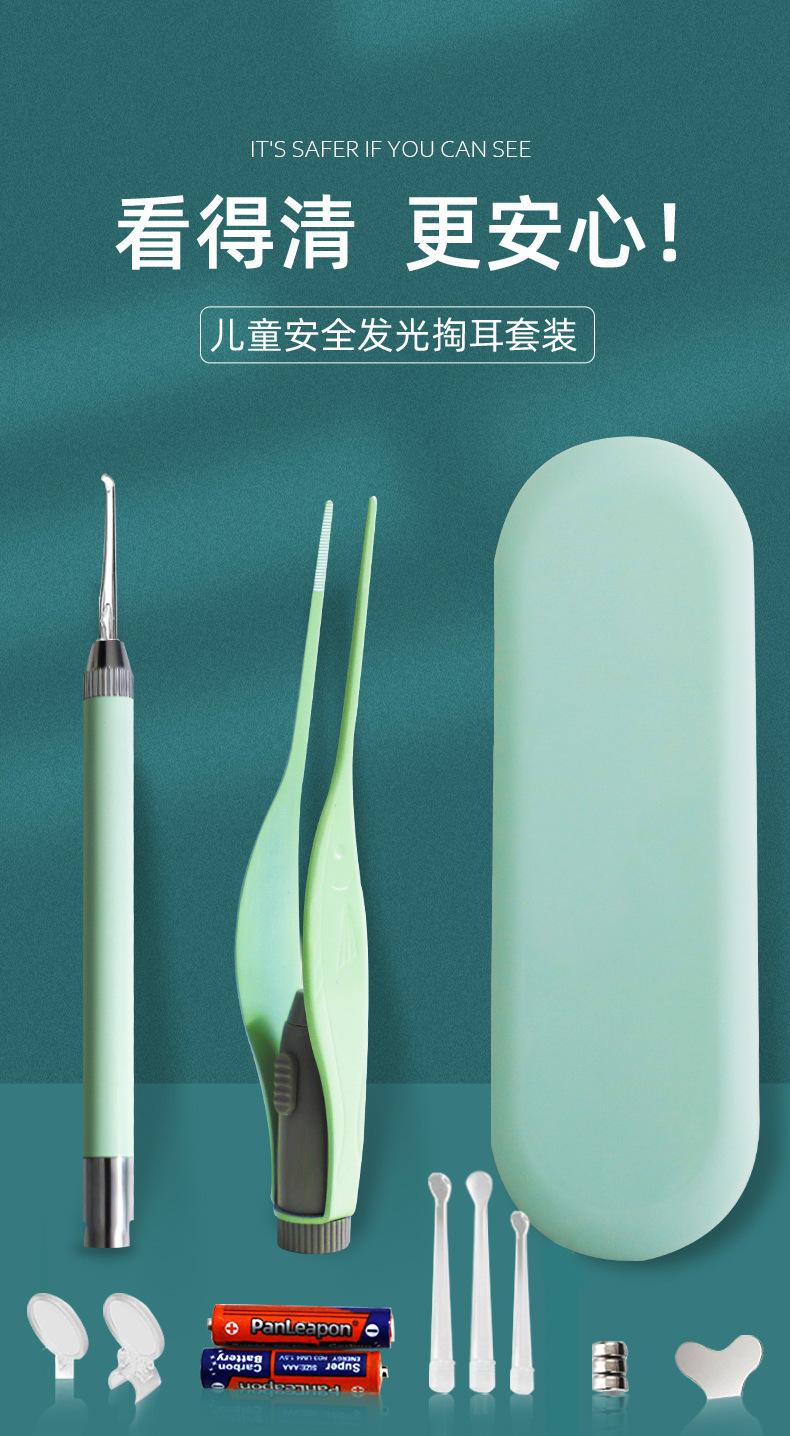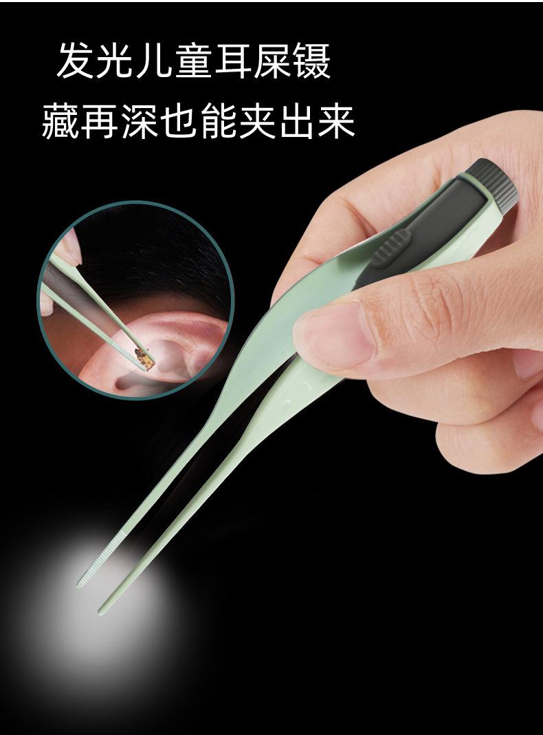 Fuqi Set de 2 piezas de limpiador de oídos luminoso Limpiador visual de oídos para bebés Removedor de cerumen Pinzas para cerumen para niños Limpiador de oídos luminoso