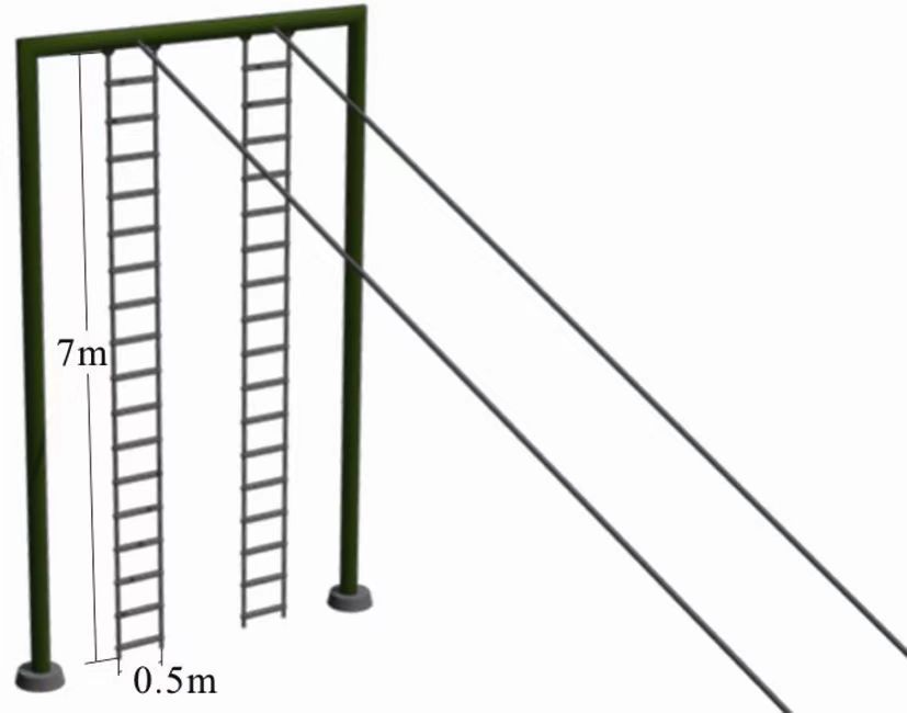 Low pile net, High rail, Tire wall, Soft ladder diagonal rope, Double rope pool, Water suspension ladder, Obst...