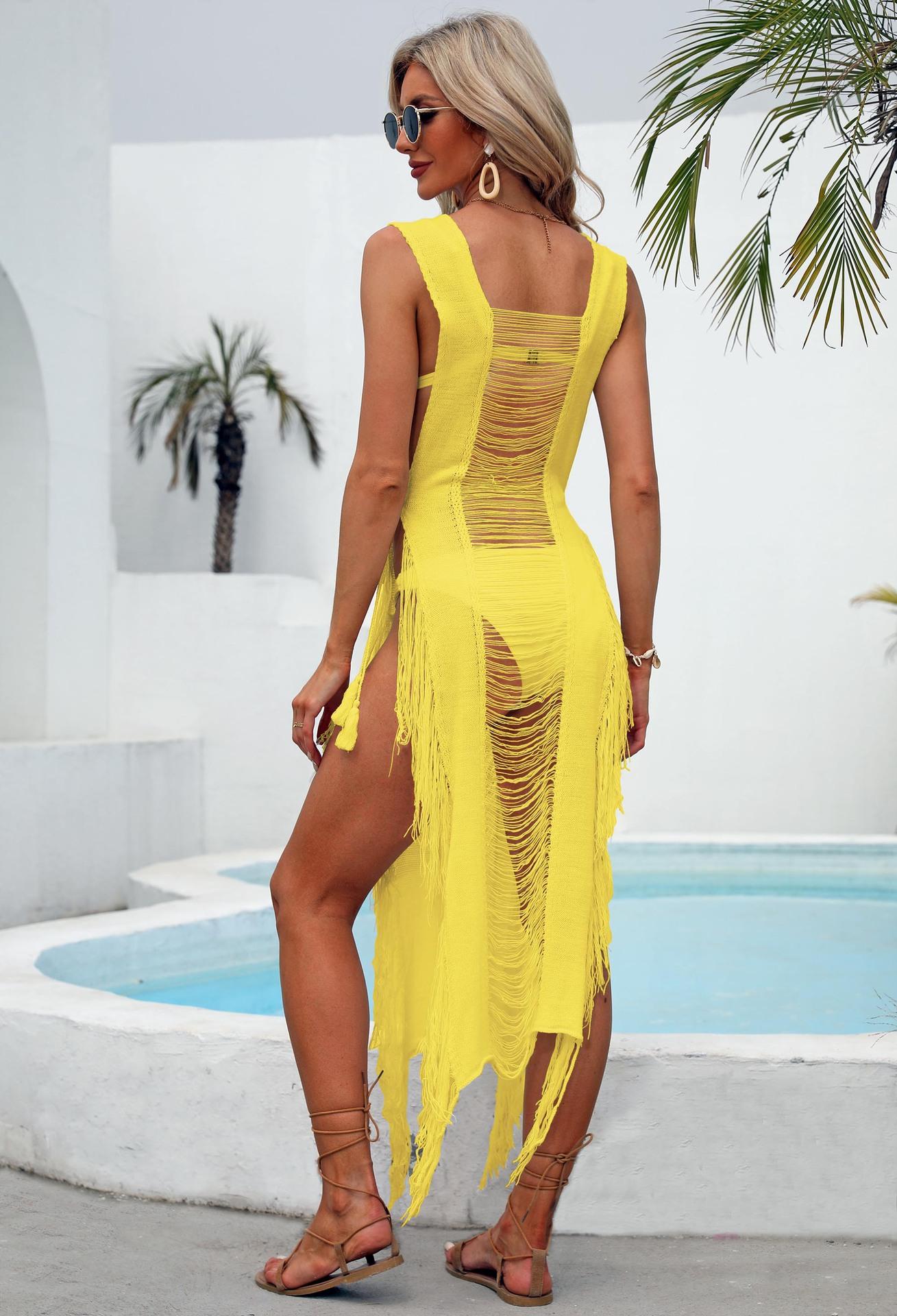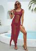 Blusa de playa transfronteriza para mujeres europeas y americanas, sexy, transparente, con cordones, tejido, chaleco, falda, bikini, ropa exterior, vestido para mujer