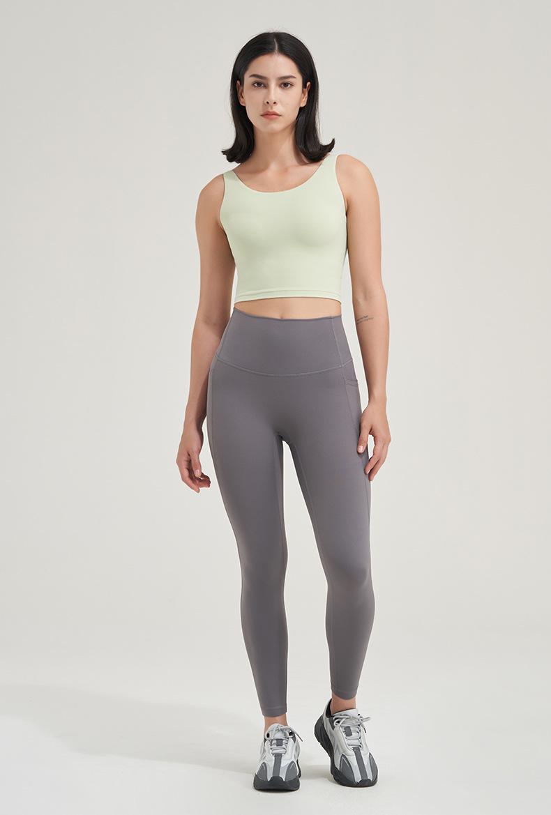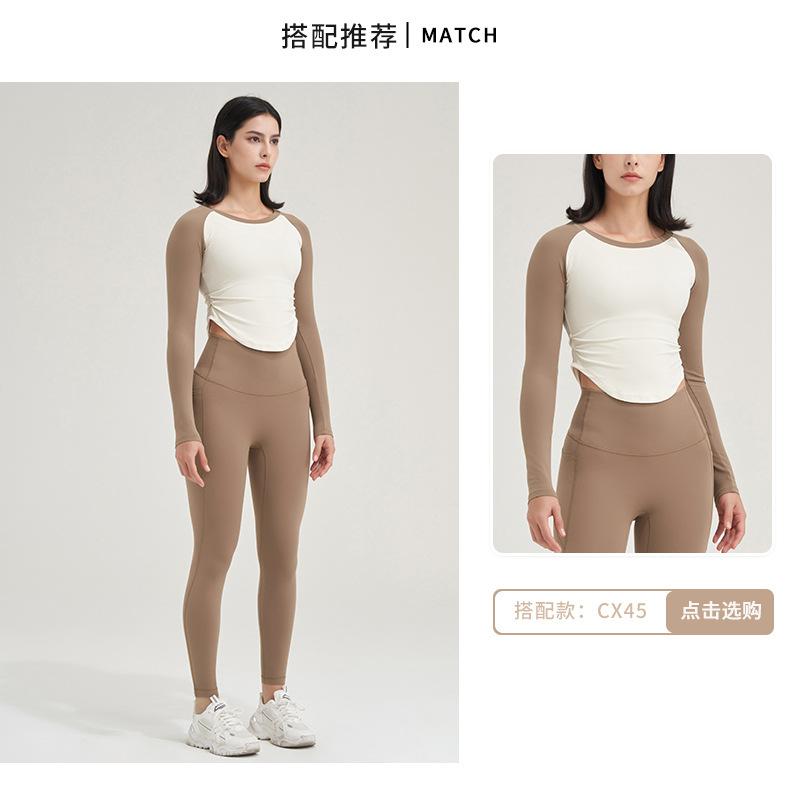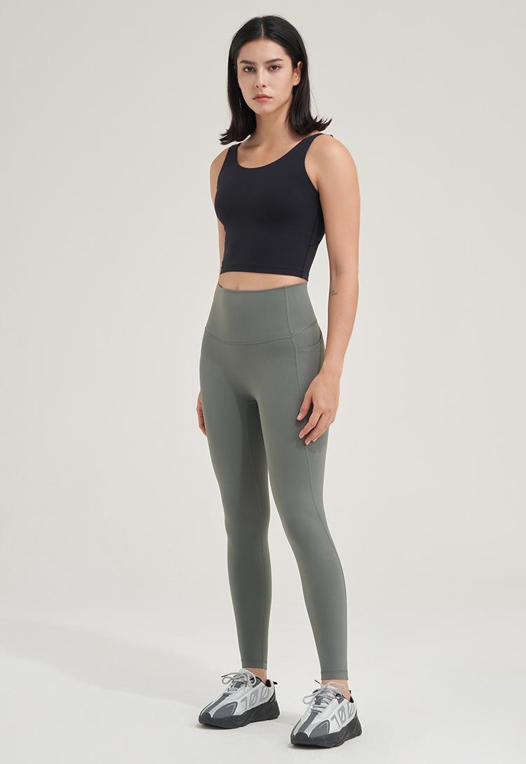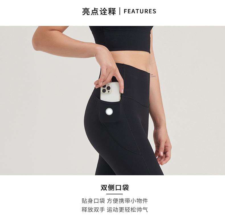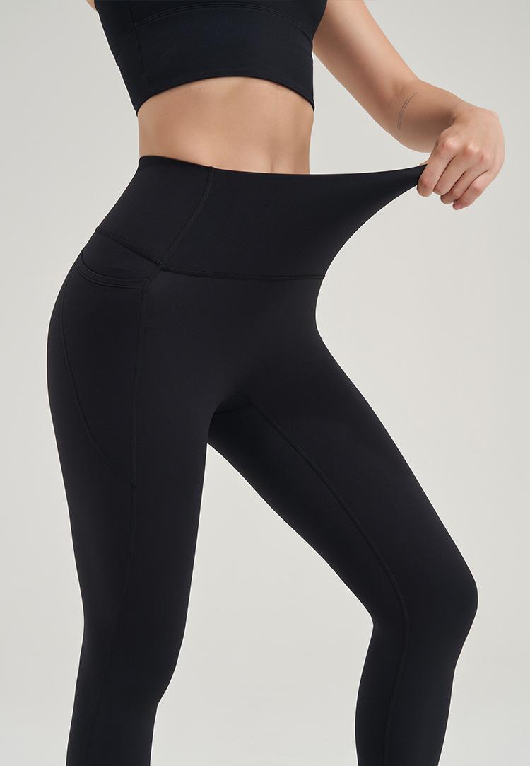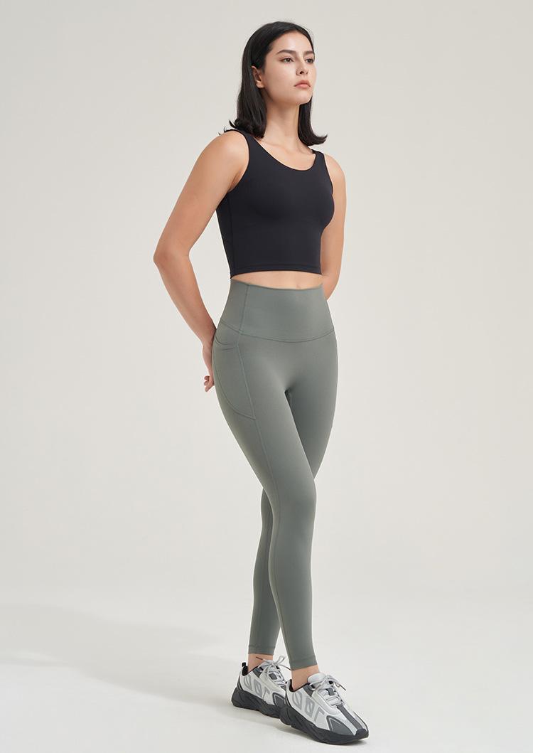 Pantalones de yoga para mujer con bolsillos laterales, cintura alta, realce de cadera, sin costuras, para fitness, color melocotón, pantalones deportivos para exteriores