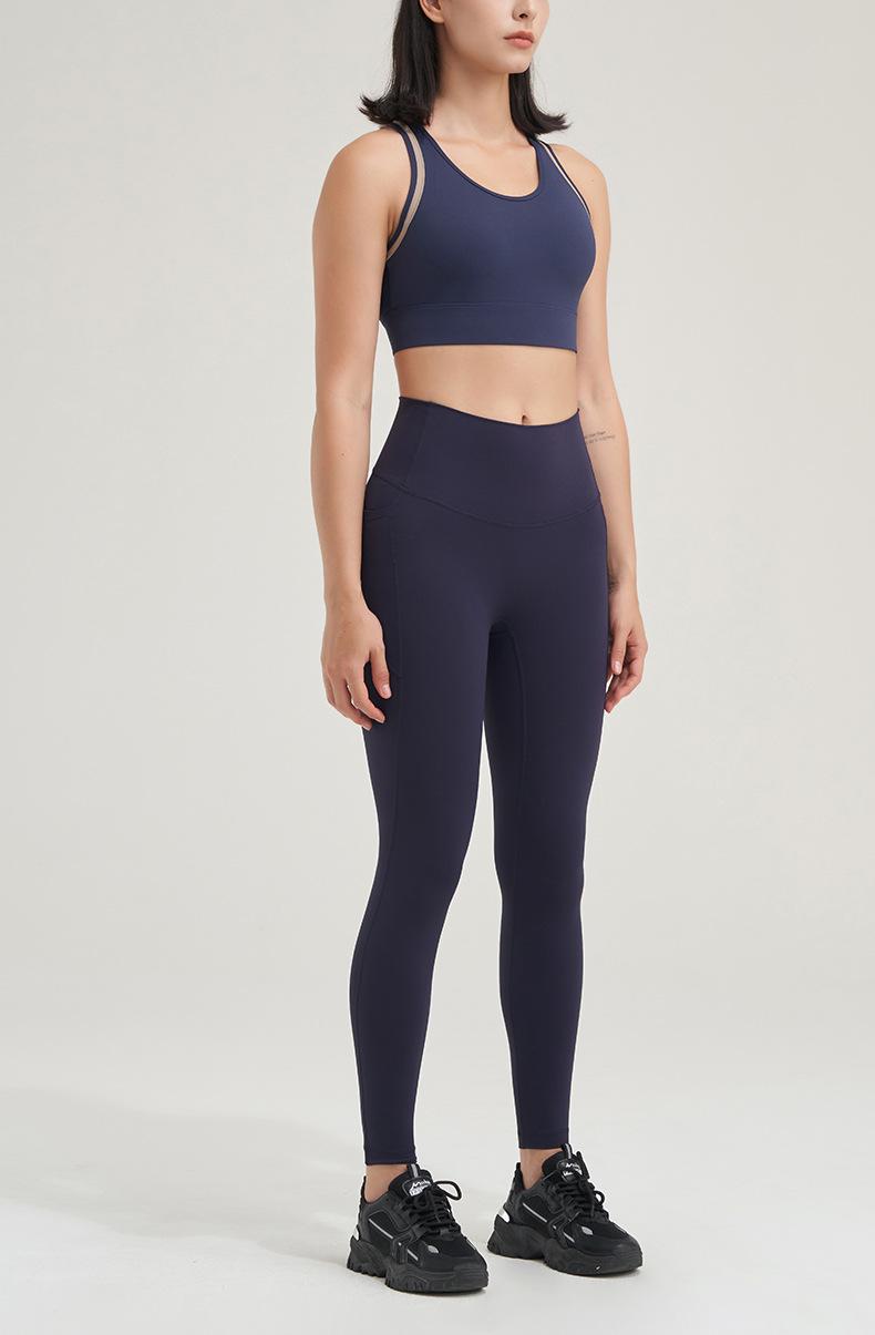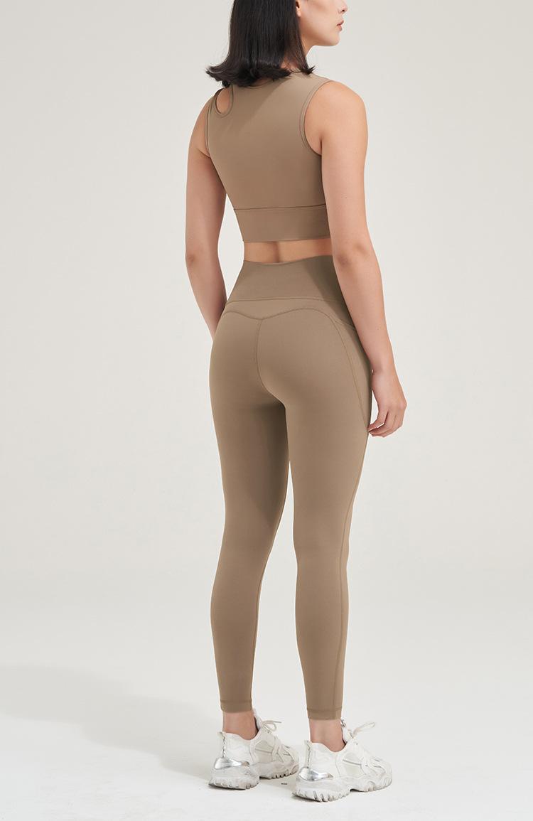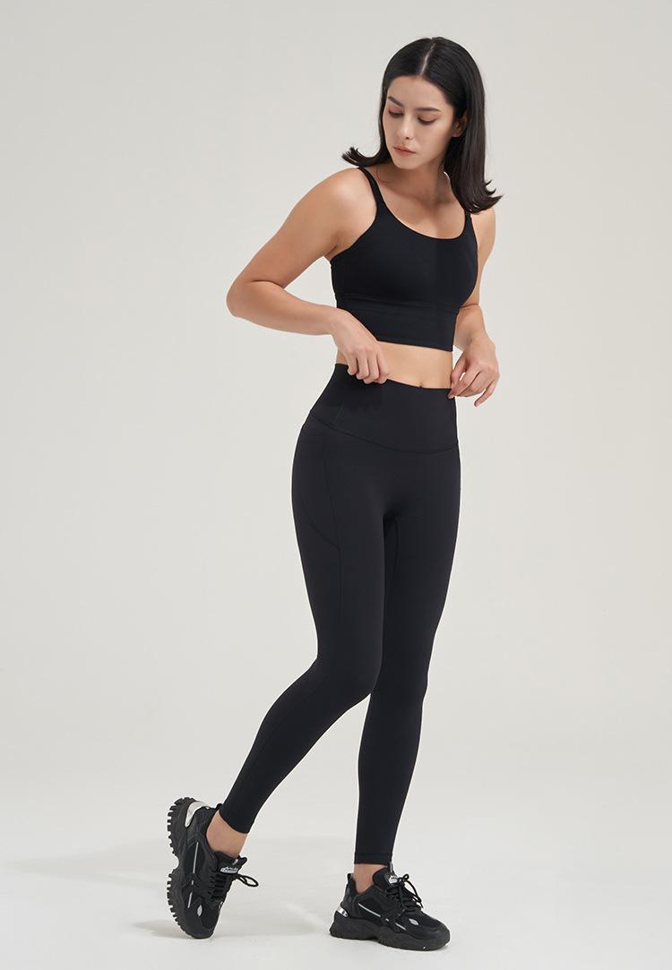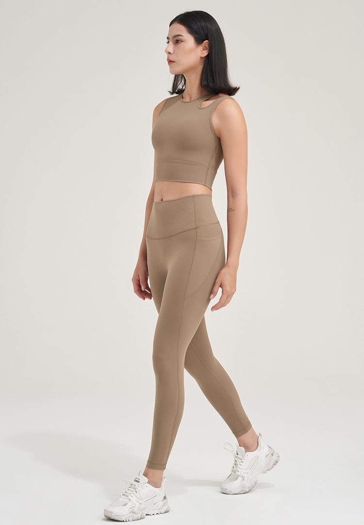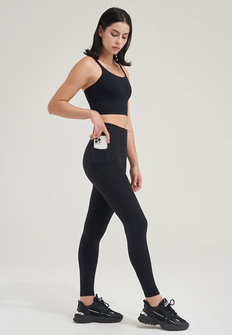 Pantalones de yoga para mujer con bolsillos laterales, cintura alta, realce de cadera, sin costuras, para fitness, color melocotón, pantalones deportivos para exteriores