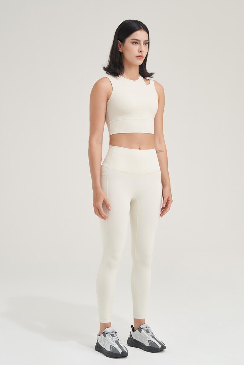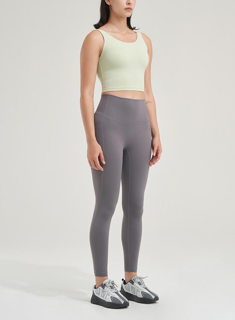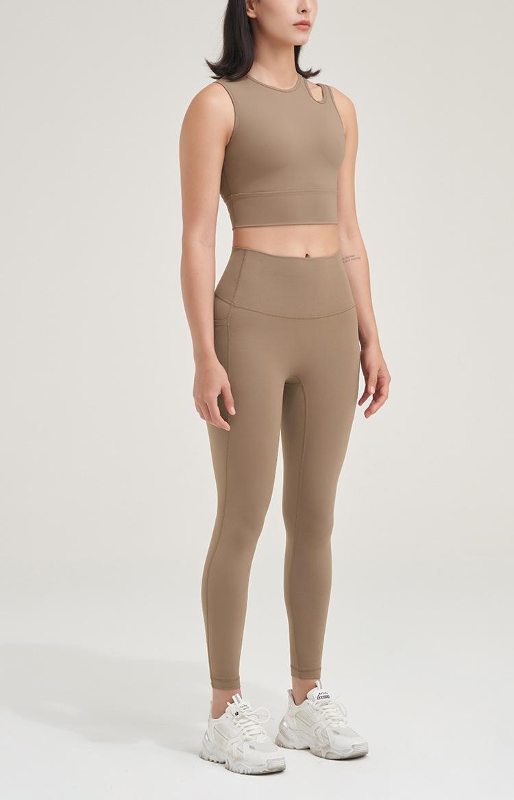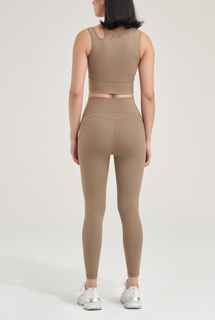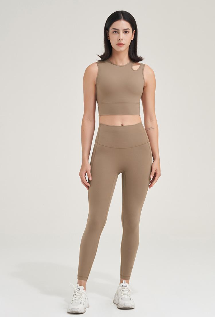 Pantalones de yoga para mujer con bolsillos laterales, cintura alta, realce de cadera, sin costuras, para fitness, color melocotón, pantalones deportivos para exteriores