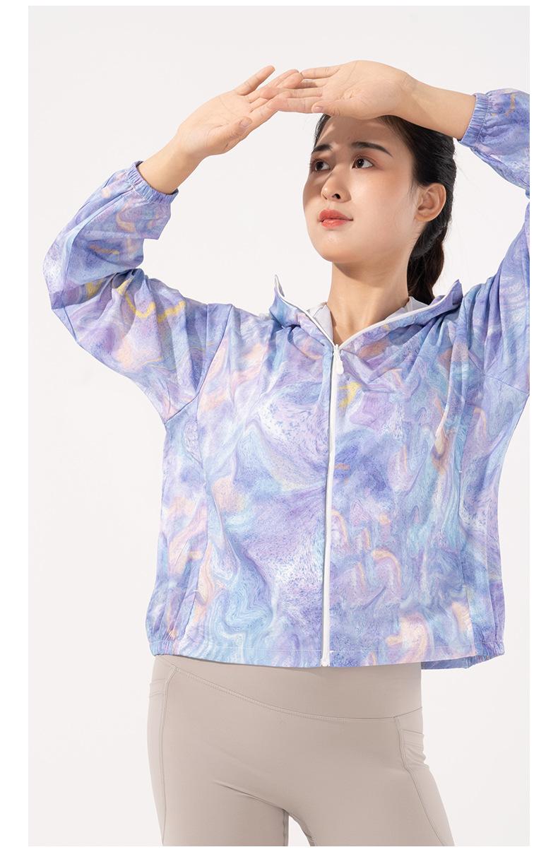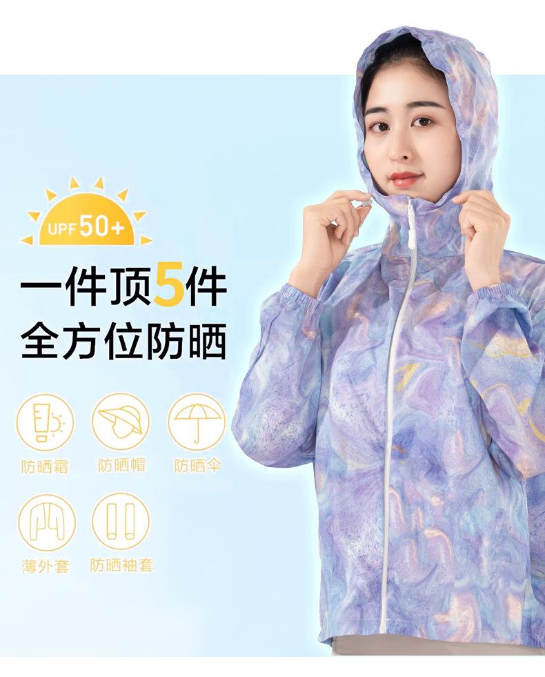 Ropa de Protección Solar para Exteriores para Mujer Todo en Uno con Capucha Estampado Colorido Upf50+ Ligera Transpirable Anti-UV Chaqueta Versátil