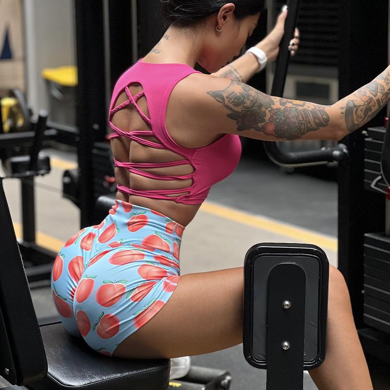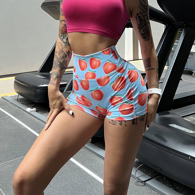 Pantalones cortos deportivos con estampado de melocotón para mujer, mallas deportivas para correr, yoga, tres pantalones, para Europa y América