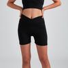 Pantalones ajustados de cinco puntos Pantalones de yoga desnudos para mujer Cintura alta cruzada Ajustados Transpirables Secado rápido Pantalones de entrenamiento deportivo Shorts de fitness