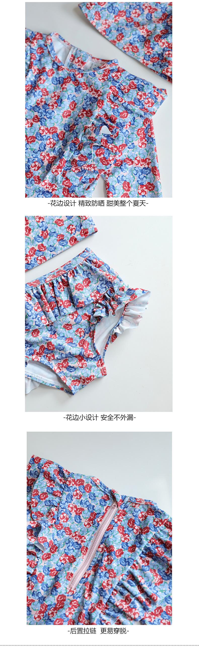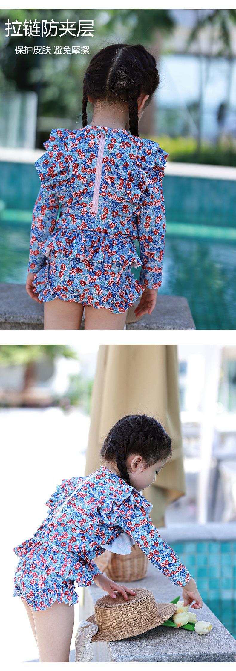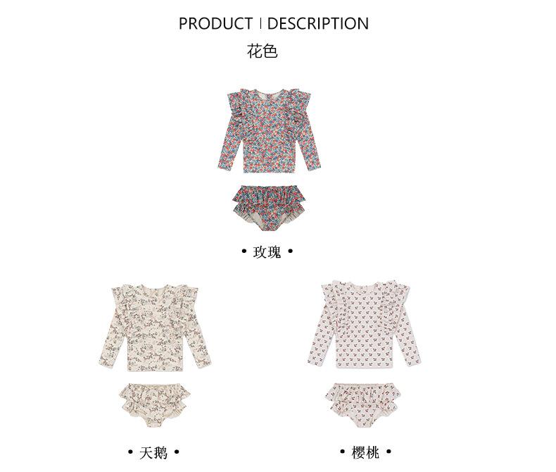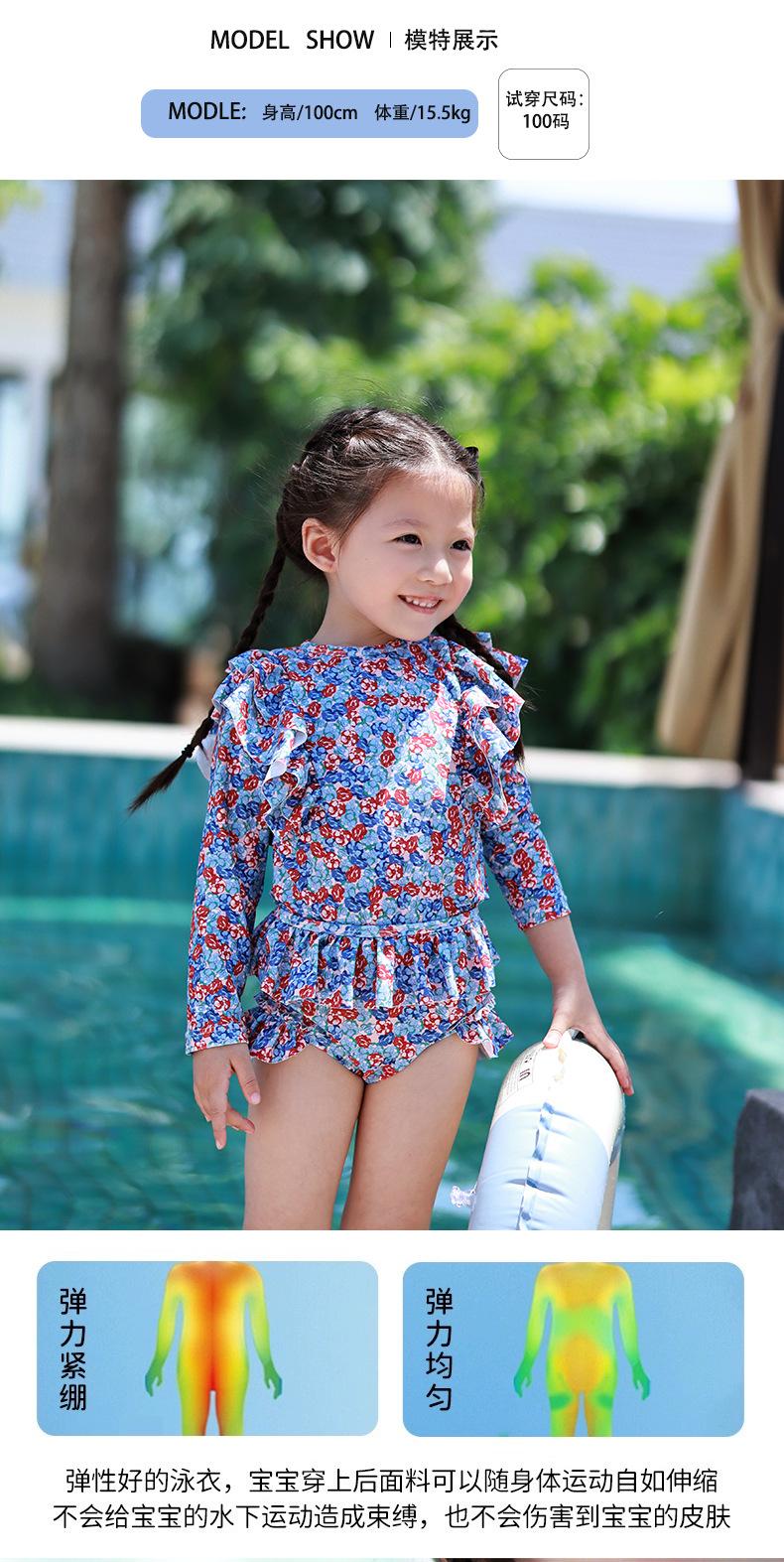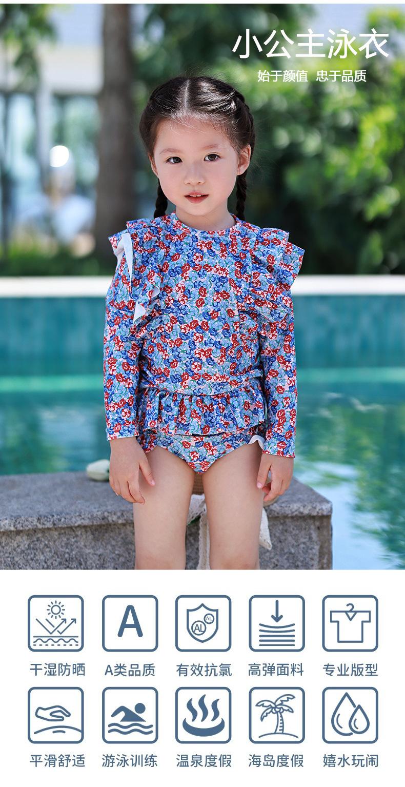 Traje de baño dividido de verano para niñas 2025, nuevo estilo Ins, traje de baño de manga larga con protección solar para bebés, traje de baño de encaje para niñas.