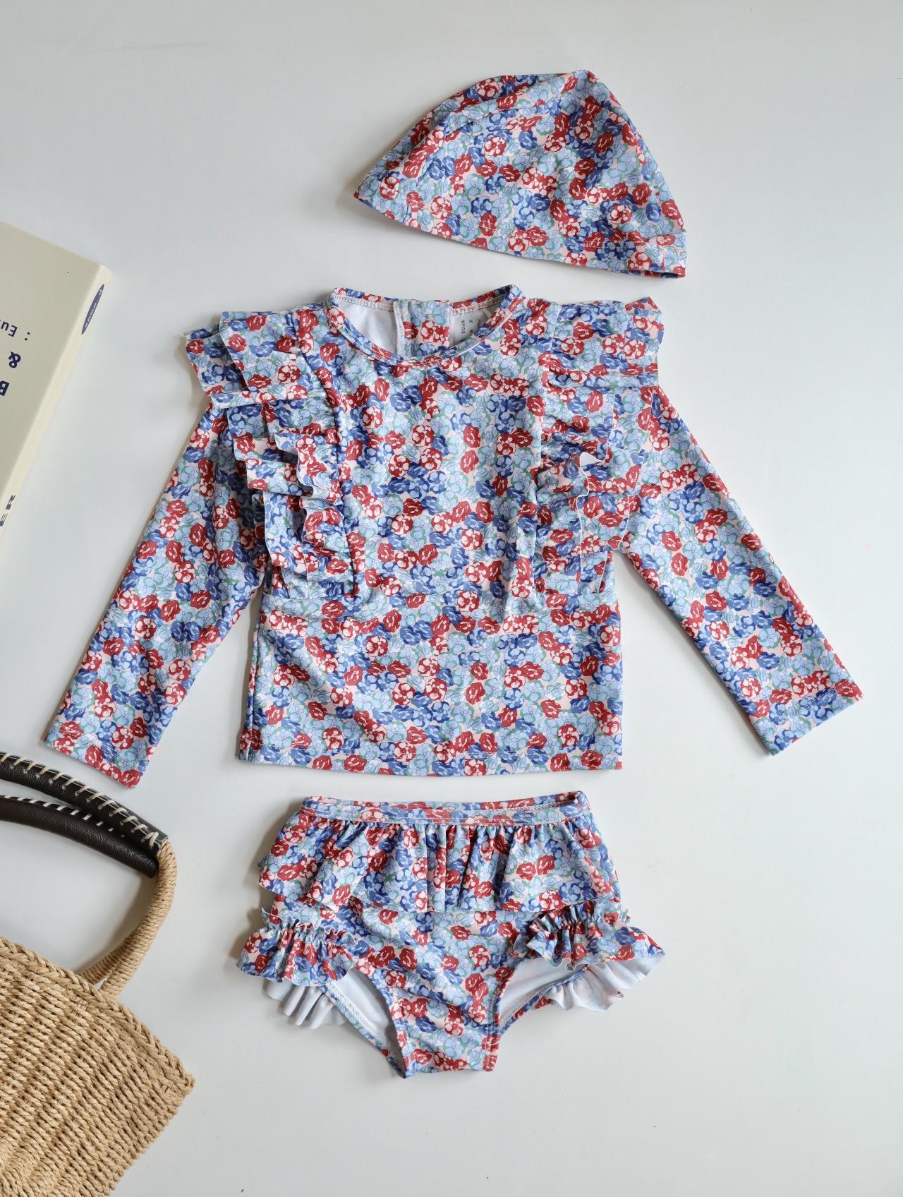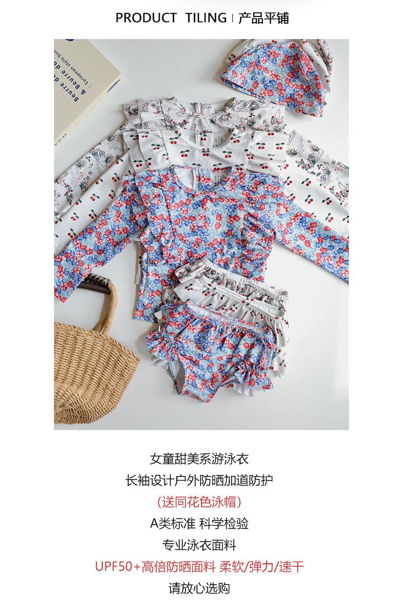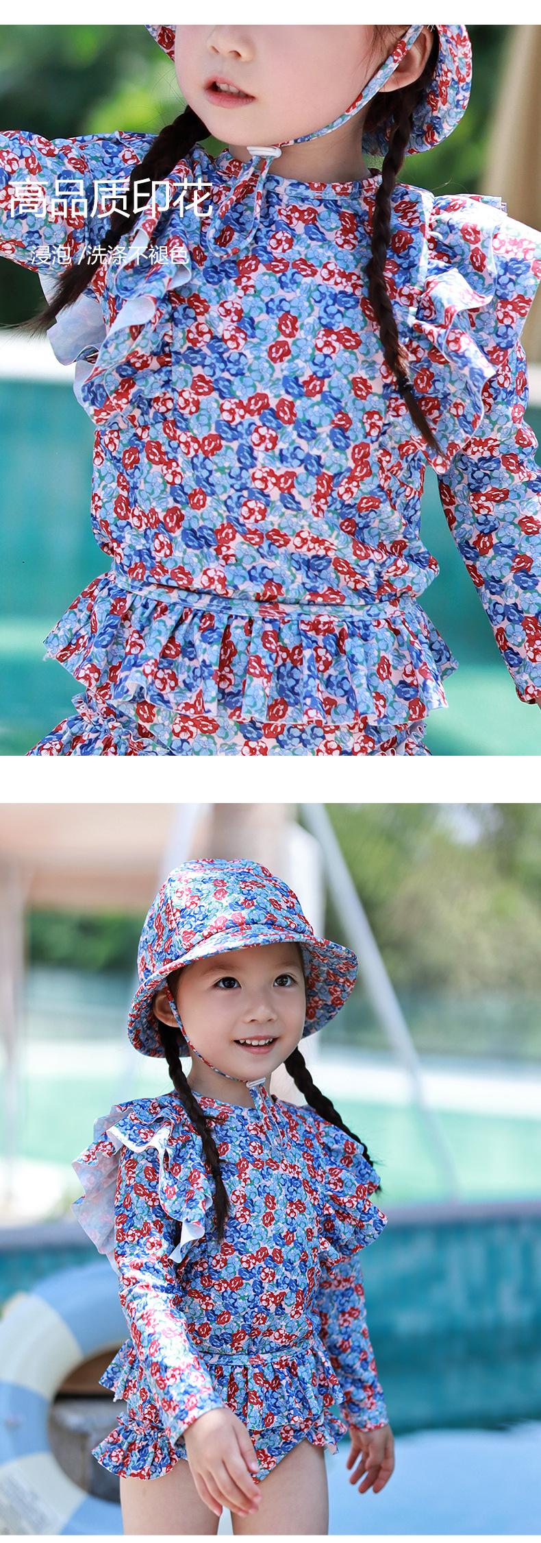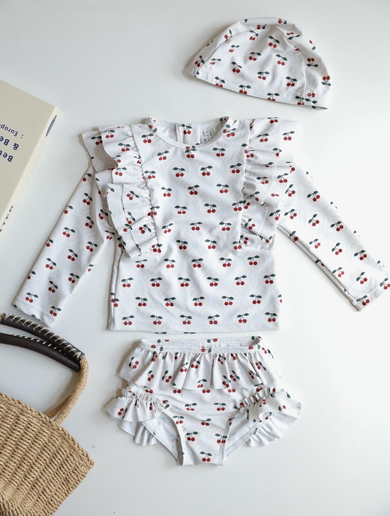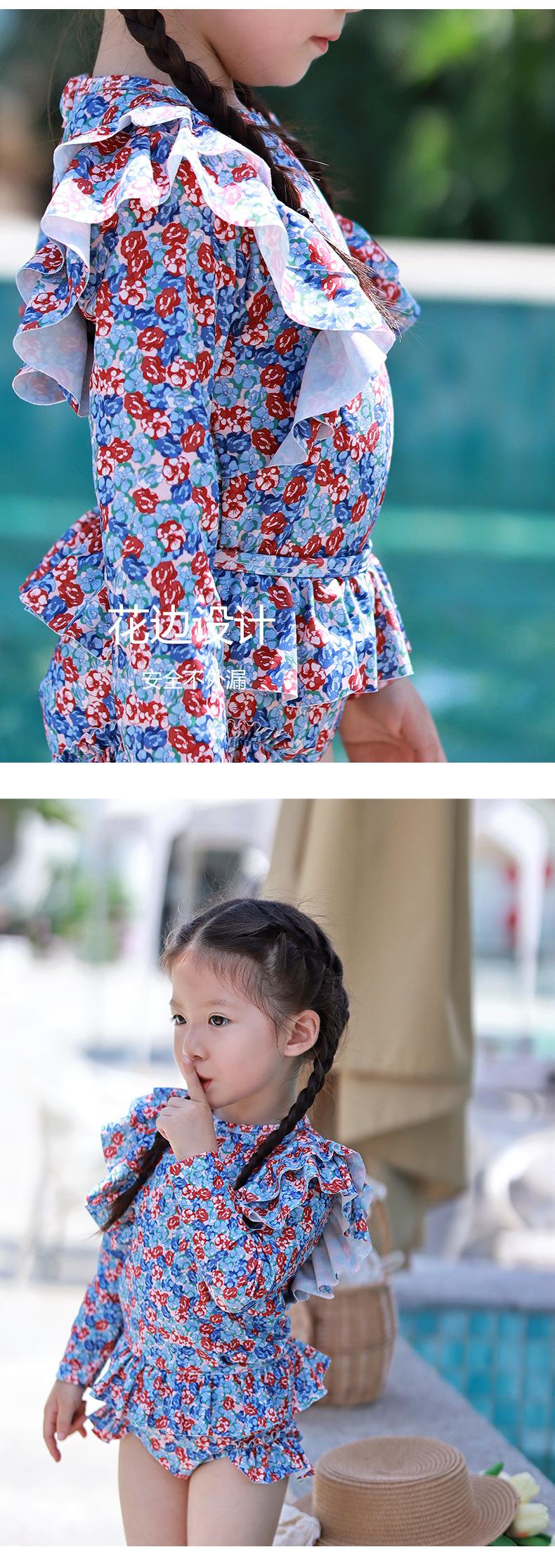 Traje de baño dividido de verano para niñas 2025, nuevo estilo Ins, traje de baño de manga larga con protección solar para bebés, traje de baño de encaje para niñas.