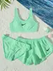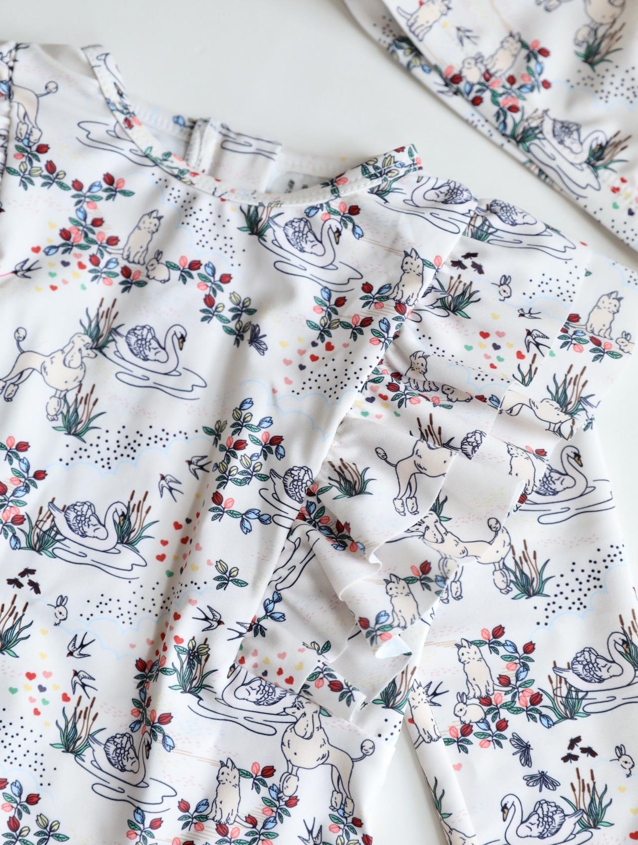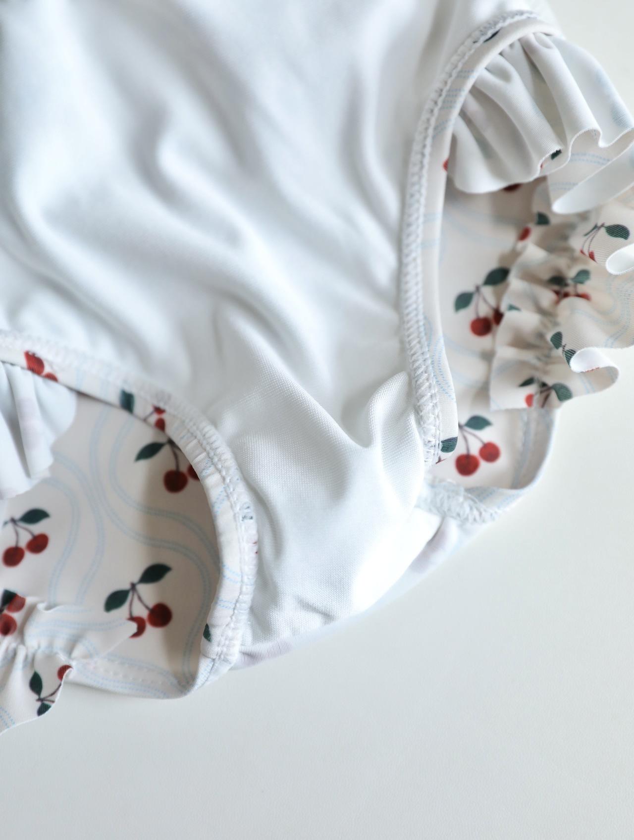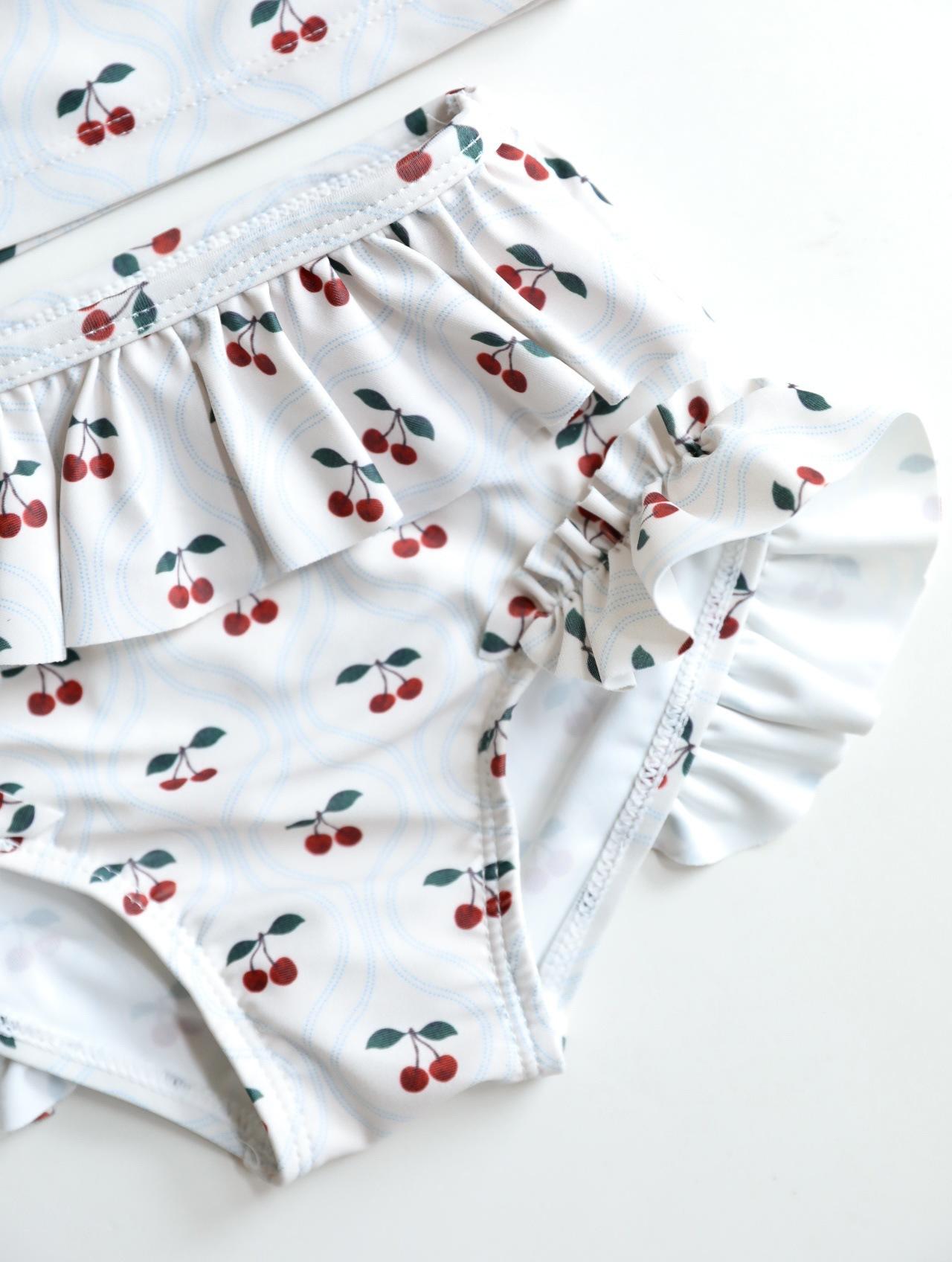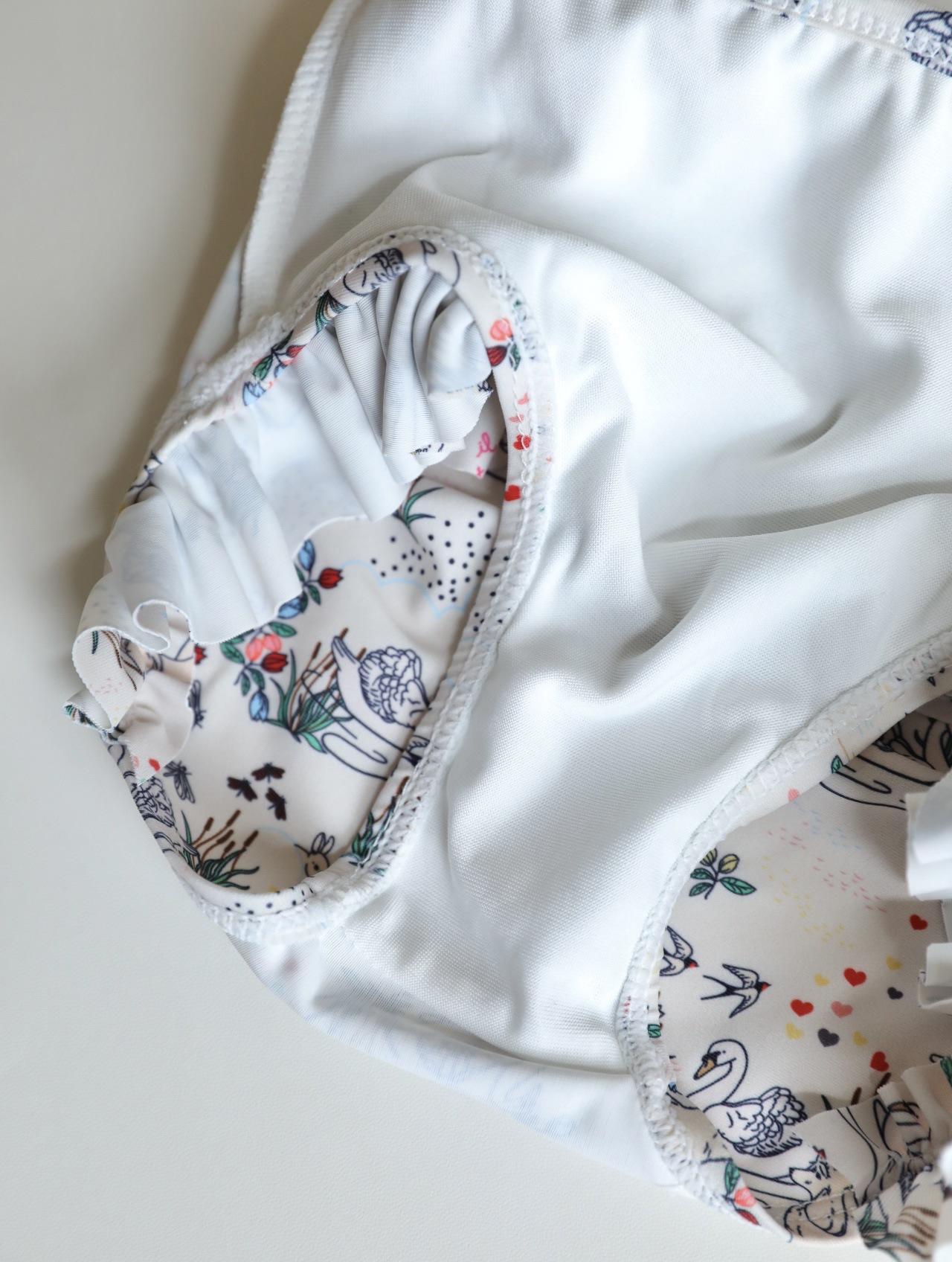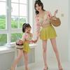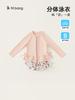 Traje de baño dividido de verano para niñas 2025, nuevo estilo Ins, traje de baño de manga larga con protección solar para bebés, traje de baño de encaje para niñas.