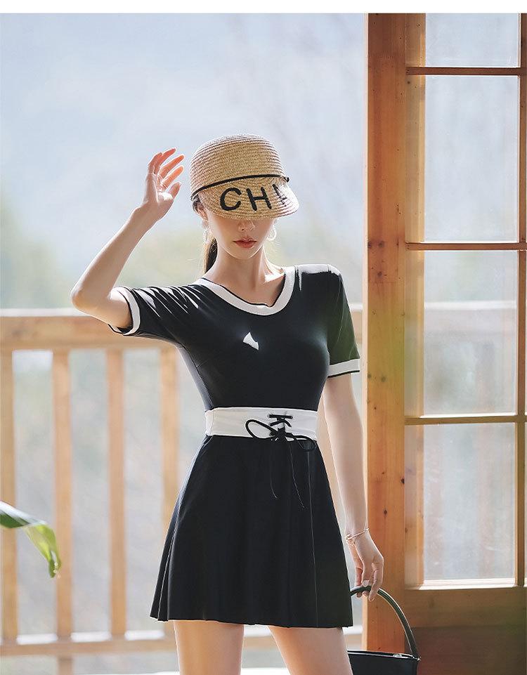 Traje de Baño de Una Pieza para Mujer 2025 Nueva Moda Conservador Look Adelgazante Cubre Vientre Sexy Pechos Pequeños Traje de Baño para Aguas Termales Venta al por Mayor