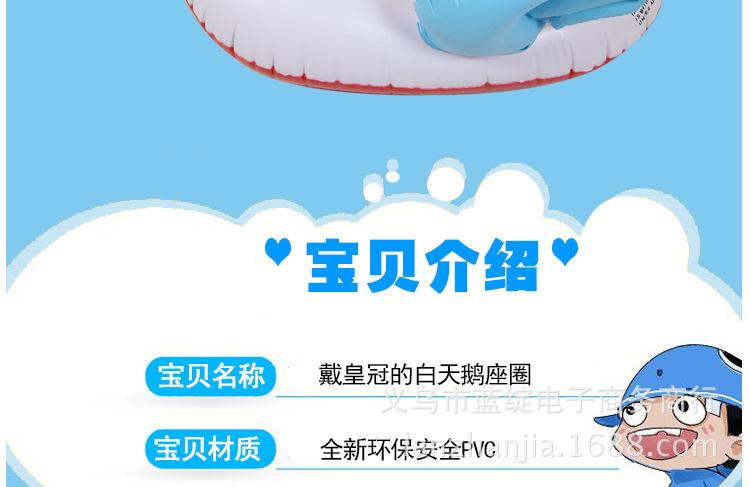 Venta caliente de verano, anillo flotante de natación para niños, asiento de bebé, asiento de bebé, anillo de natación de cisne con corona