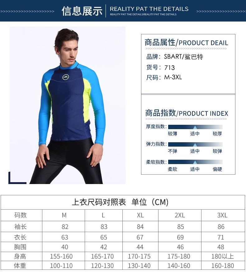 Traje de buceo sbart shark Bart, traje de baño de manga larga, protector solar, traje de medusas, traje de snorkel para hombre, traje de surf, top