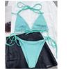 Bikini de color sólido dividido para mujer, traje de baño de vacaciones ajustado con pecho pequeño, estilo Spice Girls, sexy, 2023