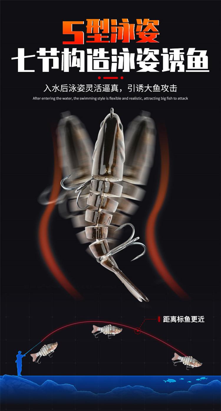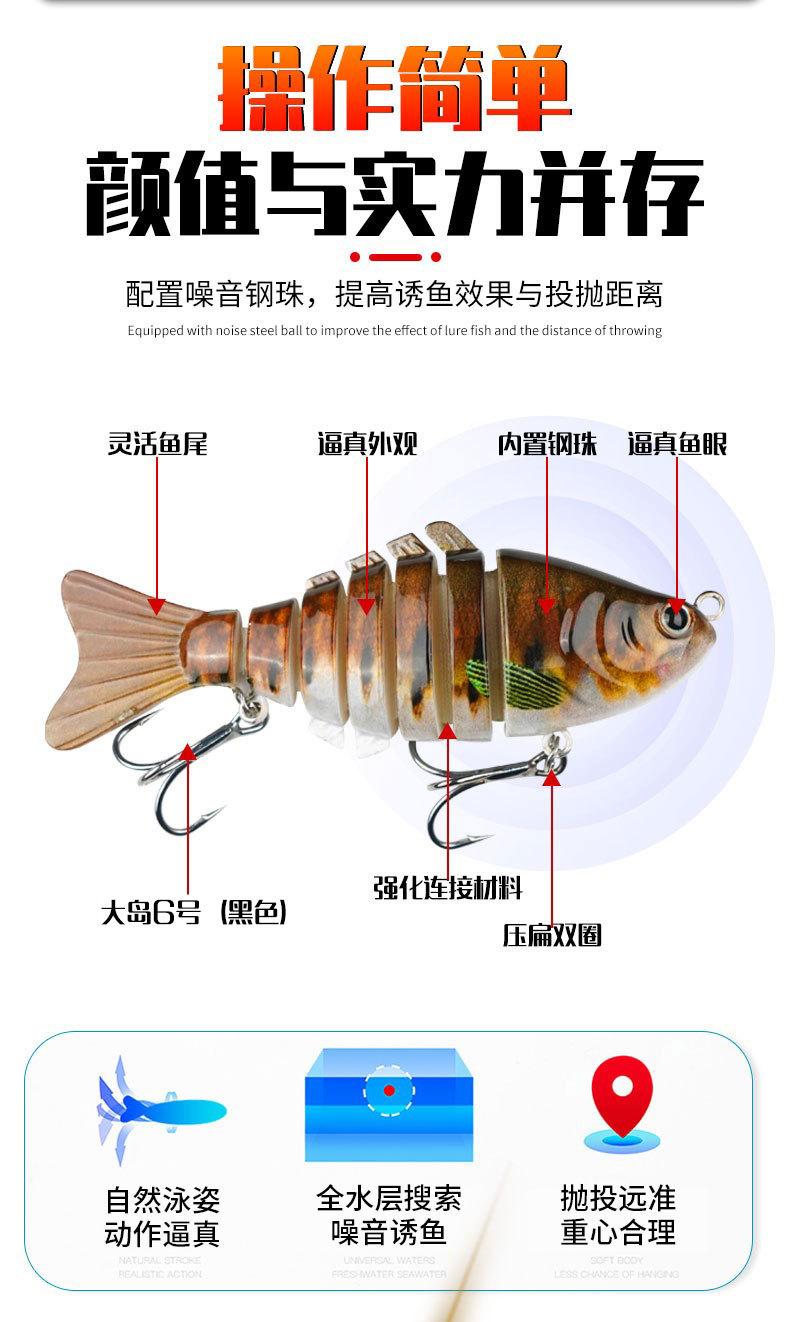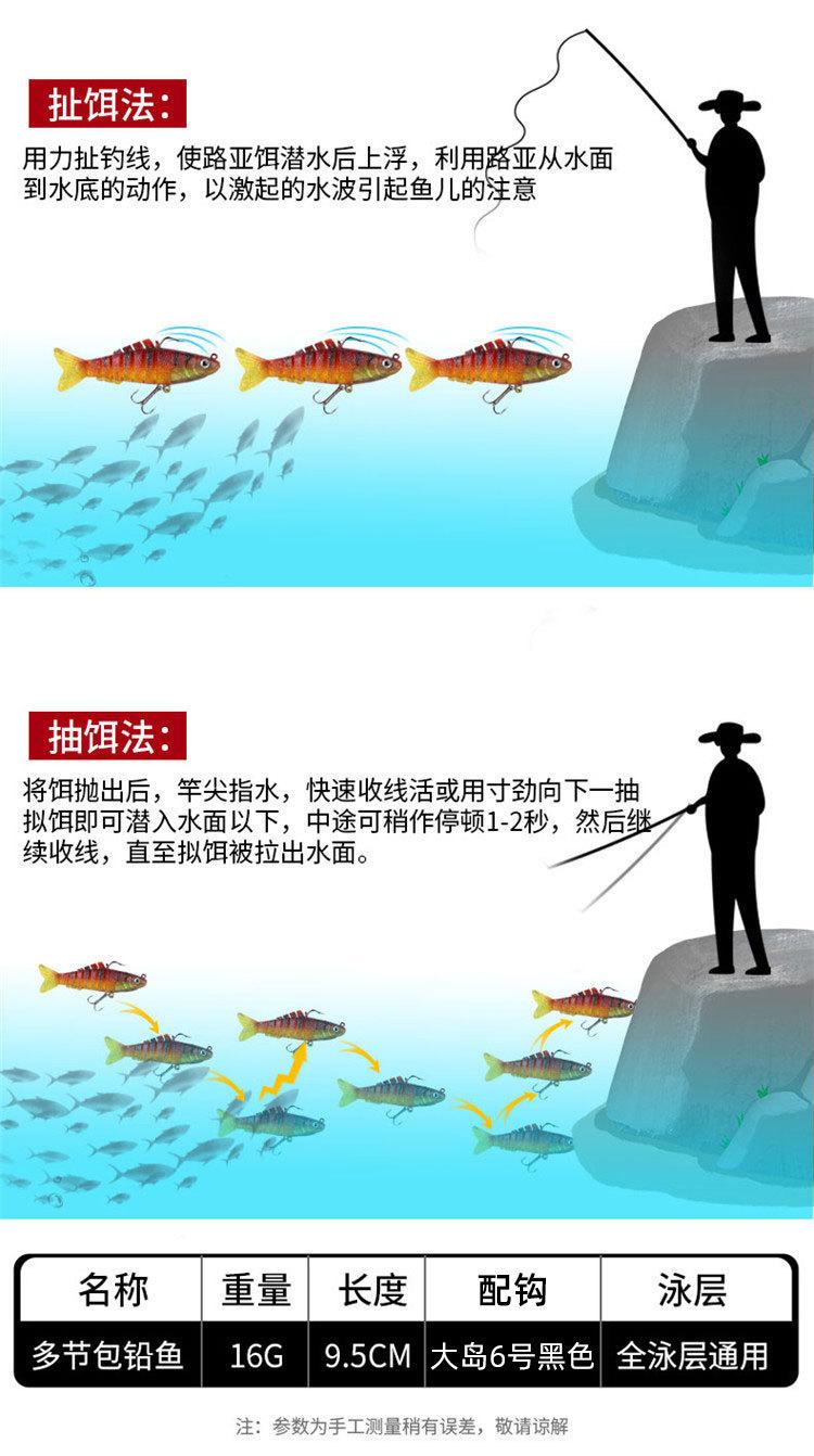 Luya - Cebo falso de 7 secciones, 16 g, 9,5 cm, con capa de natación completa y cuentas para lubina