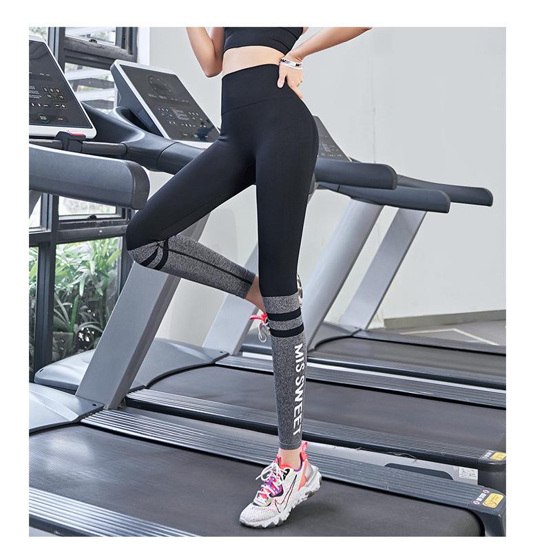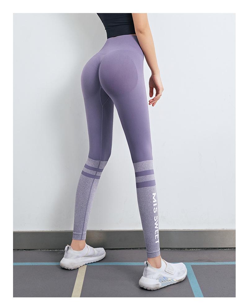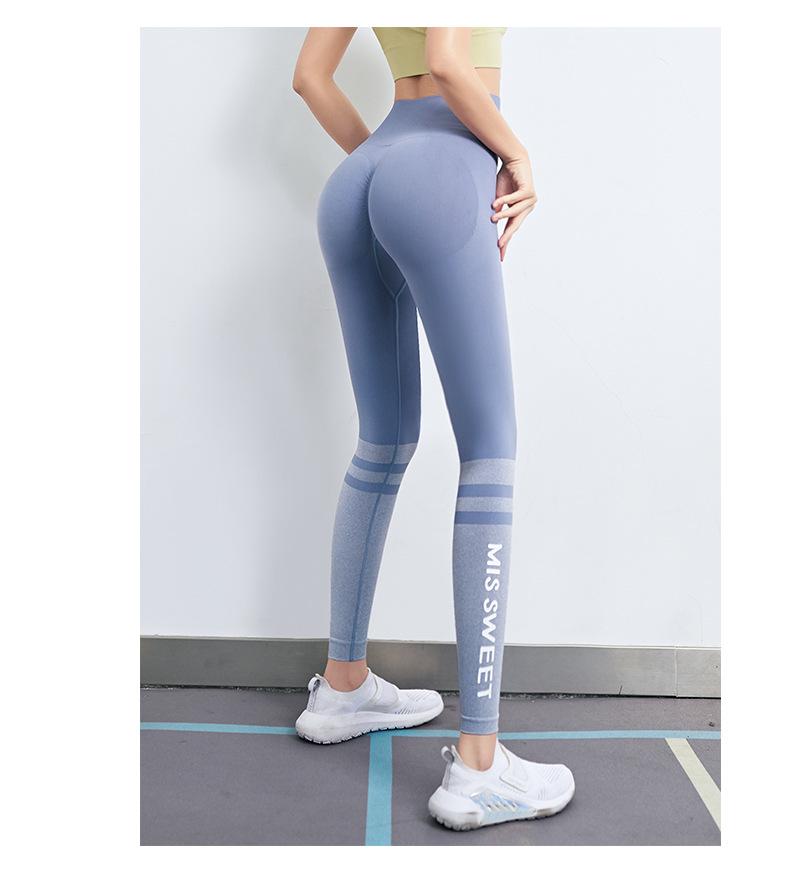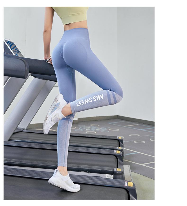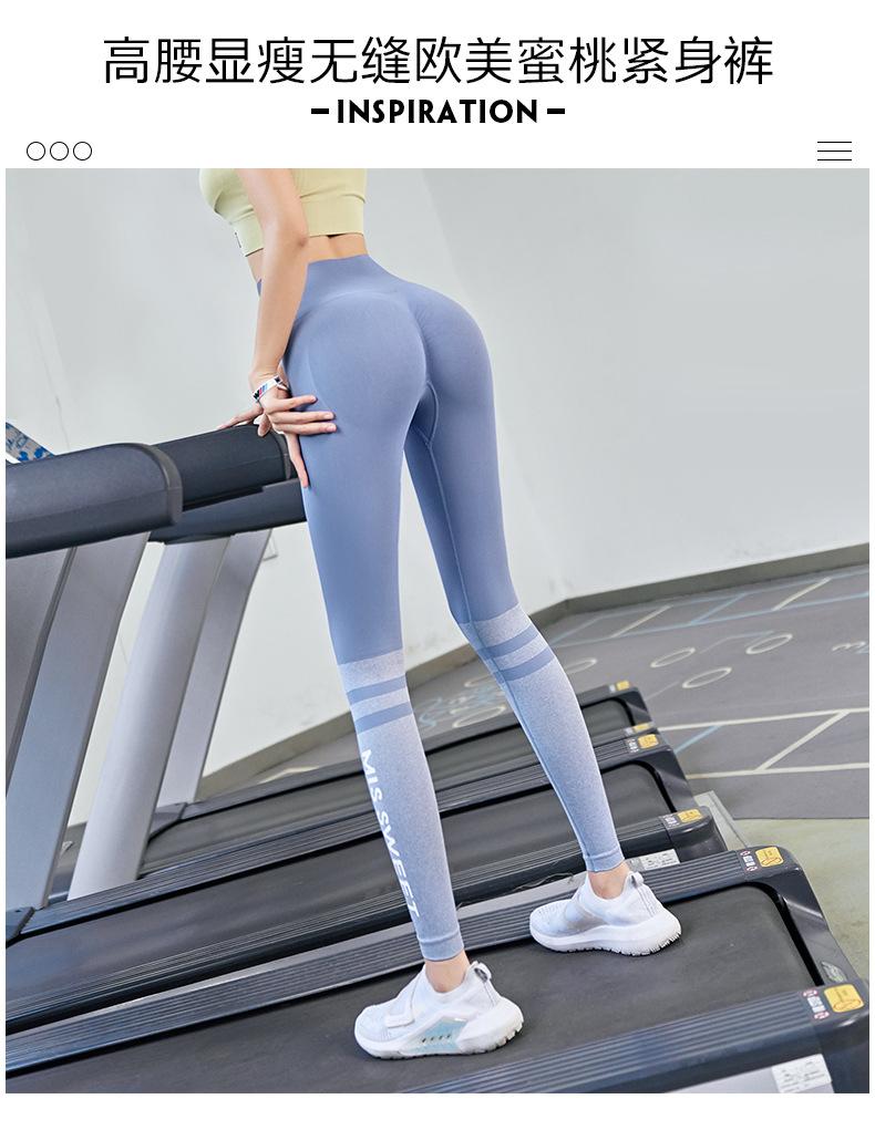 Pantalones de fitness de cintura alta y secado rápido para mujer, con letras en color melocotón, ajustados, elásticos, transpirables, para correr, primavera y verano.