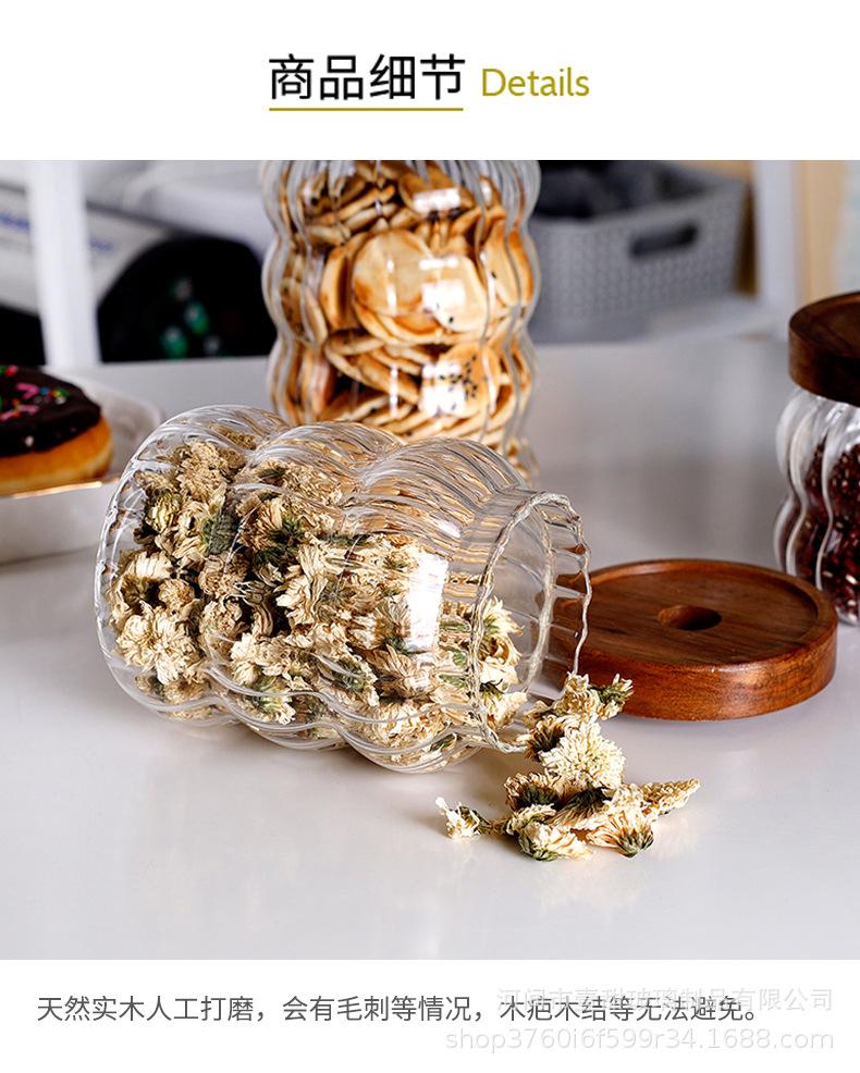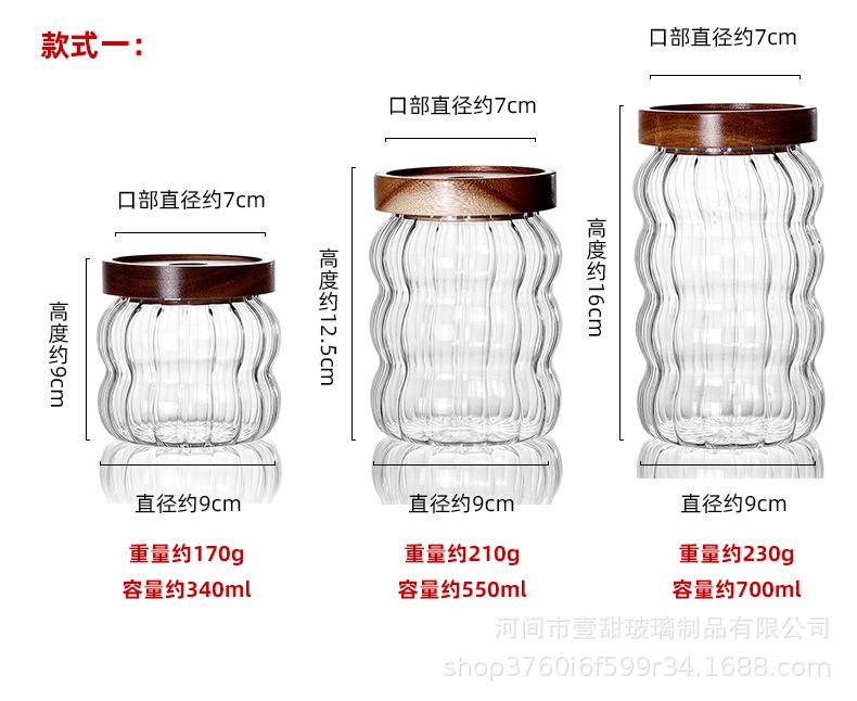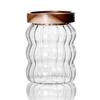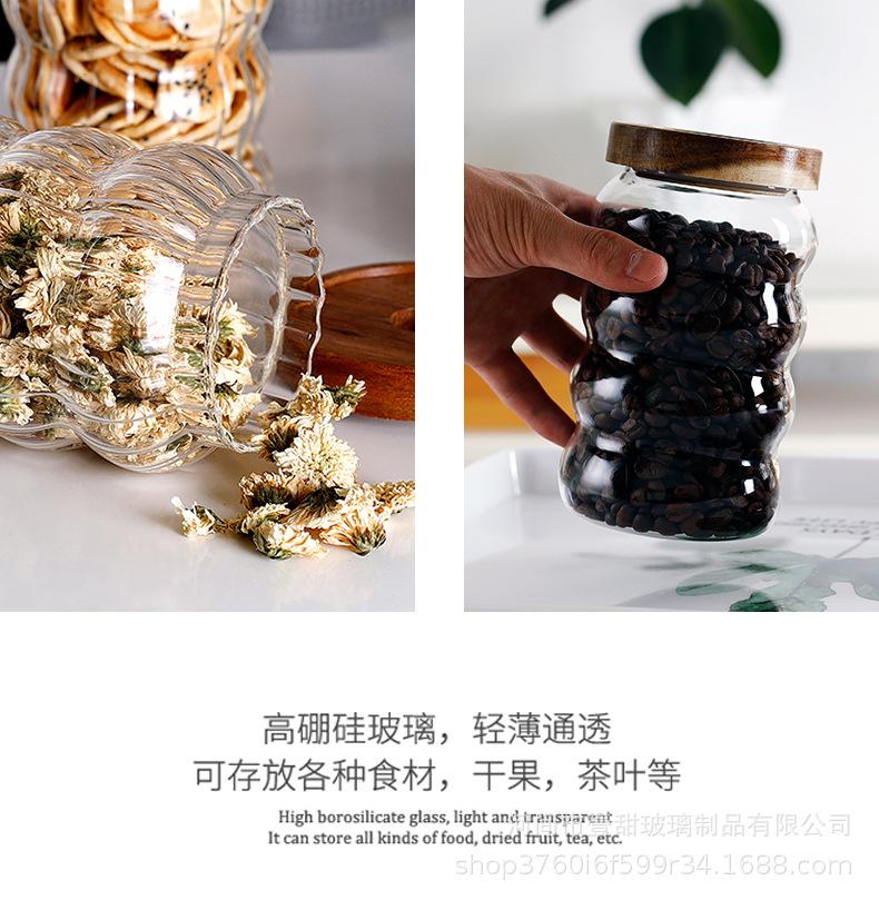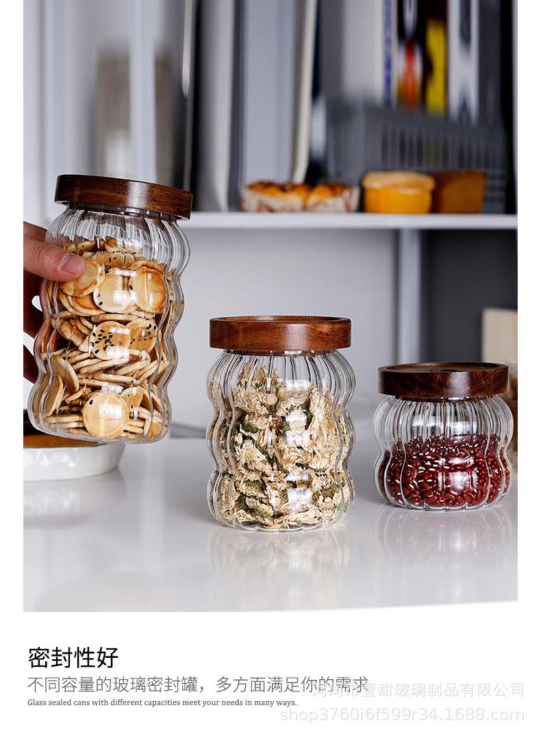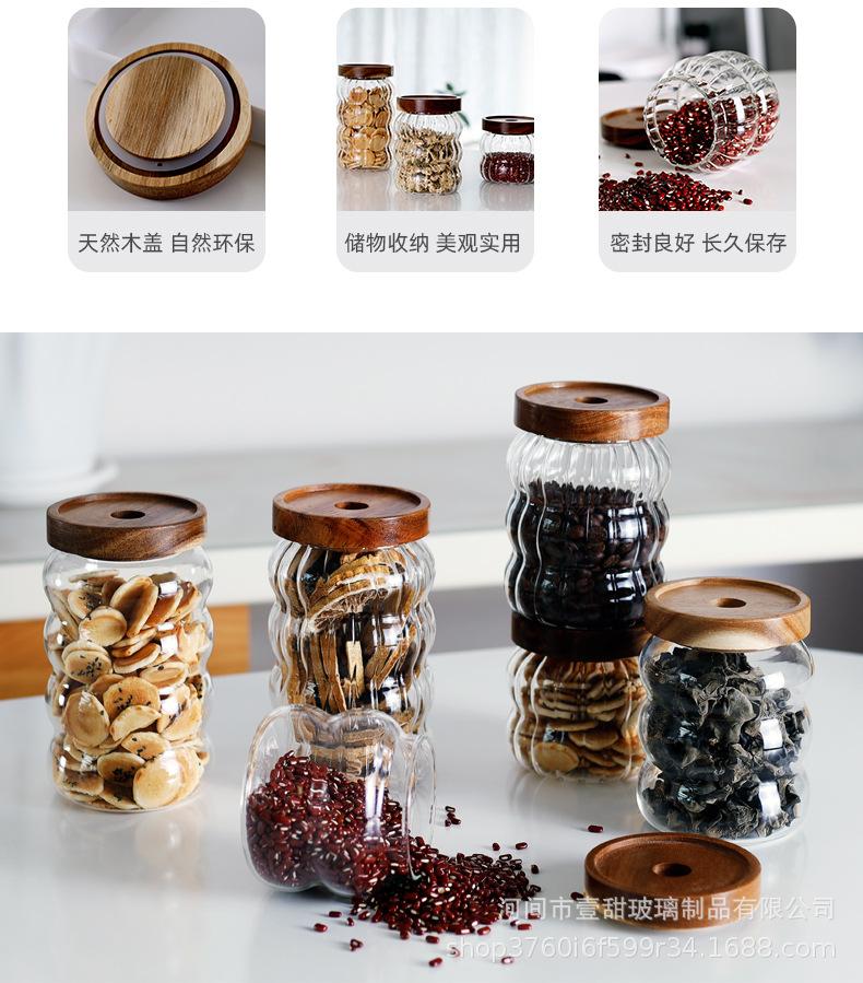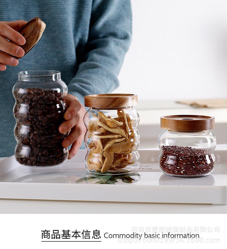 Tarro de vidrio rayado sellado con tapa de madera de acacia, tarro de almacenamiento transparente, tarro de almacenamiento para café, té y granos de café.