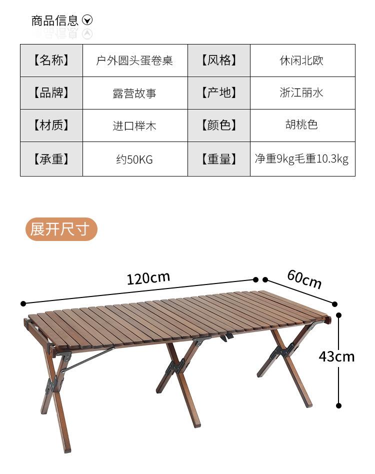 Mesa plegable para exteriores con forma de rollo de huevo, mesa de picnic para acampar, mesa de barbacoa multiusos para exteriores, nueva mesa redonda