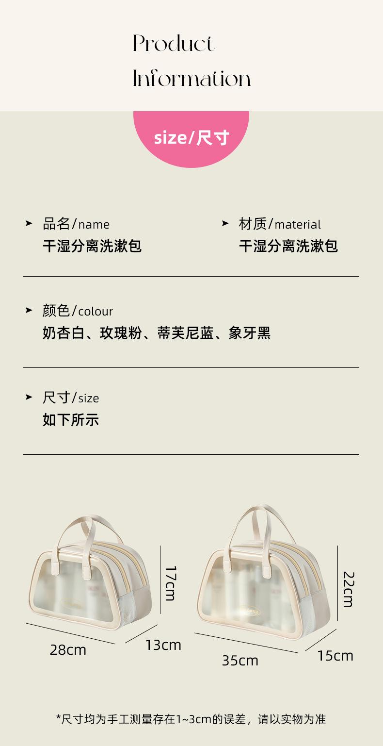 Nueva bolsa de lavado de viaje con separación húmeda y seca, portátil, de gran capacidad, para cosméticos, para natación y fitness.