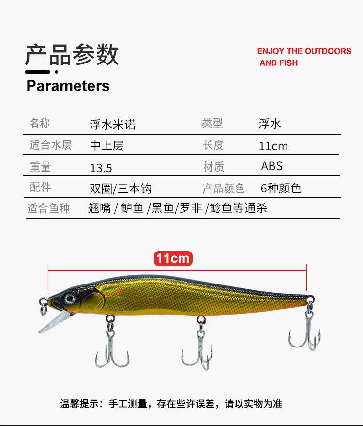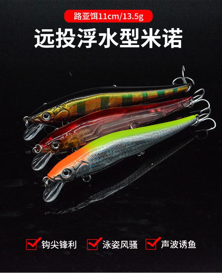 Cebo Luya remoto transfronterizo de 13,5 g y 11 cm, flotante, con tres anzuelos, cebo falso mino, para perca de agua dulce.