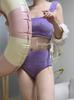 Multicolor] Traje de baño de dos piezas de color sólido estilo nuevo deseo puro japonés y coreano para niña, bikini femenino estilo ins, bikini para vacaciones