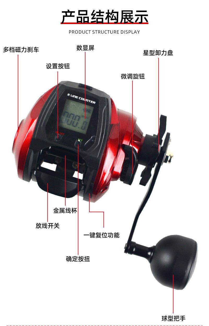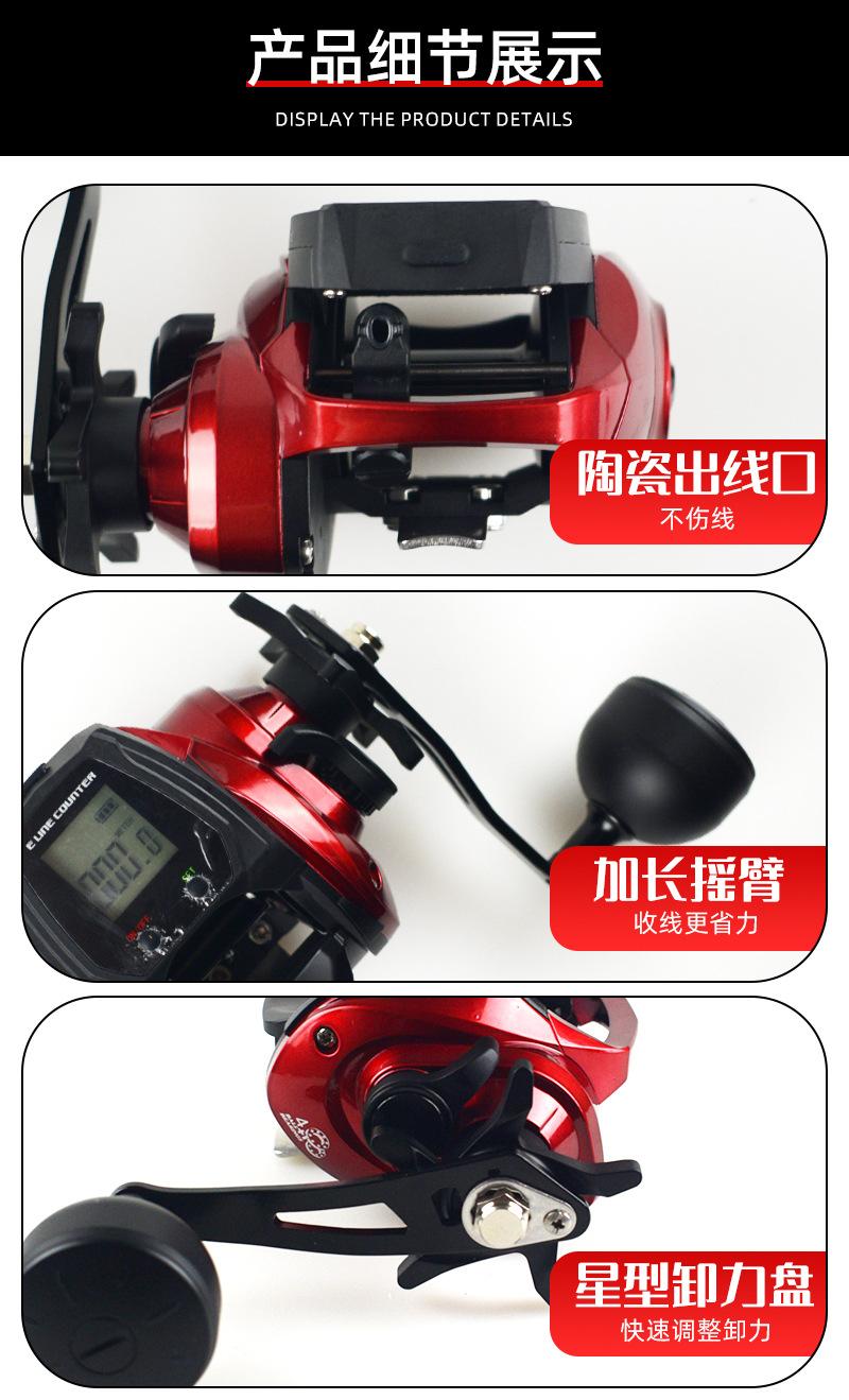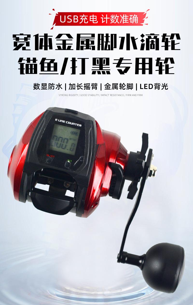 Rueda de pesca con forma de gota de agua y pantalla digital de cuerpo ancho transfronterizo, rueda de pesca con ancla especial negra Luya, carrete de pesca de acero inoxidable resistente al agua, venta al por mayor