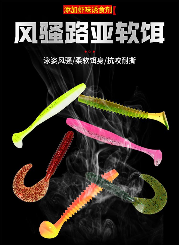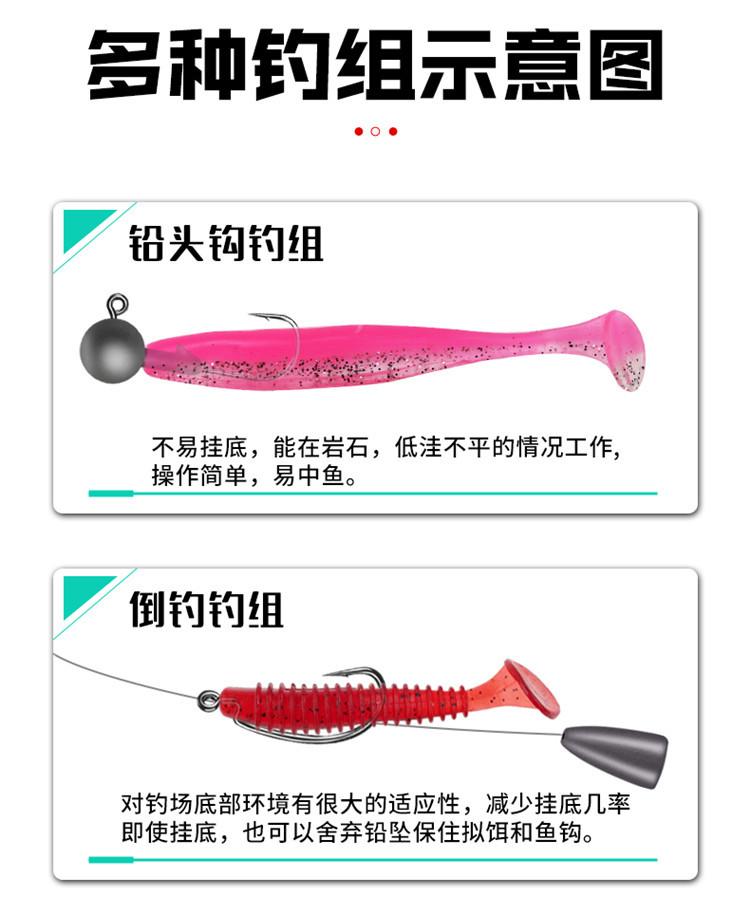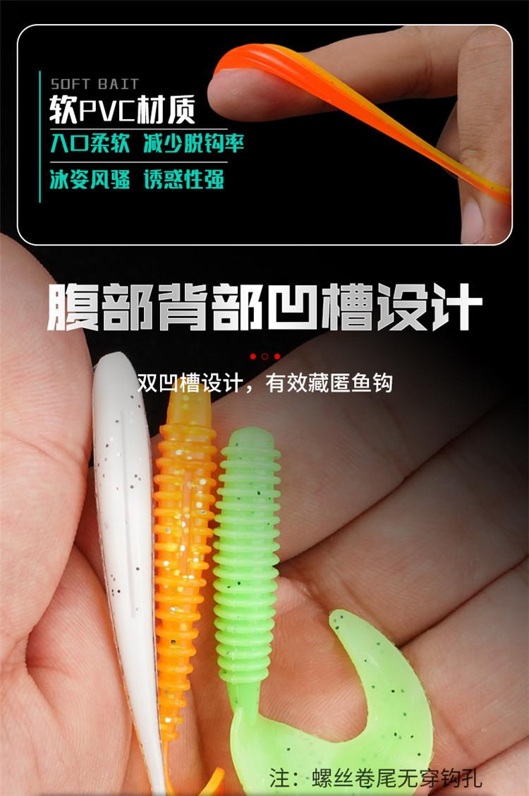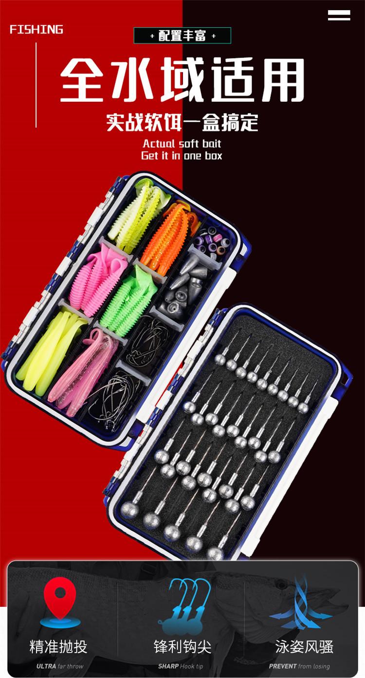 Cola en T en caja, gusanos de cola rodante, cebo Luya, capa de agua llena, cebo blando, cebo falso, anzuelo de manivela, anzuelo de cabeza de plomo, traje de fondo anti-colgantes