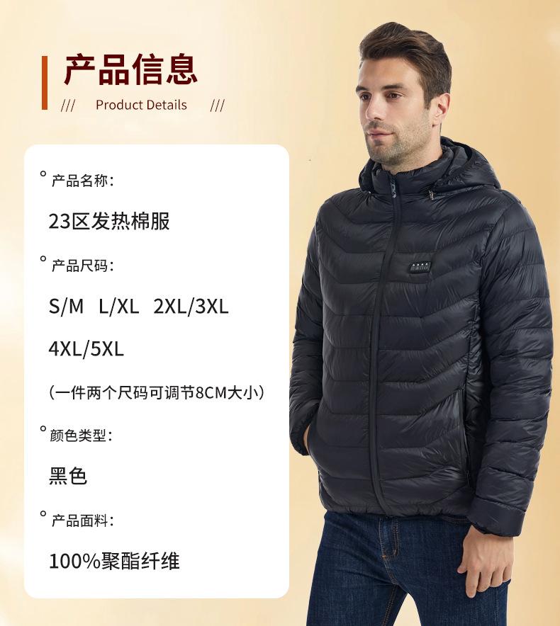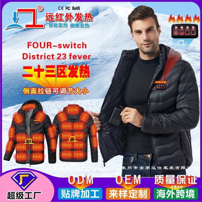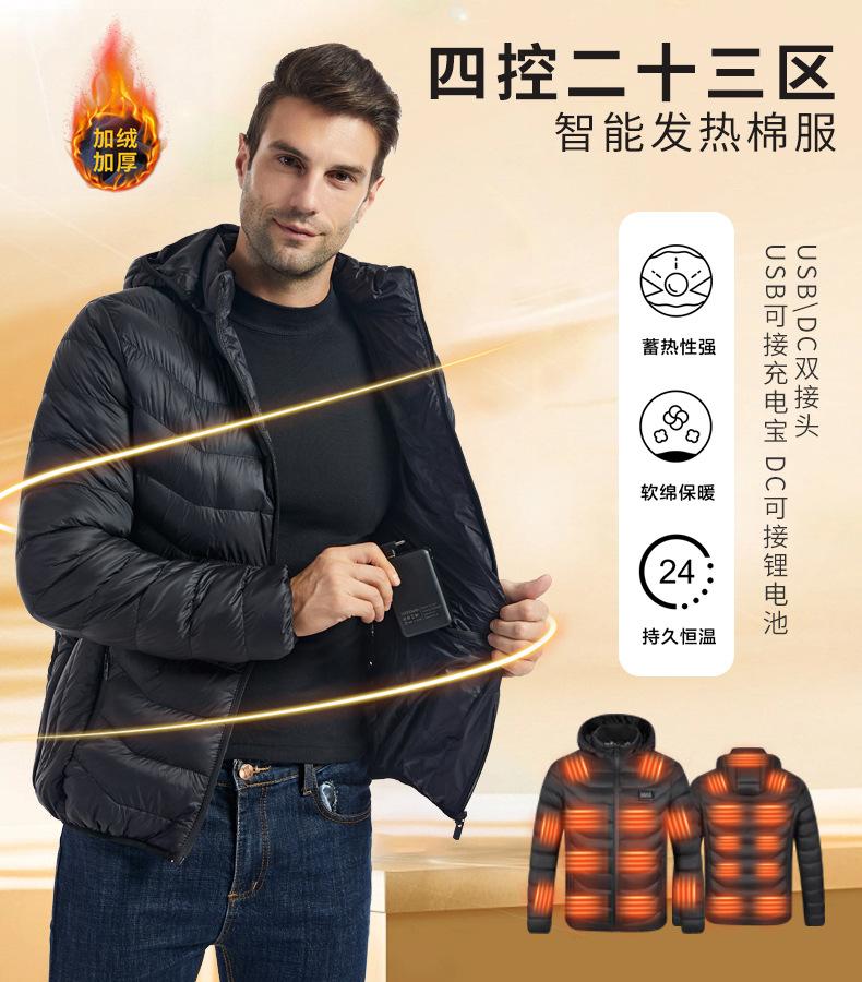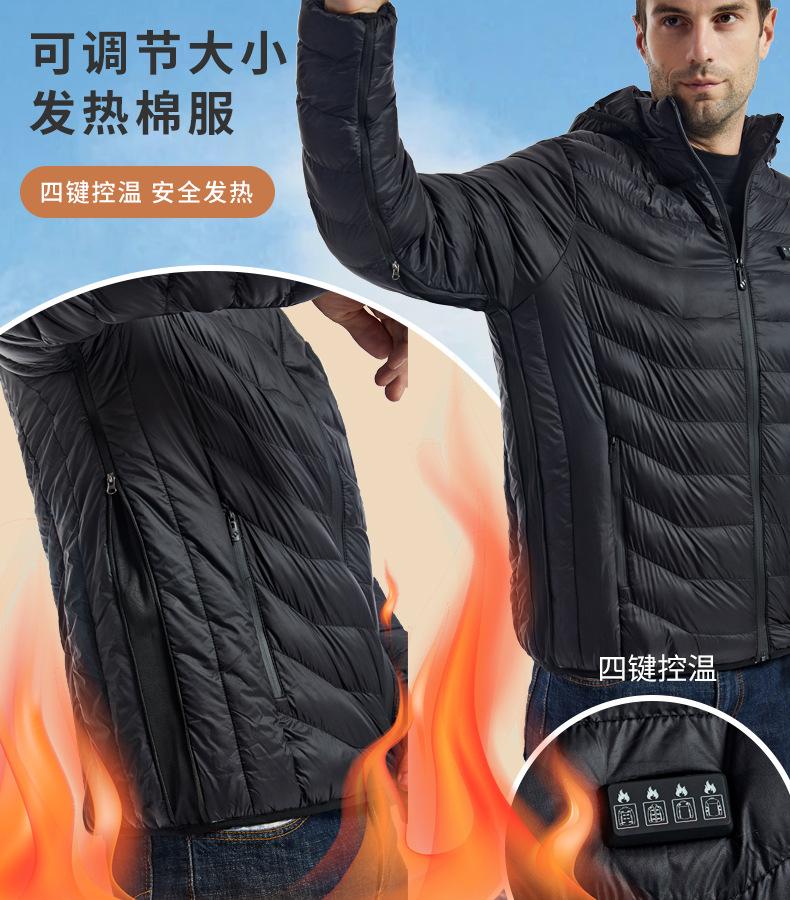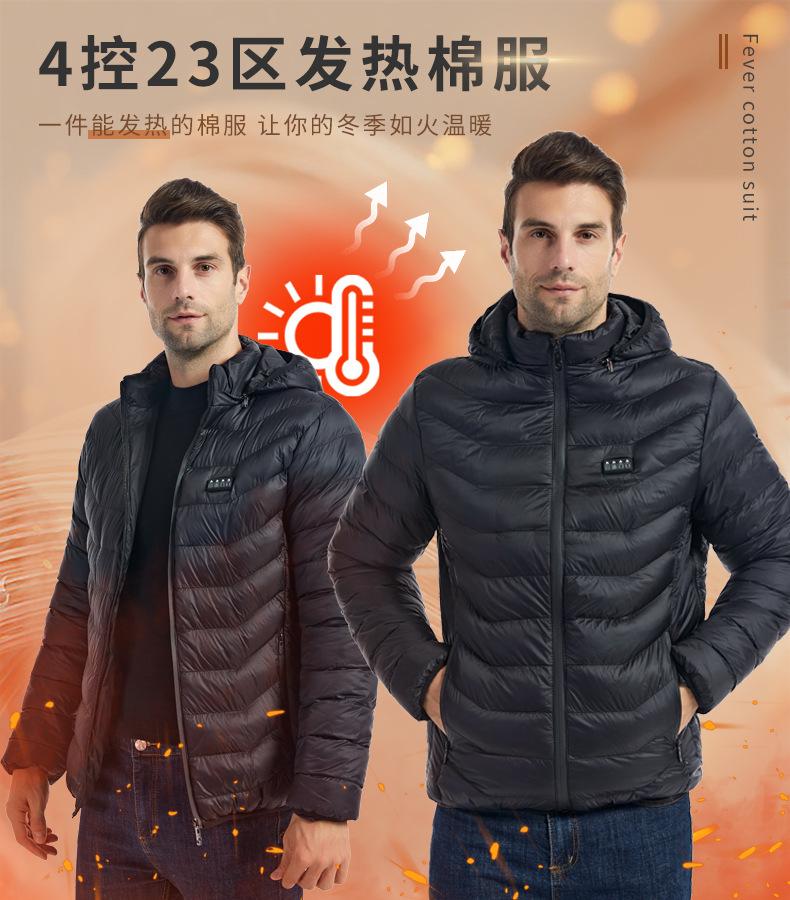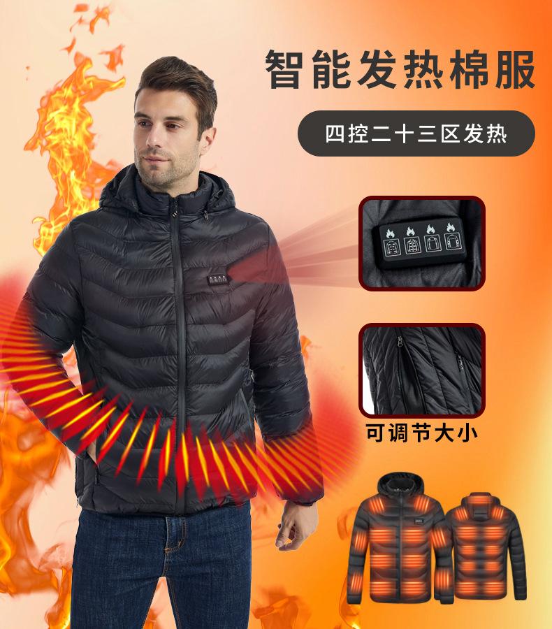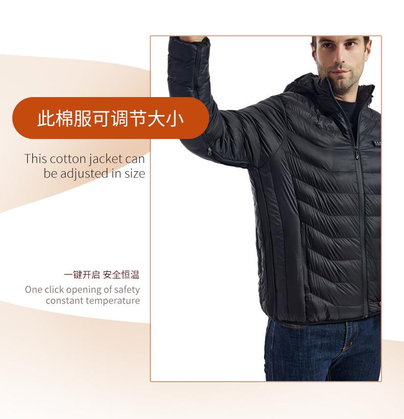 Chaqueta acolchada de algodón con calefacción transfronteriza, con capucha, inteligente, de talla ajustable, eléctrica y a temperatura constante.