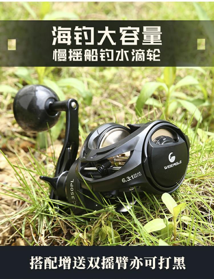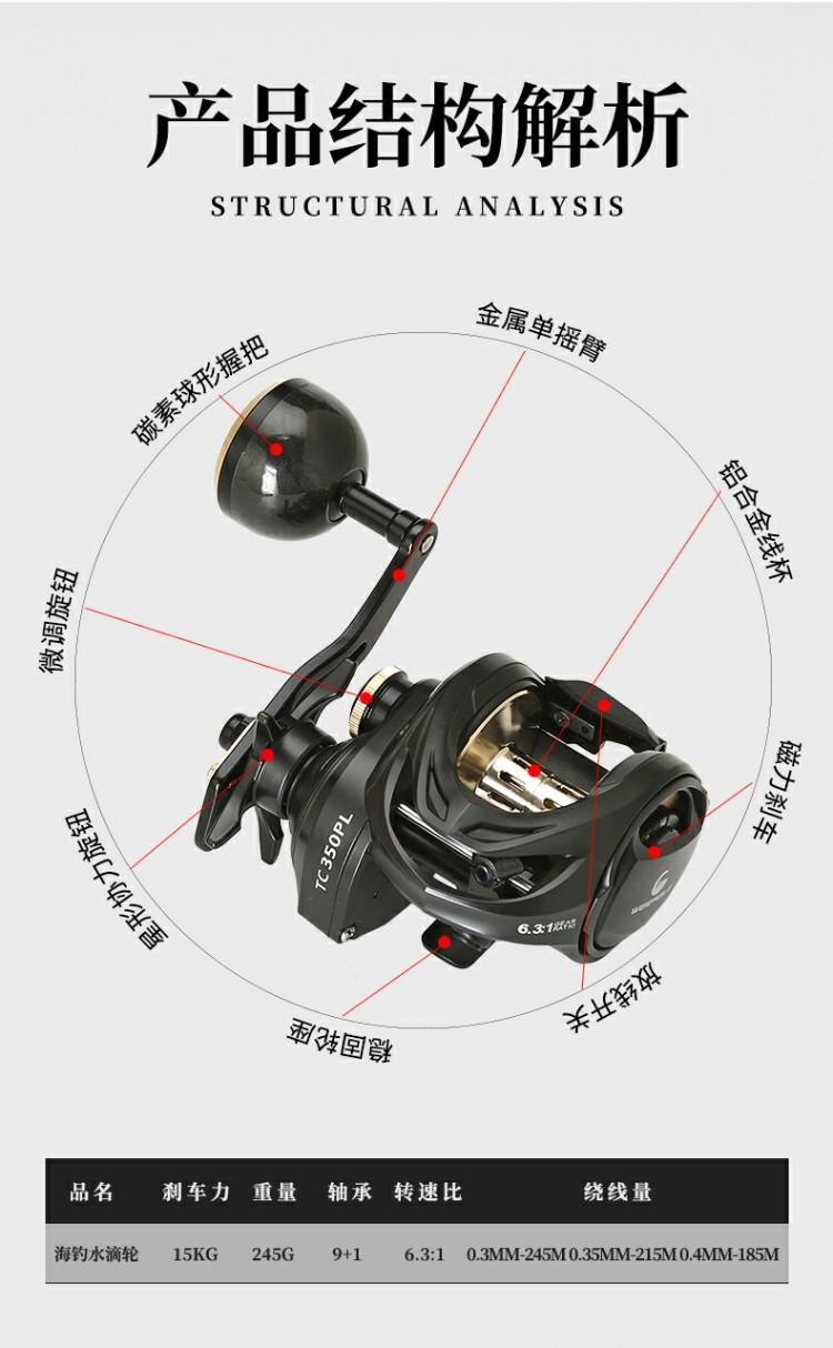 Carrete de goteo para pesca en barco de altura en alta mar anti agua de mar transfronterizo, carrete Luya de largo alcance, carrete de pesca marítima, carrete de placa de hierro, carrete de balanceo lento, carrete de pesca negro