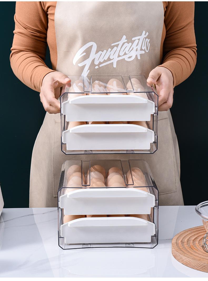 Nueva Caja de Huevos Apilable con Cajón Transparente para Refrigerador, Caja de Almacenamiento Fresco, Cocina, Caja Clasificable de Huevos de Doble Capa, Bandejas para Huevos