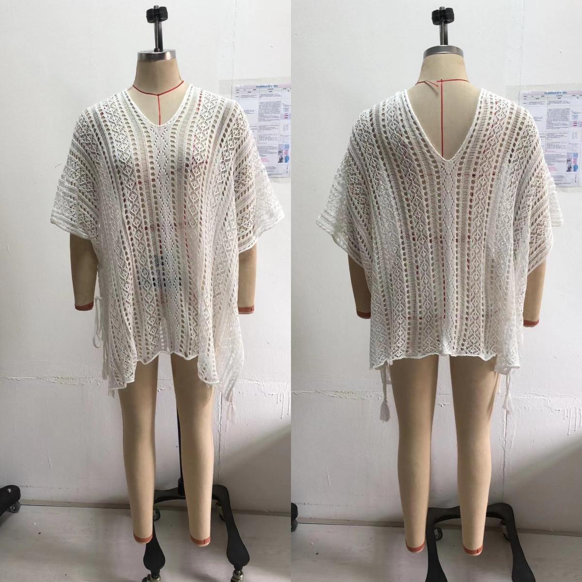 Vestido de playa transfronterizo nuevo 2024, vestido hueco ondulado con escote en V profundo y cintura elástica, superventas en Amazon.