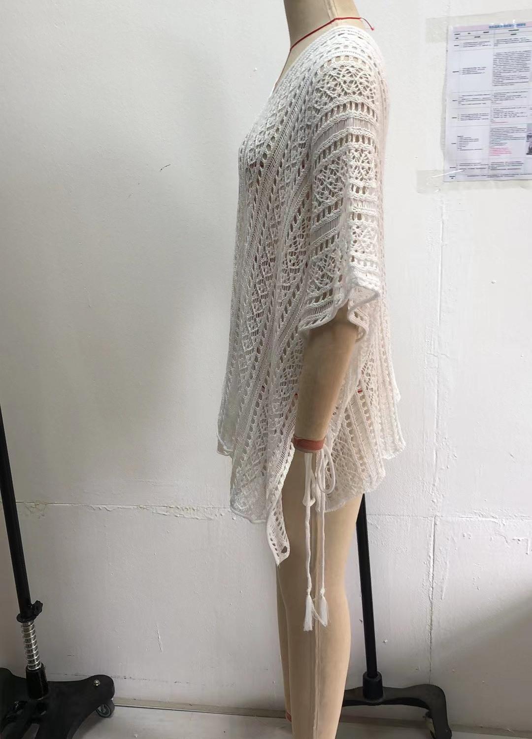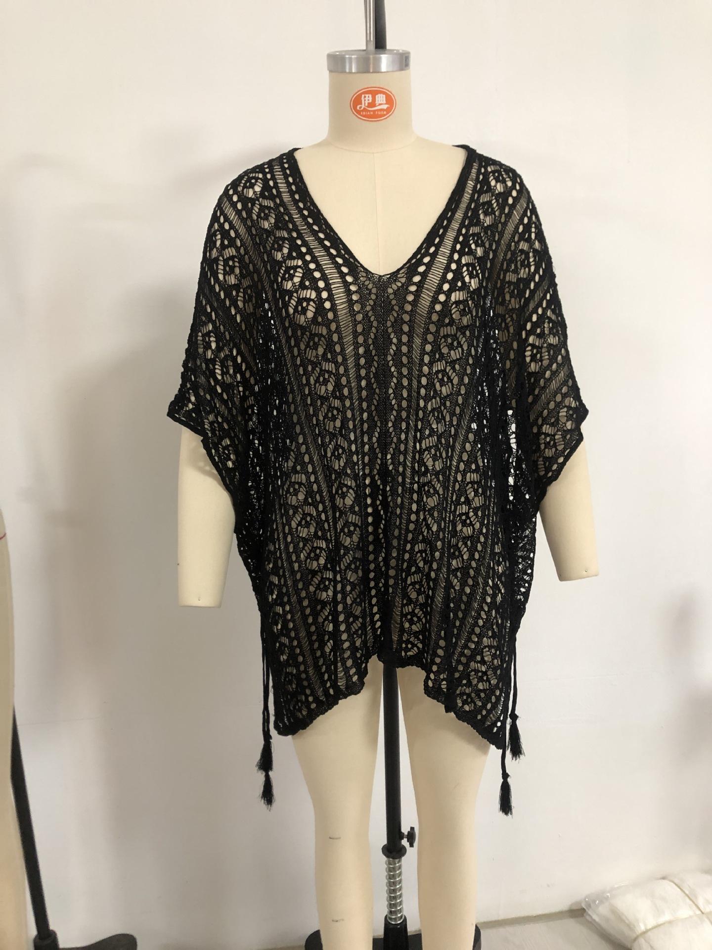 Nuevo Bikini de Vacaciones Caliente Transfronterizo Estilo Ins Tejido Suelto con Tirantes Borlas Traje de Baño Blusa de Playa