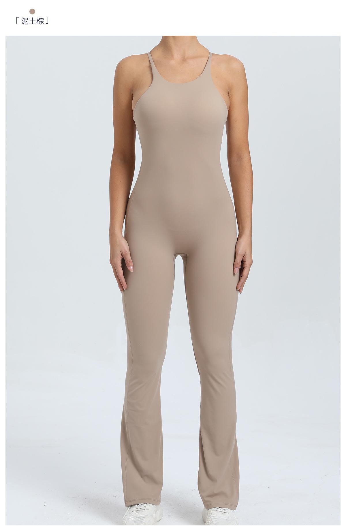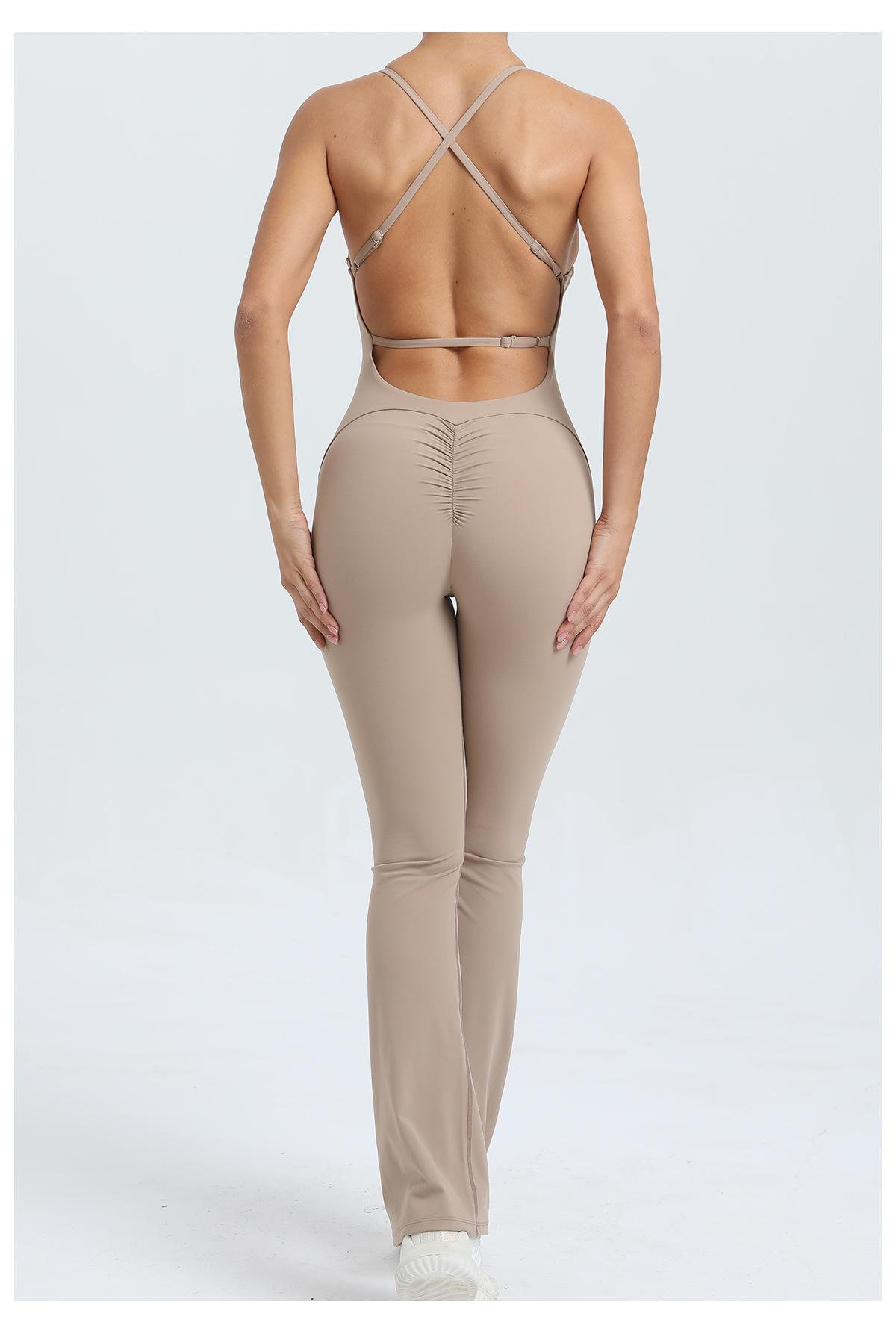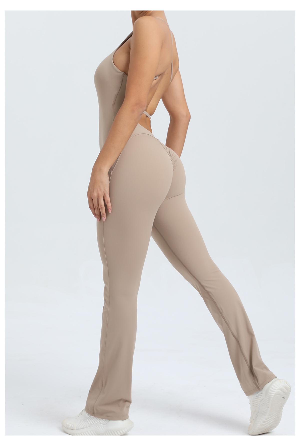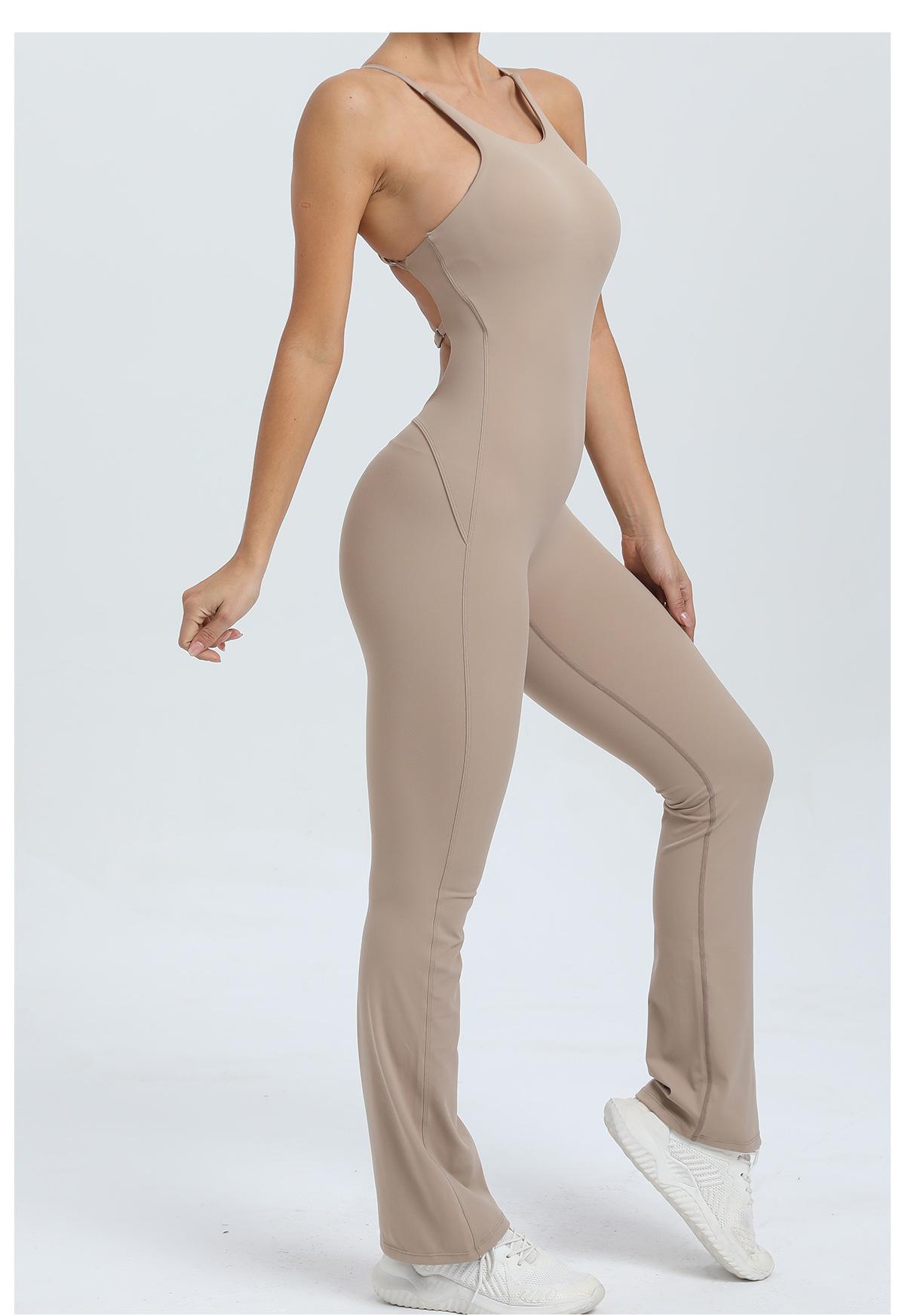 Mono deportivo con tirantes ajustables y espalda descubierta, color miel, melocotón, para fitness y yoga.