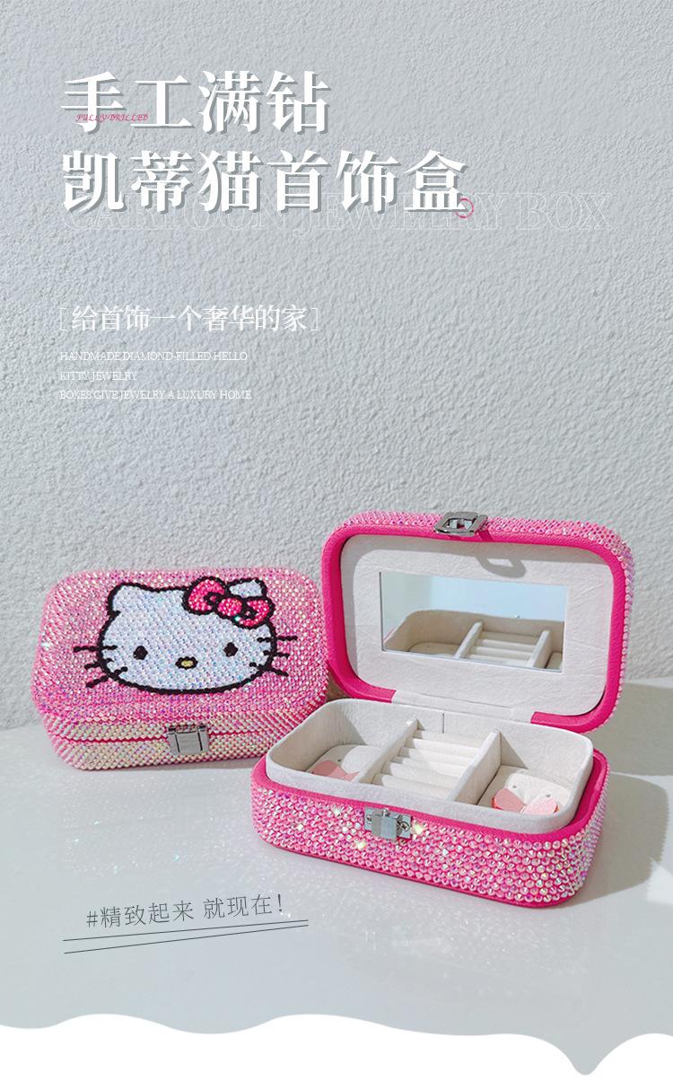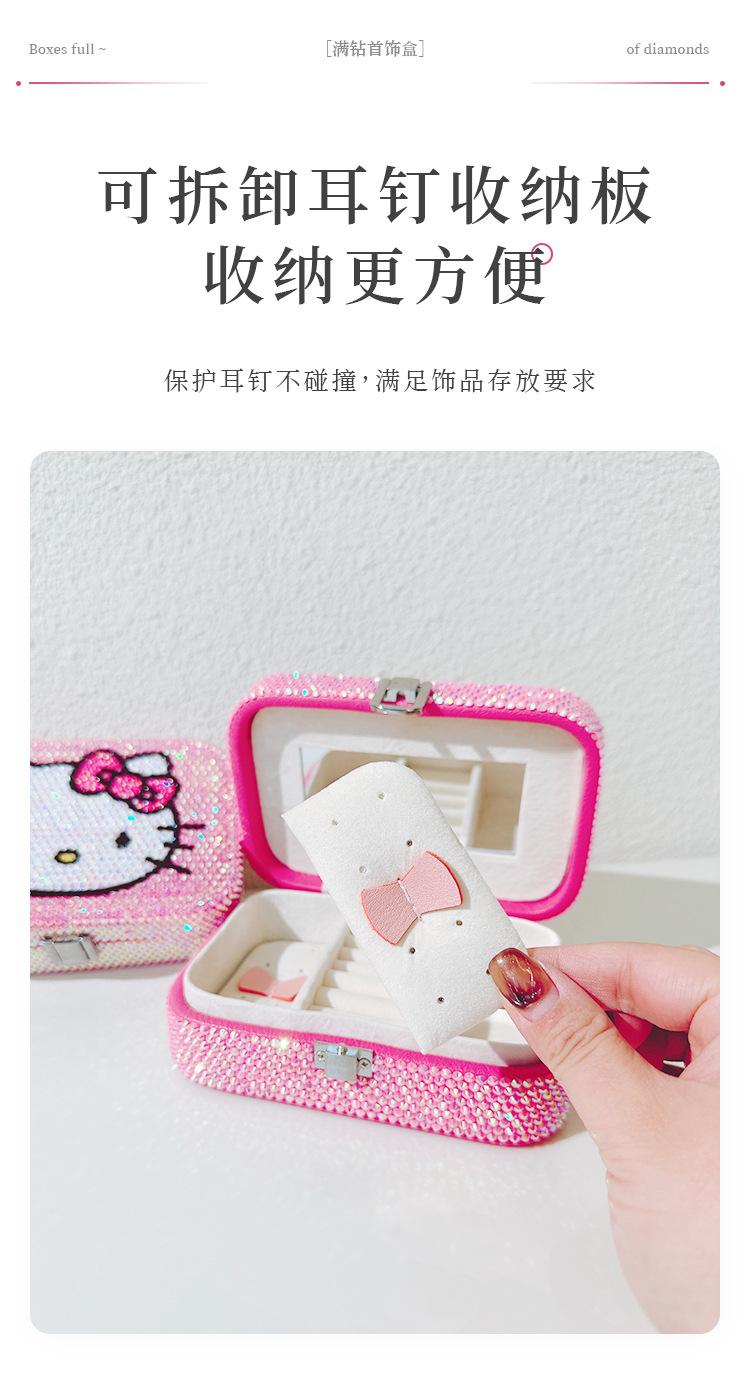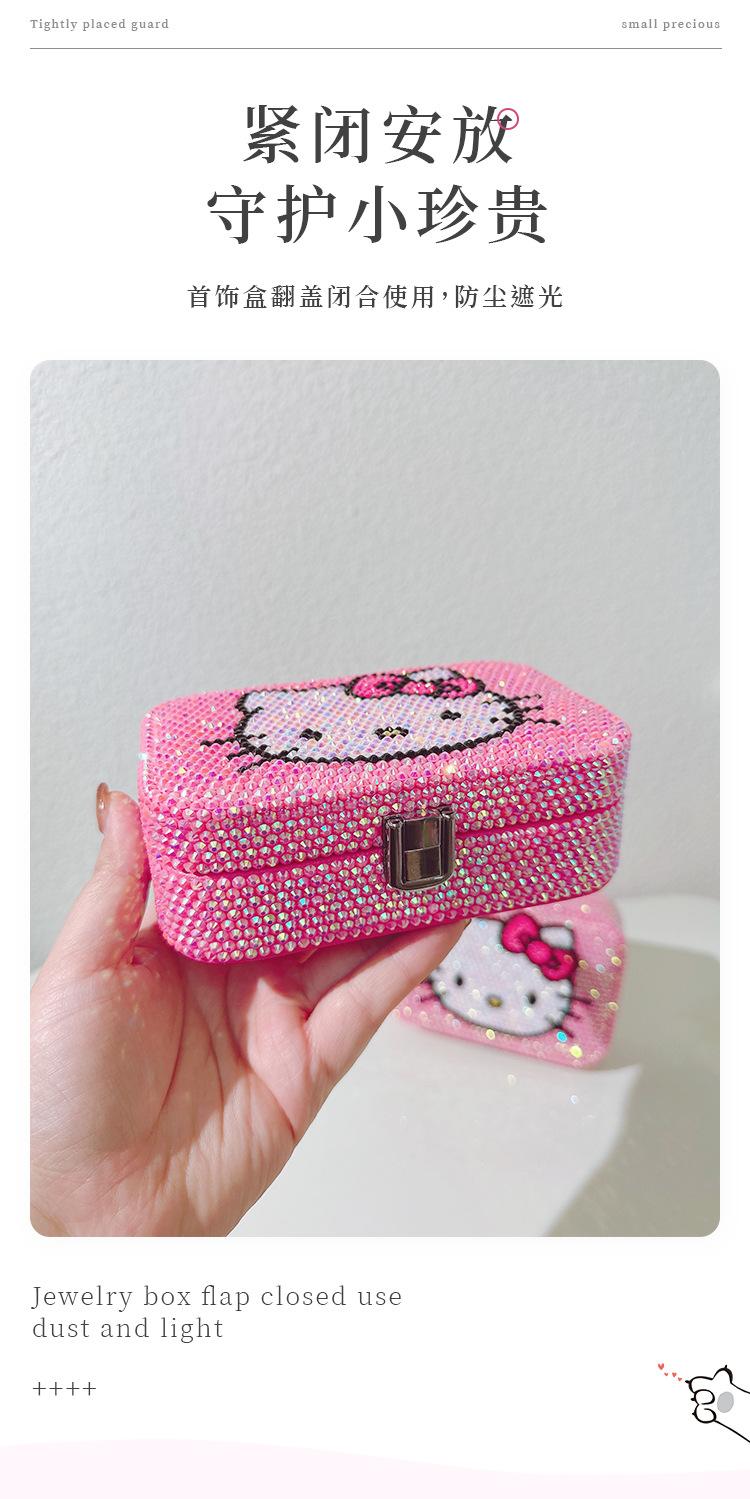 Joyero de dibujos animados kt con diamantes de imitación y gato, bonito bolso para guardar pendientes, collares y cajas de almacenamiento, joyero completo de princesa.