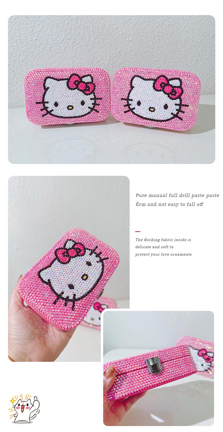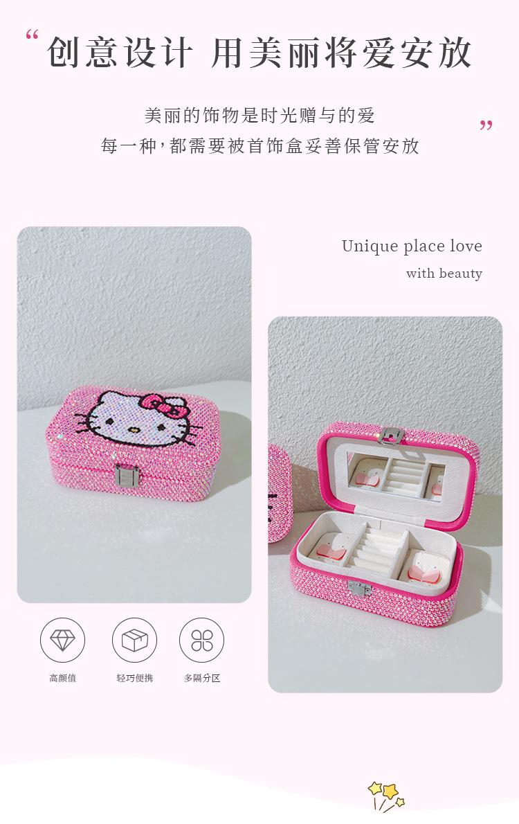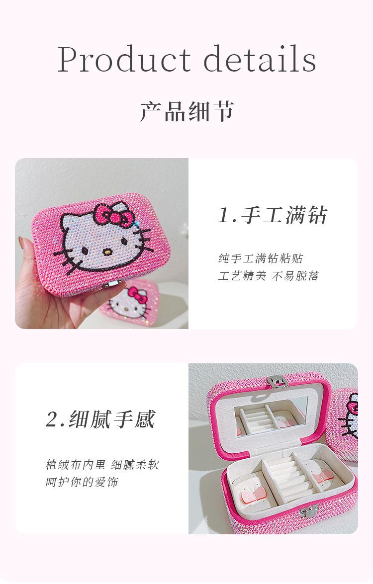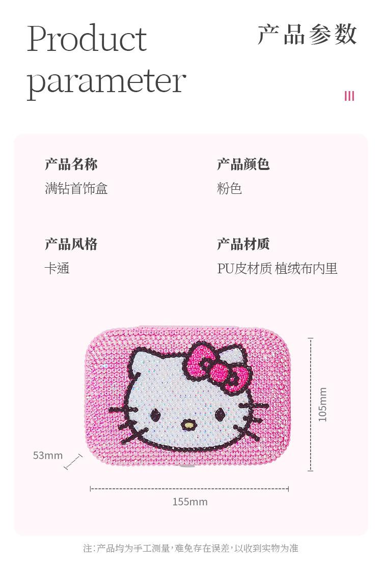 Joyero de dibujos animados kt con diamantes de imitación y gato, bonito bolso para guardar pendientes, collares y cajas de almacenamiento, joyero completo de princesa.
