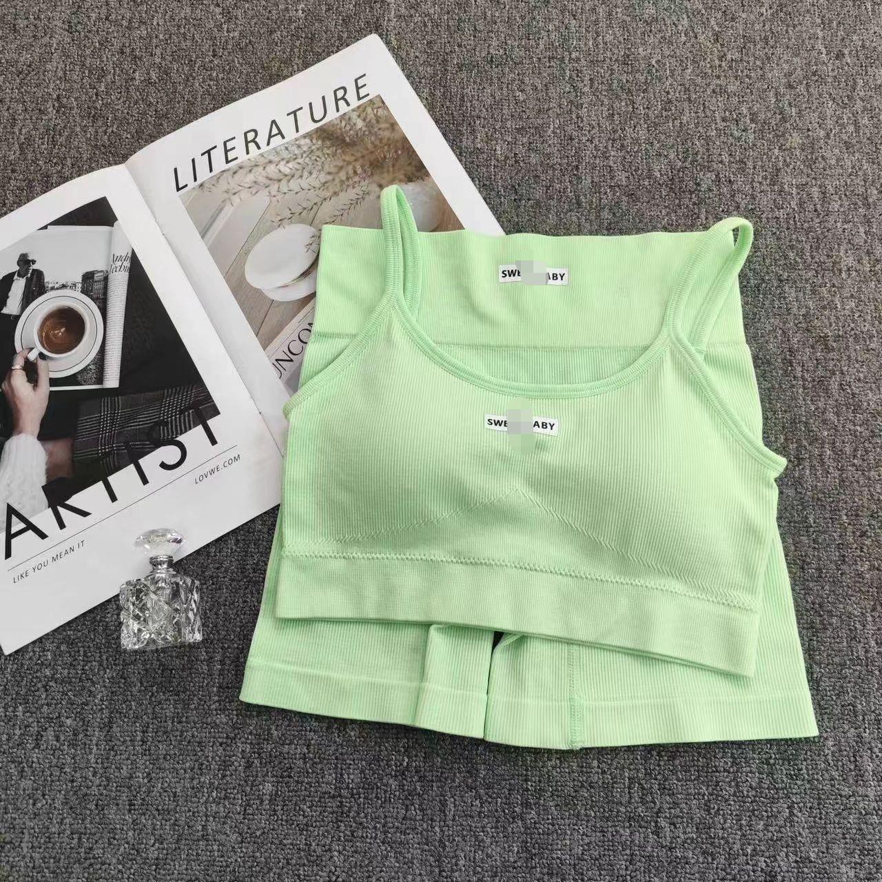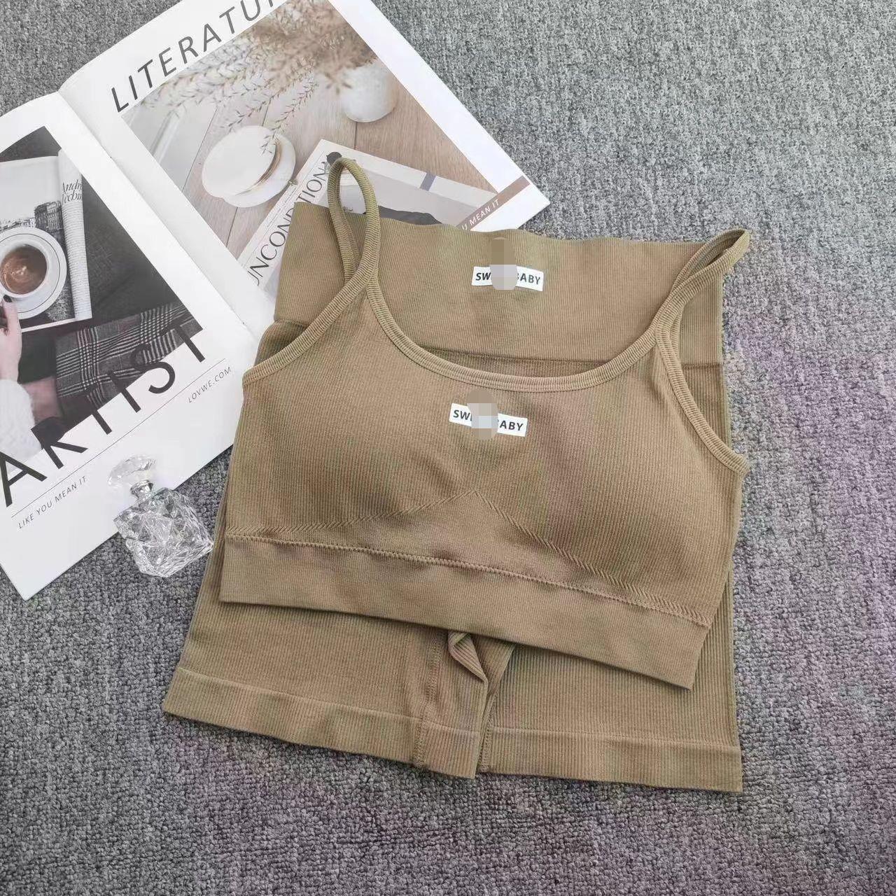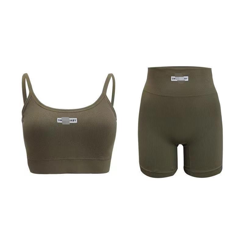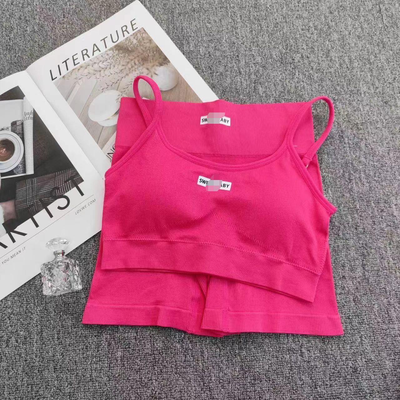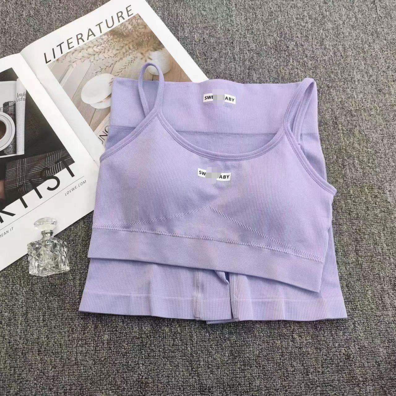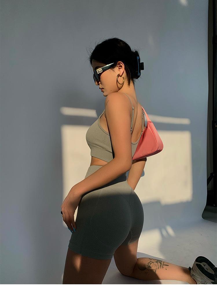 Nuevo Traje de Yoga Melocotón de Cintura Alta Europeo y Americano para Mujer Sujetador Deportivo de Espalda Descubierta Traje de Fitness Ropa Deportiva de Alta Elasticidad