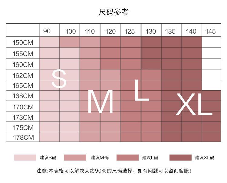S (recommendation 40-47.5kg ), M (recommended 47.5-55kg ), L (recommended 55-62.5kg ), Xl (recommended 62.5-70kg )