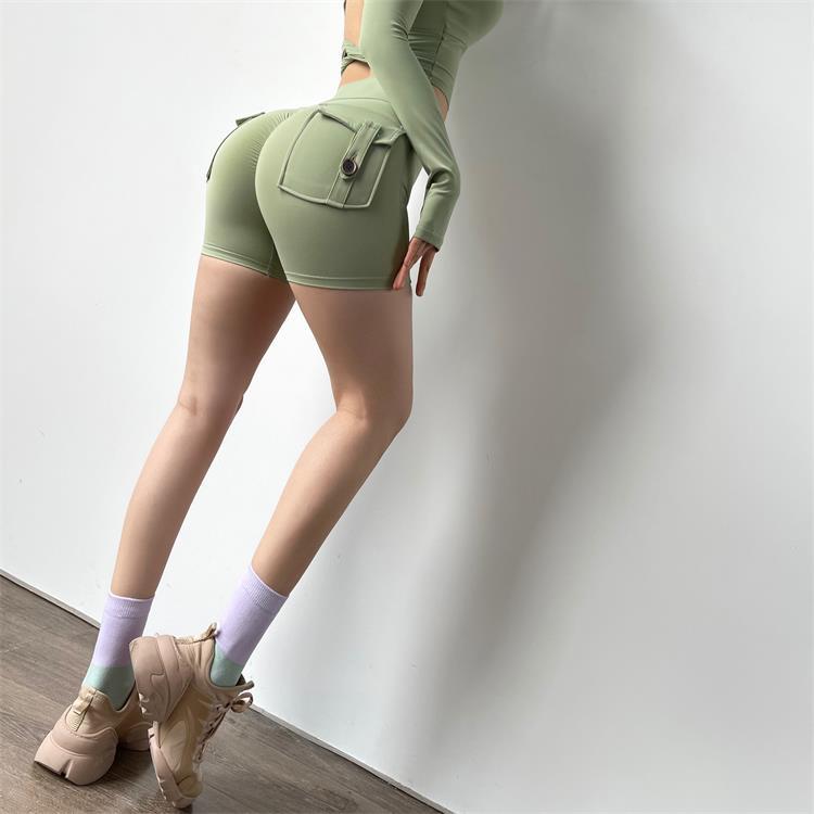 Shorts ajustados de trabajo color durazno para mujer, cintura alta, elásticos, sexys, levanta glúteos, pantalones de yoga, secado rápido, pantalones de fitness para correr, primavera