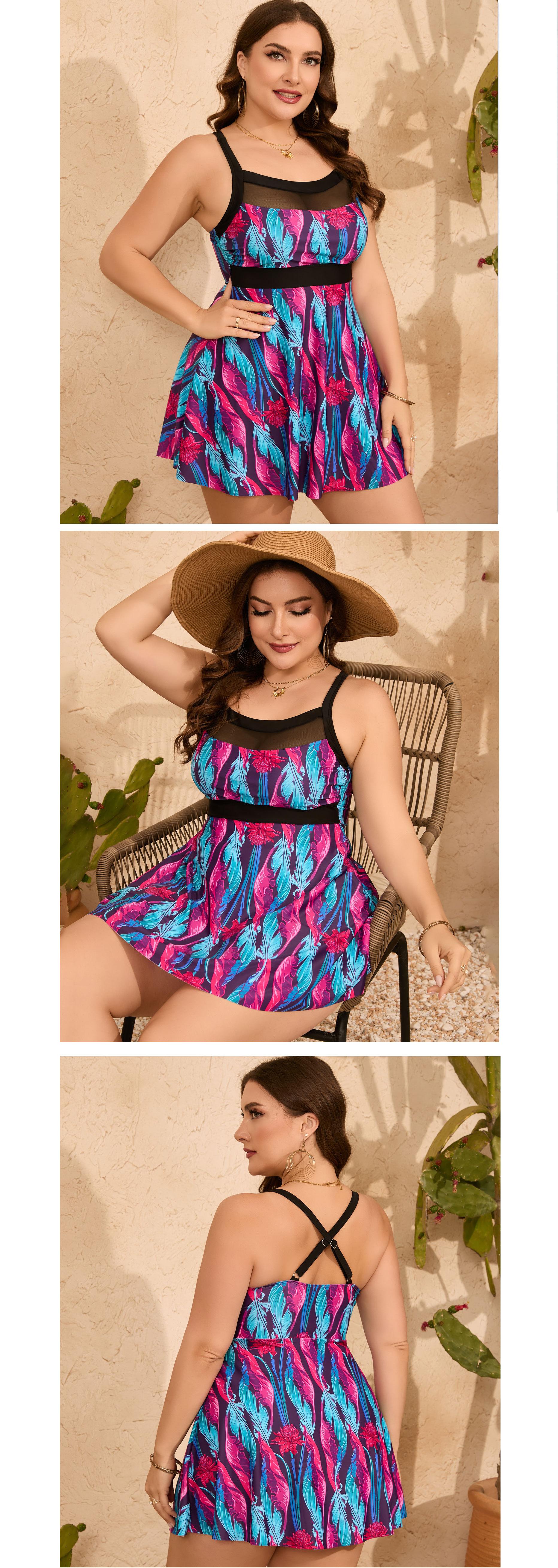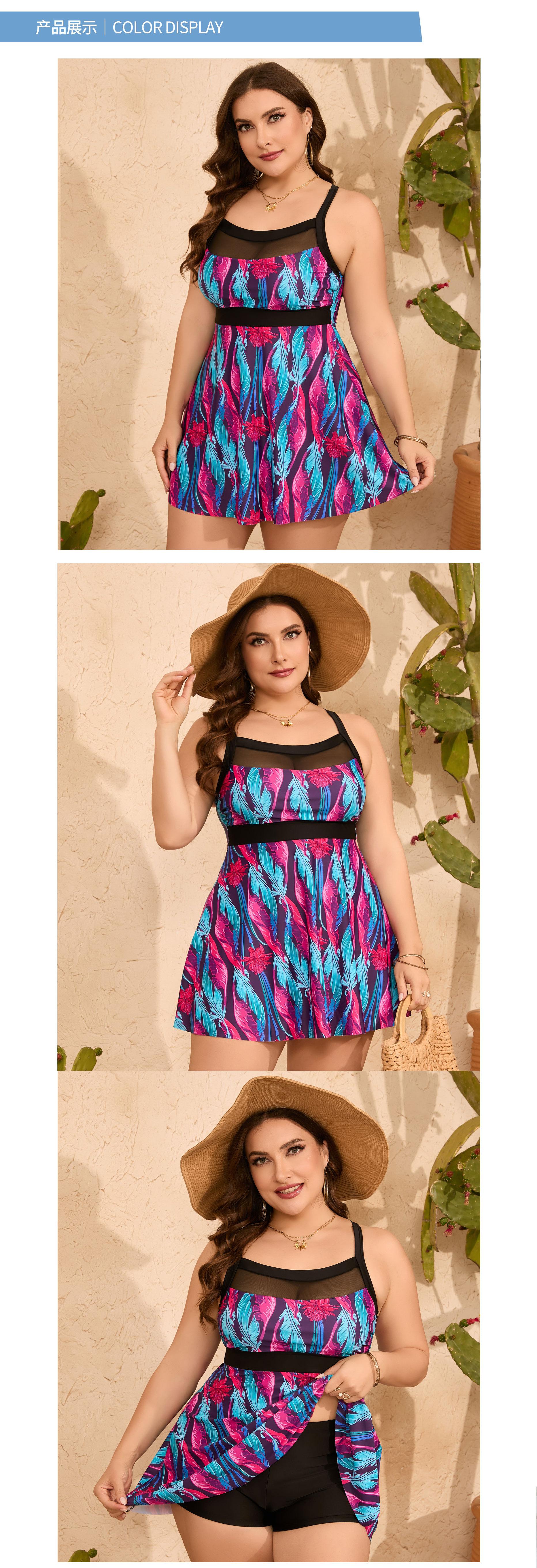 Traje de baño de dos piezas para mujer, estilo europeo y americano, con estampado de costura de malla, tankini dividido de talla grande, gran oferta, 2024