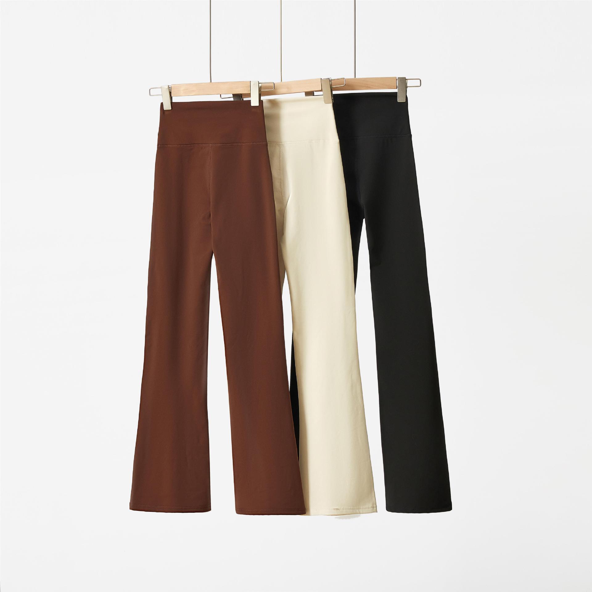 Pantalones acampanados de yoga forrados de felpa sin línea de vergüenza cintura alta deportivos fitness pantalones de pierna ancha ropa exterior pantalones de yoga micro acampanados para mujer
