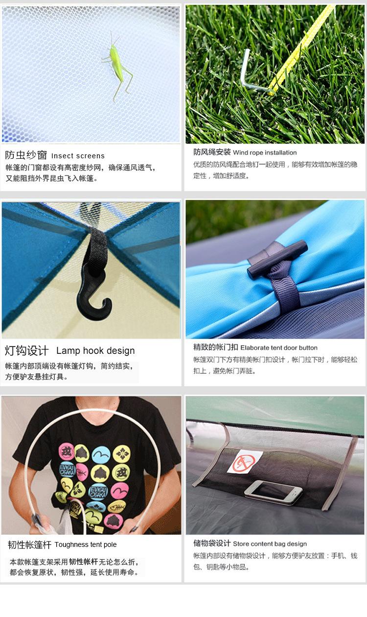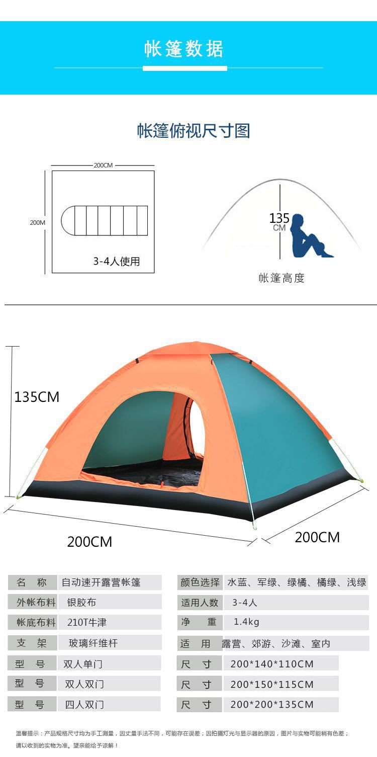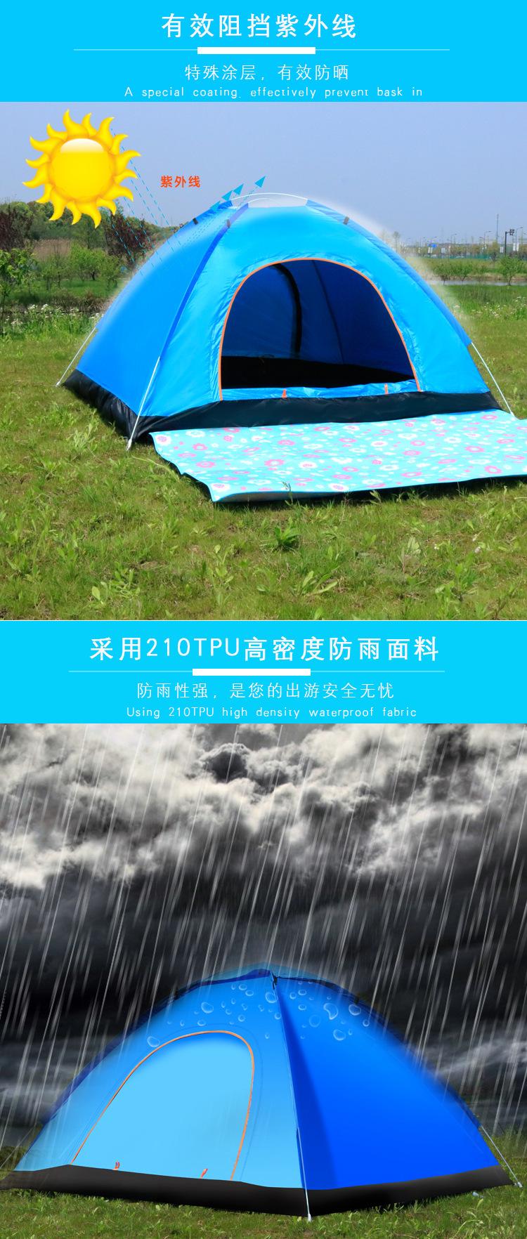 Tienda de Campaña para Exterior 3-4 Personas Totalmente Automática Engrosada con Protección Solar para 2 Personas Individual y Doble Plegable para Camping al Aire Libre Tienda Portátil