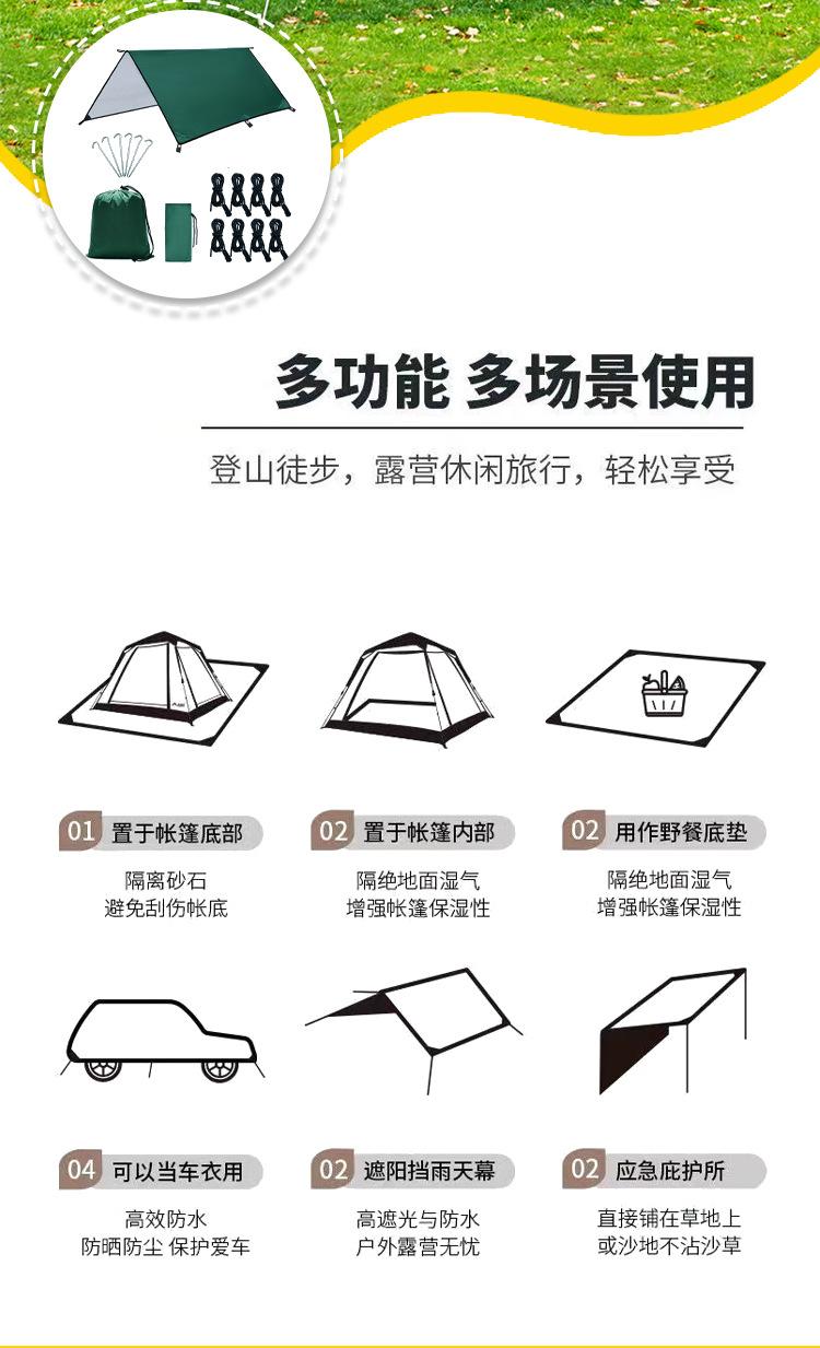 Toldo cuadrado multifuncional para exteriores, impermeable, protector solar, pérgola de playa, carpa parasol, tapete ligero recubierto de plata, tela para piso