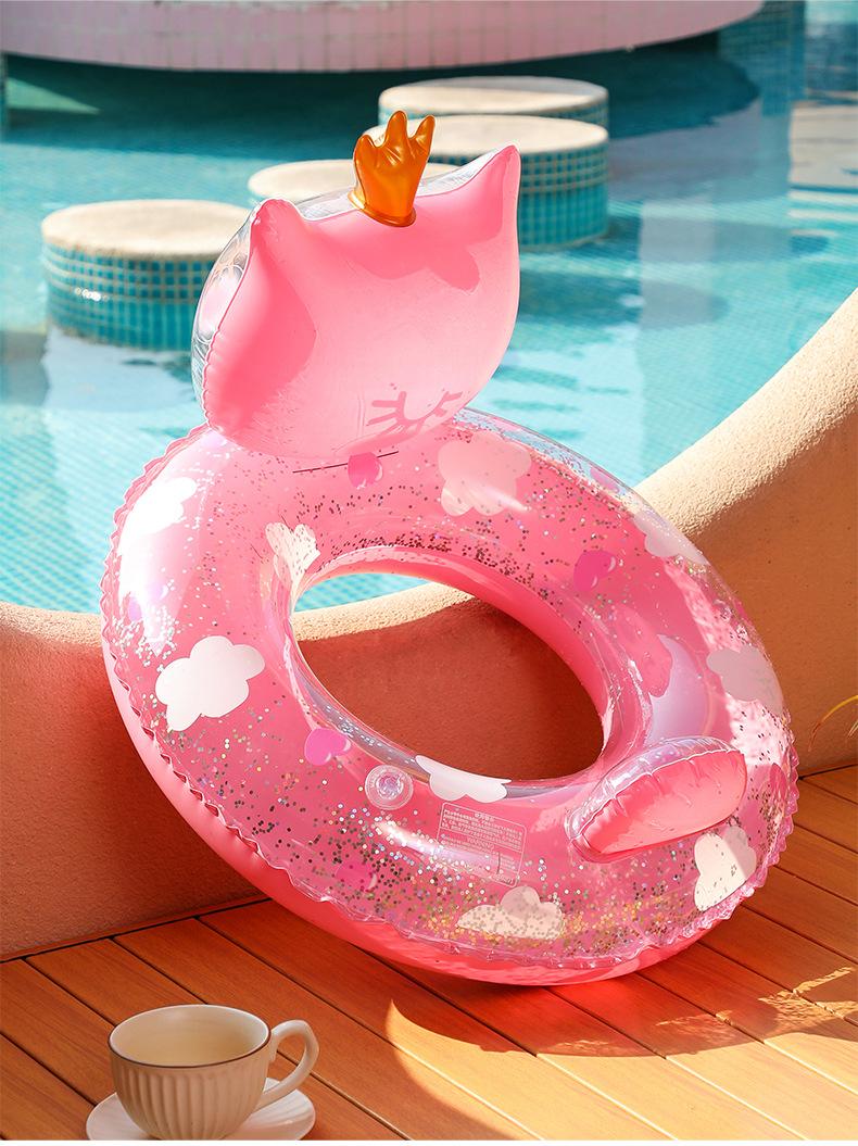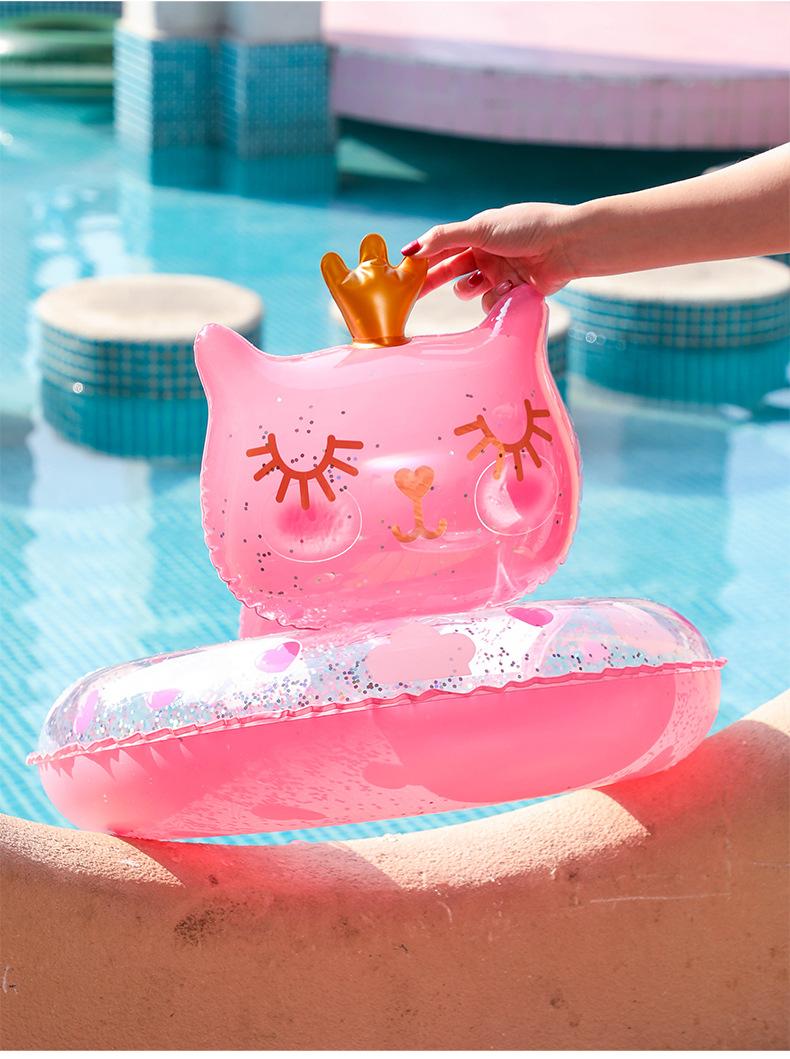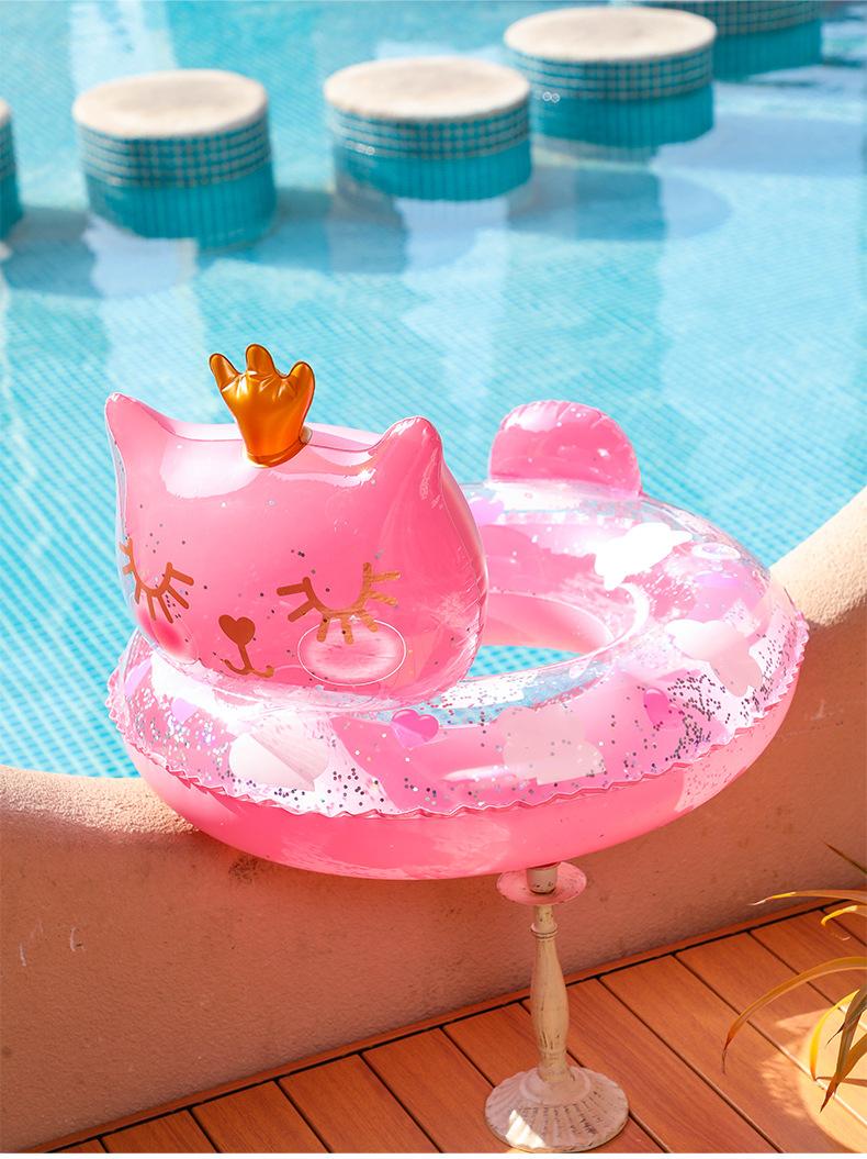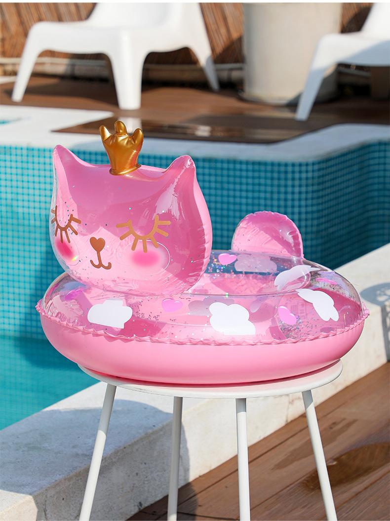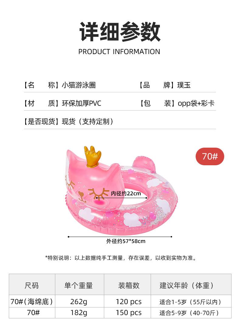 Stock Listo Fondo de Esponja Asiento de Gato de Dibujos Animados Anillo de Natación Grueso para Niños Asiento de Natación Inflable para Bebé