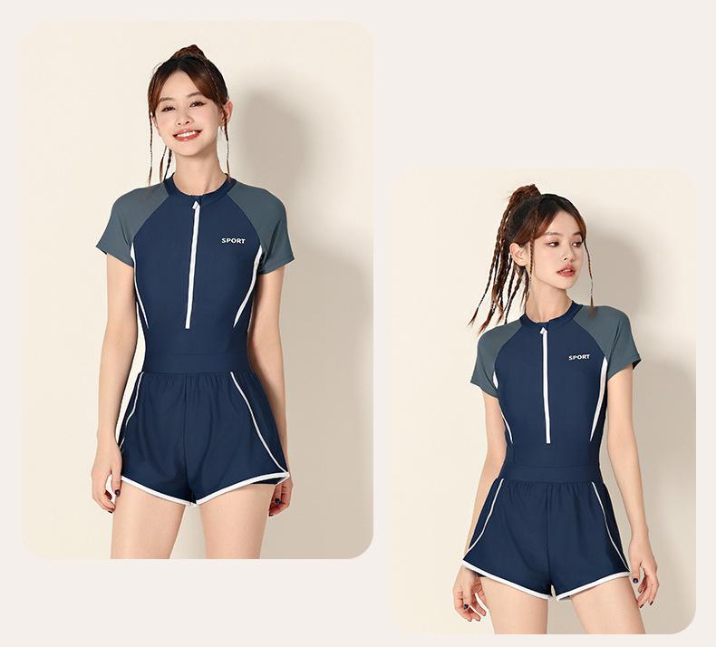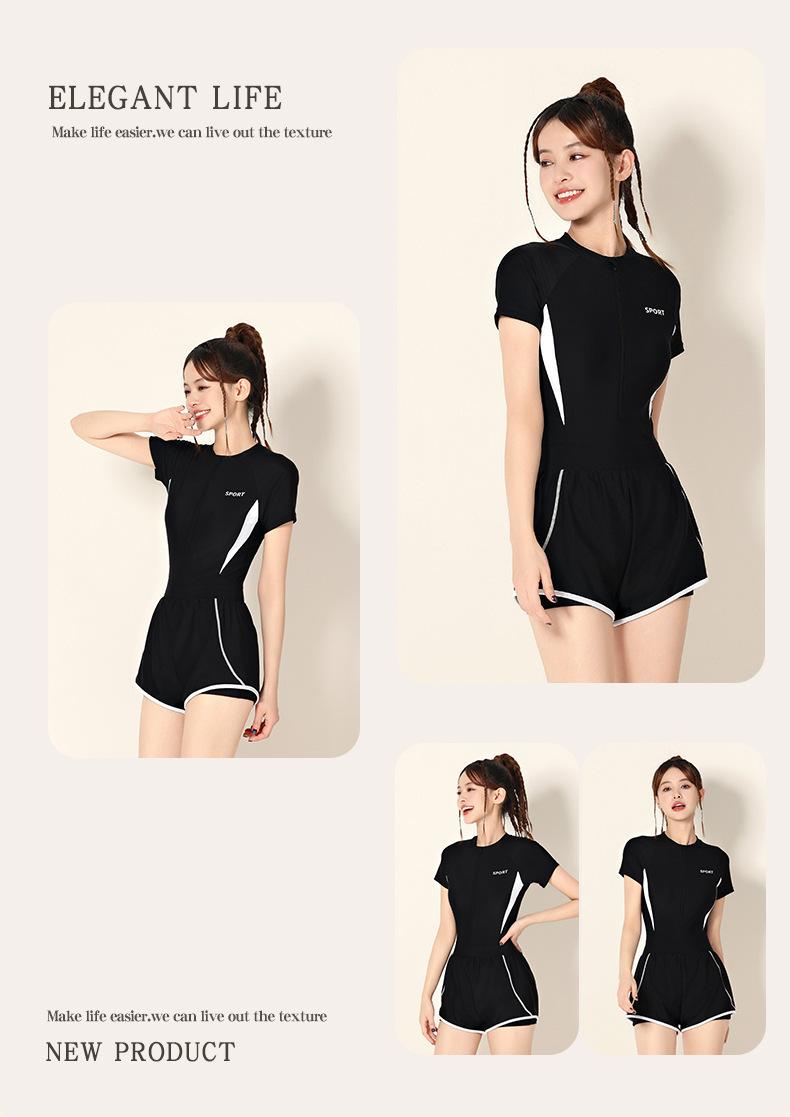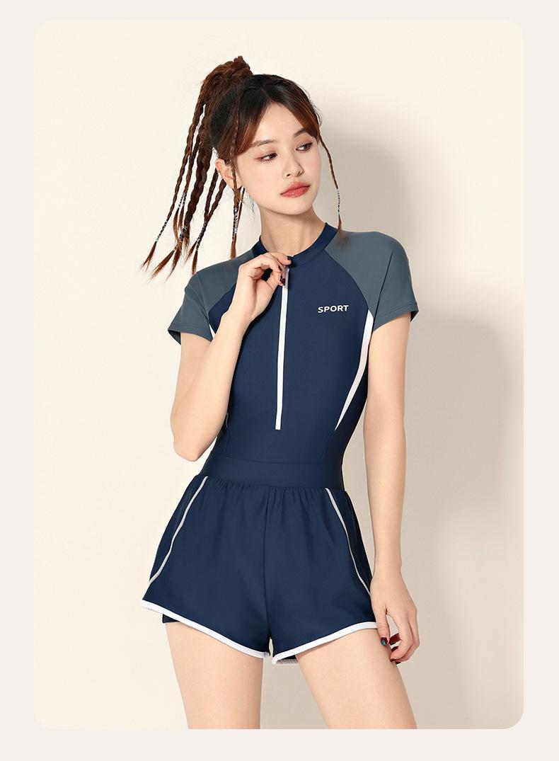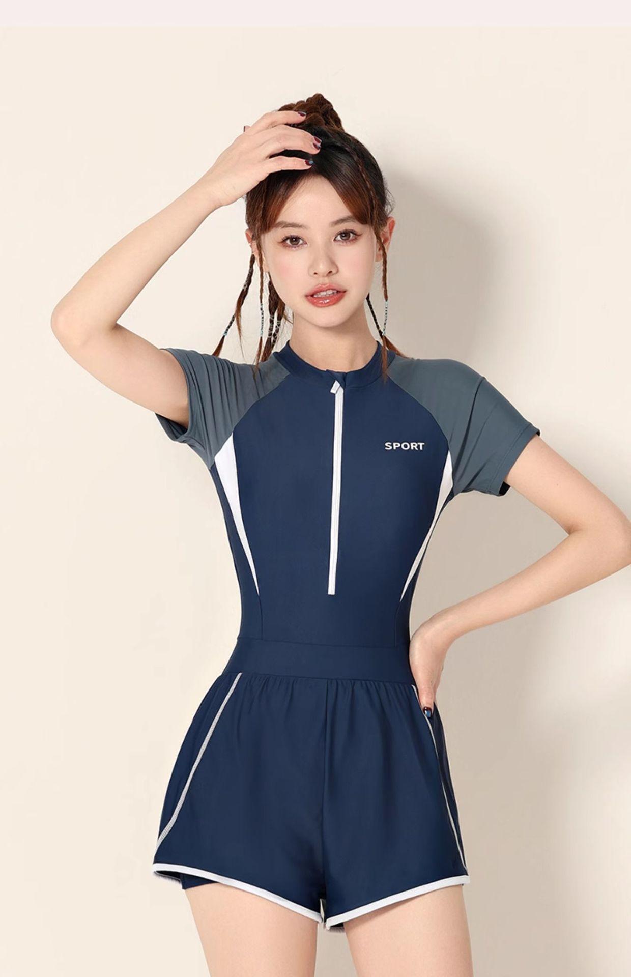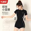 Traje de baño para mujer 2025 Nuevo estilo, Cubre el abdomen, Adelgazante, De una pieza, Pierna cuadrada, Conservador para piscinas y aguas termales, Traje de baño profesional de talla grande
