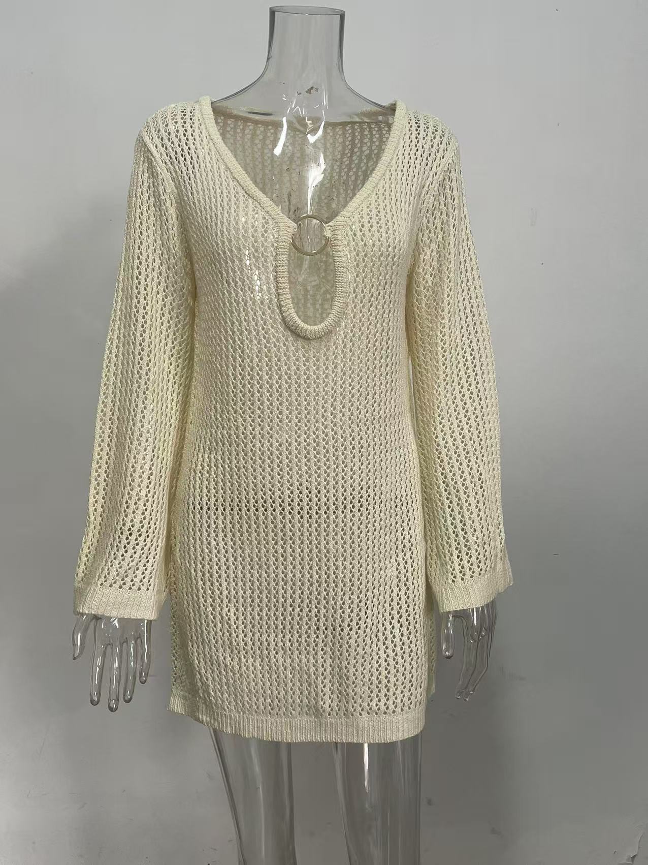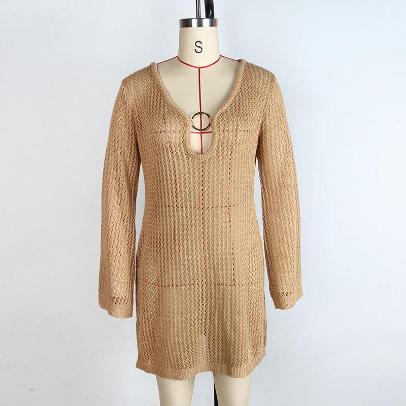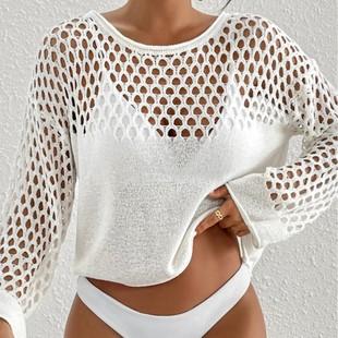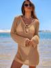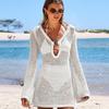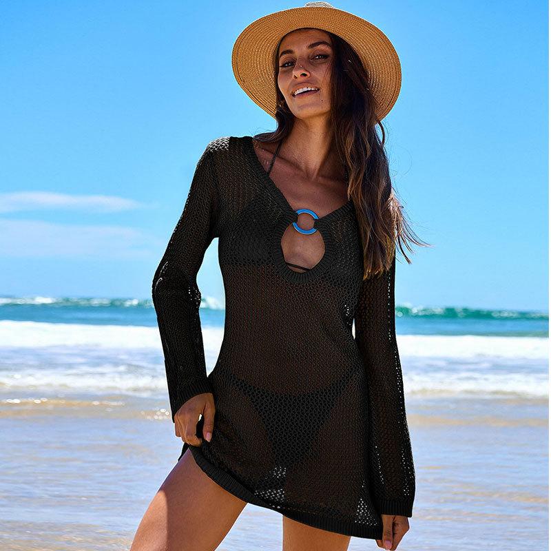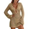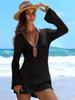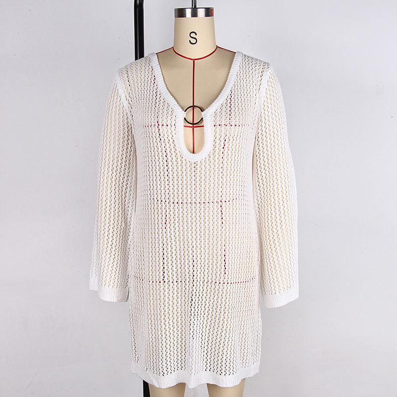 Amazon Transfronterizo Cubreplayas Sexy Cuello en V Profundo Recorte de Anillo Tejido Manga Larga Versátil Traje de Baño Ropa de Protección Solar para Mujer