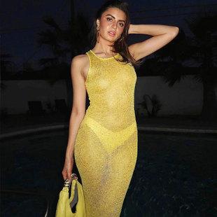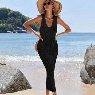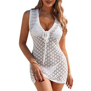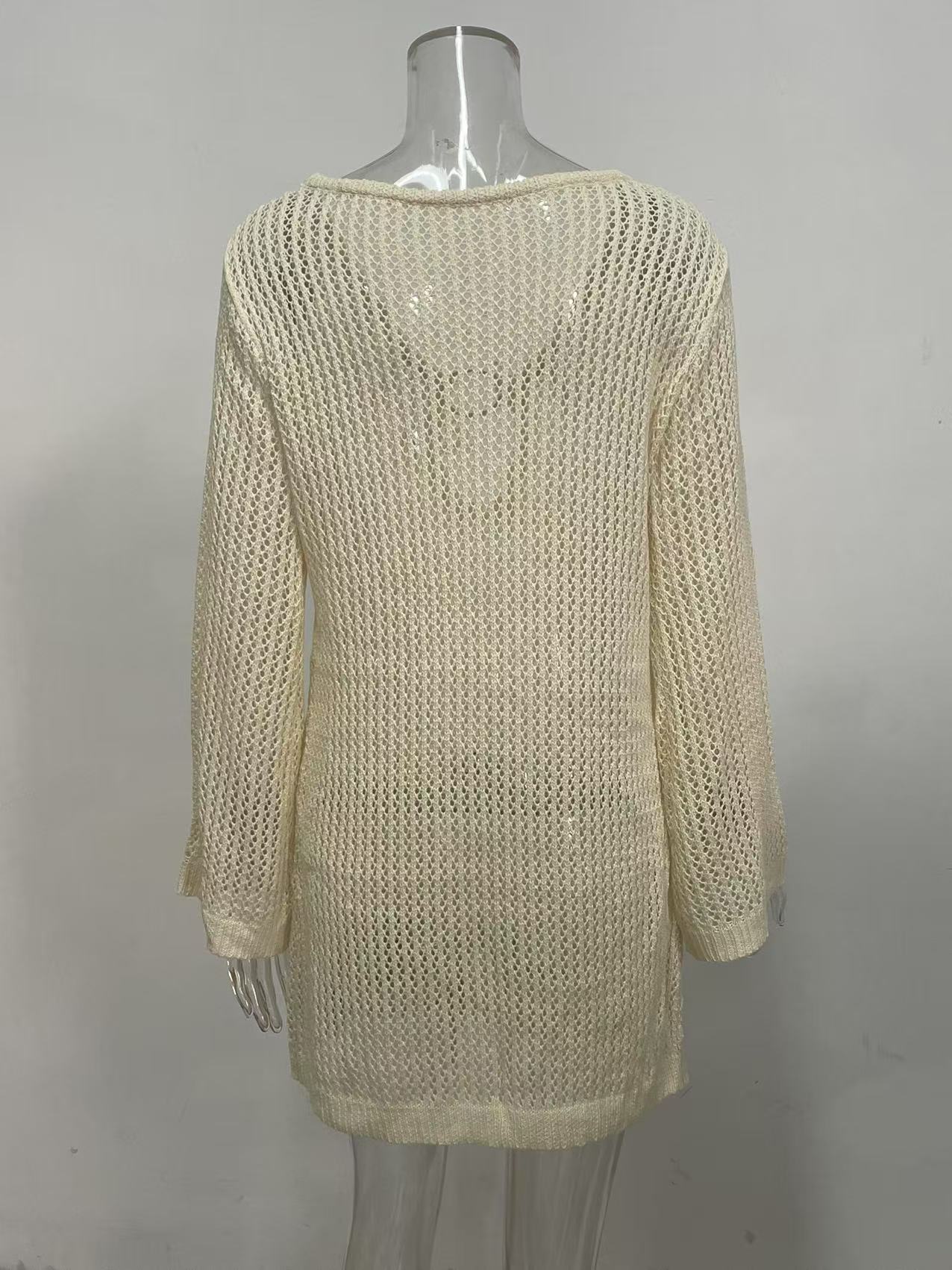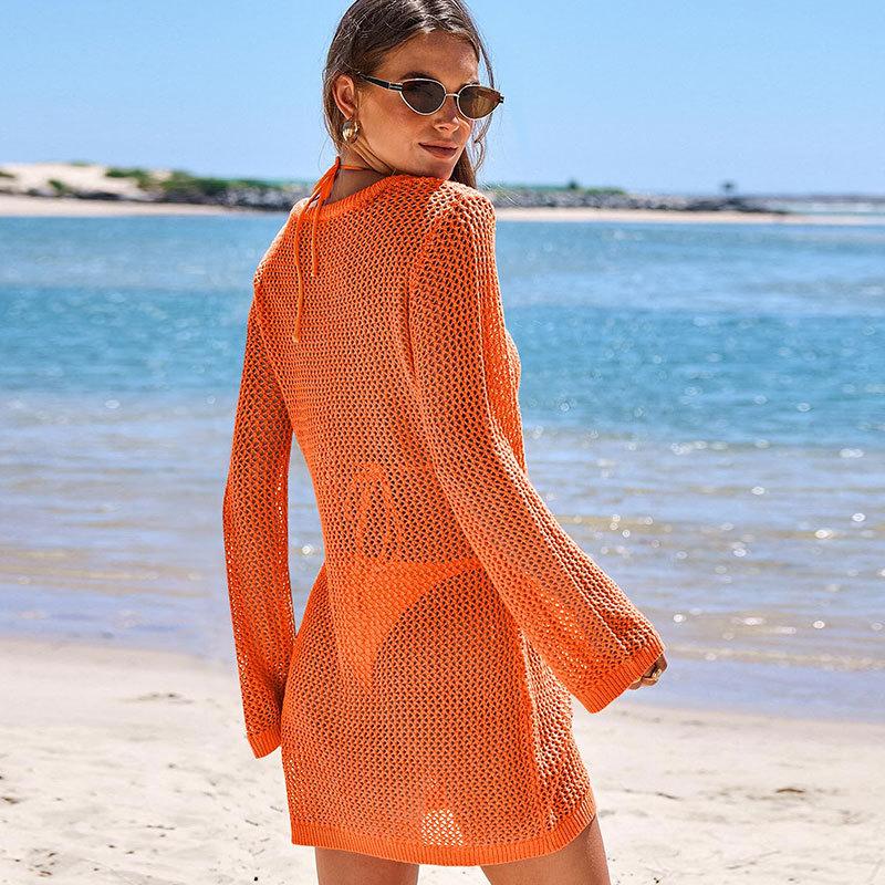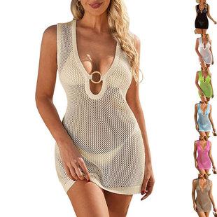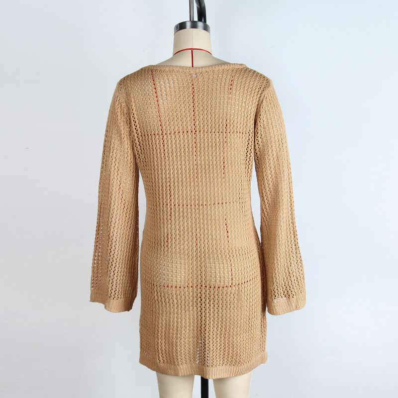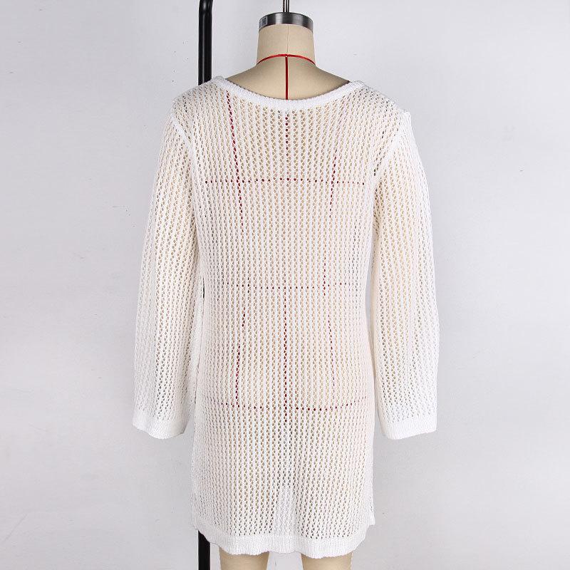 Amazon Transfronterizo Cubreplayas Sexy Cuello en V Profundo Recorte de Anillo Tejido Manga Larga Versátil Traje de Baño Ropa de Protección Solar para Mujer